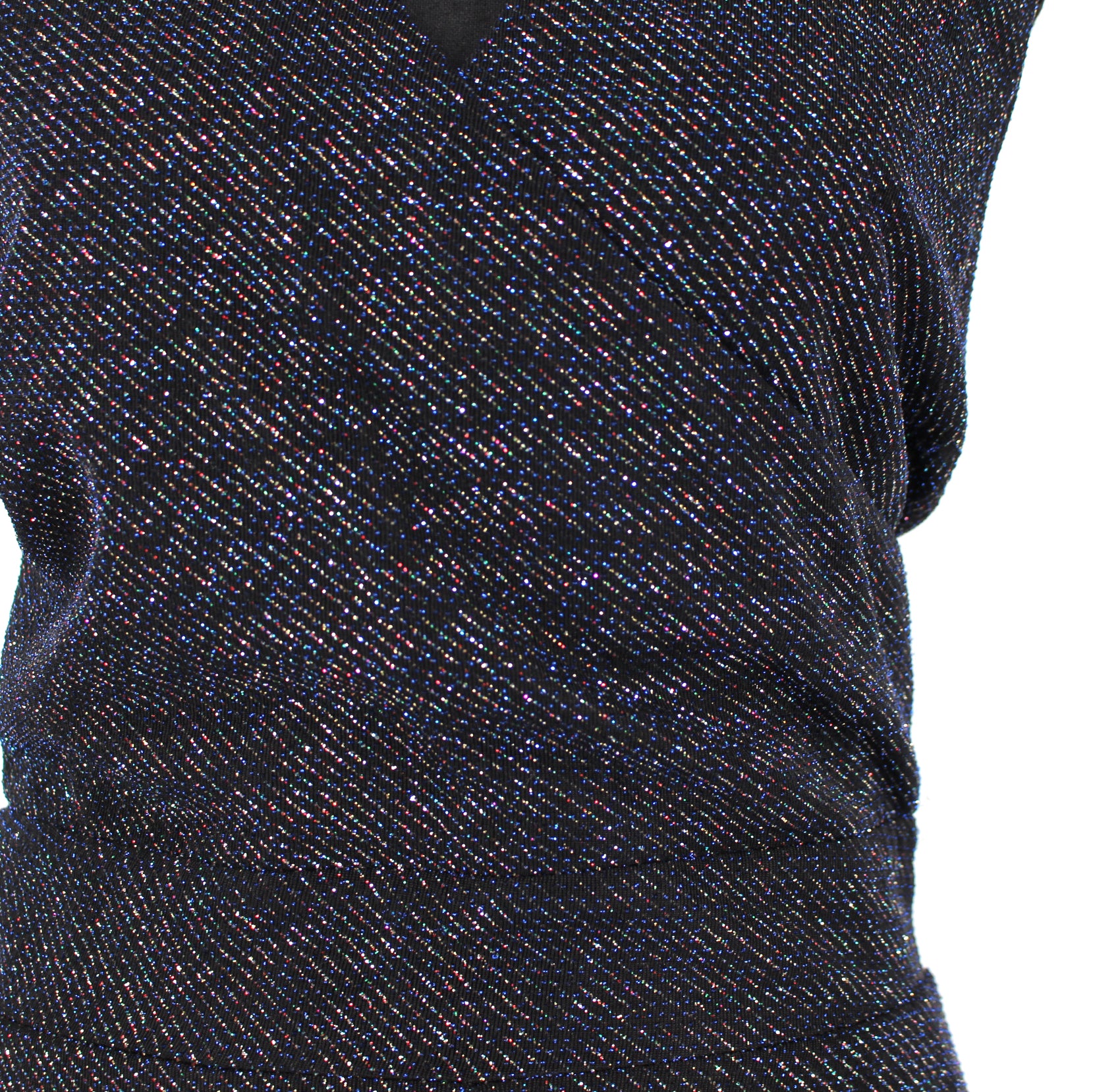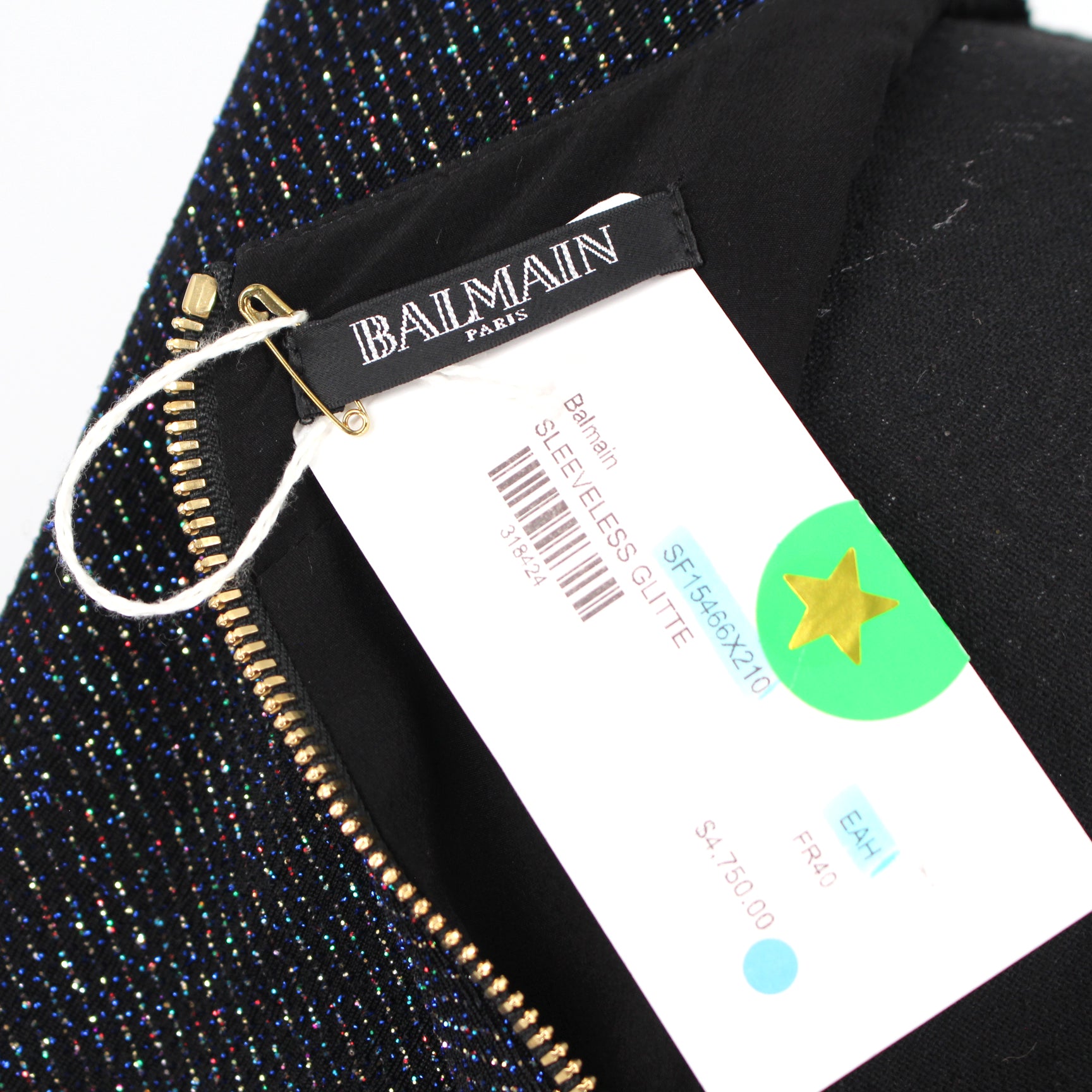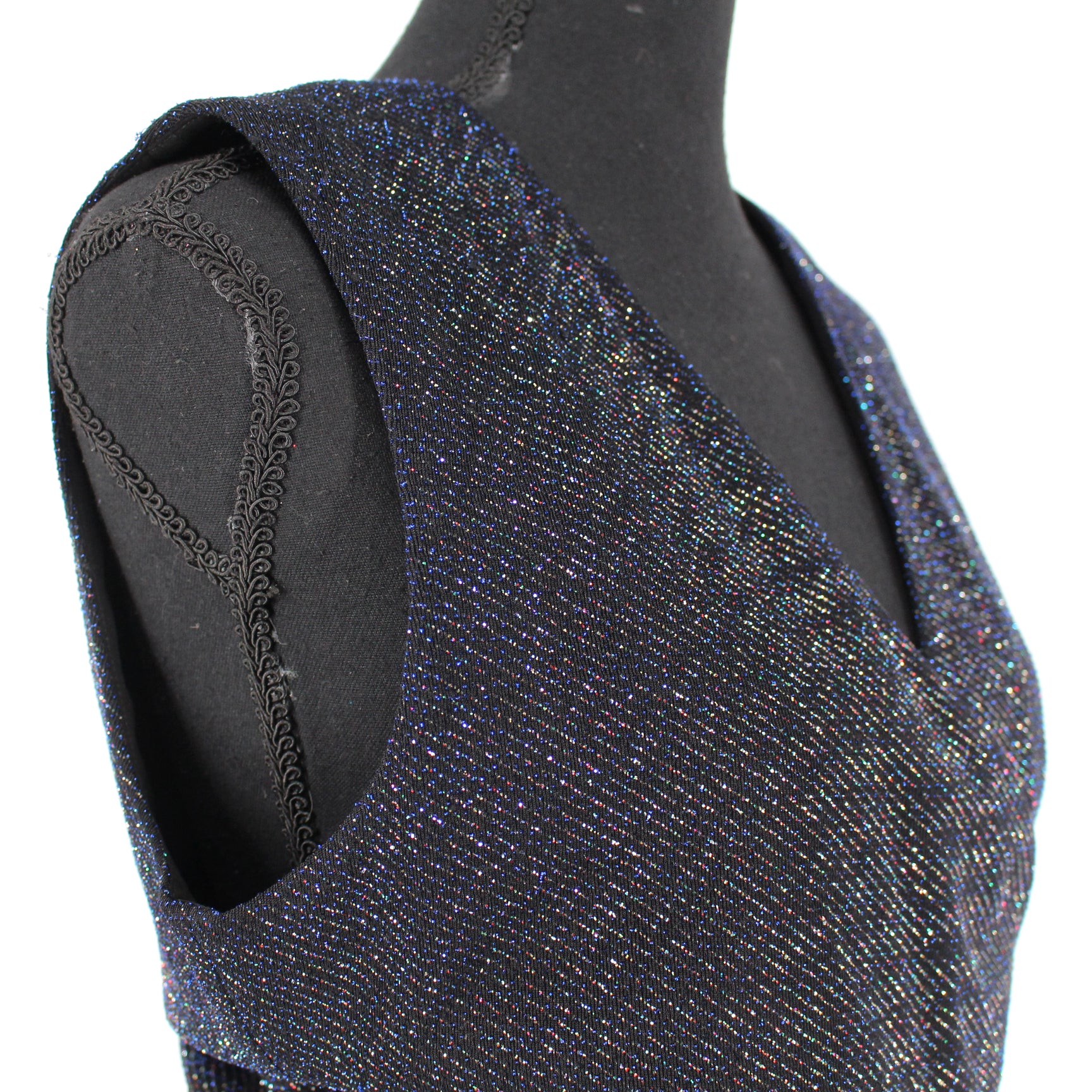 Balmain Glittered Blue Black V-Neck One Piece Sleeveless Jumpsuit.