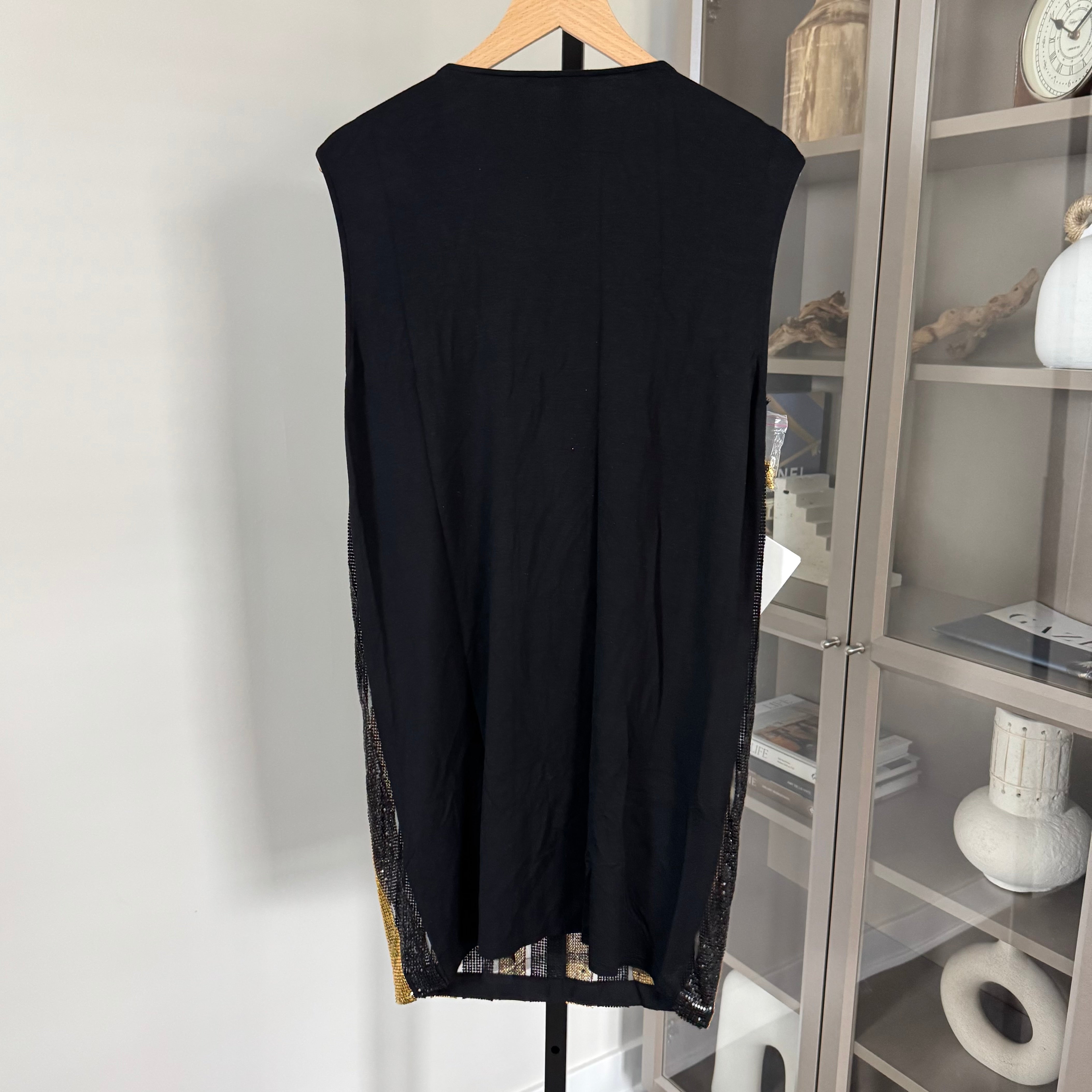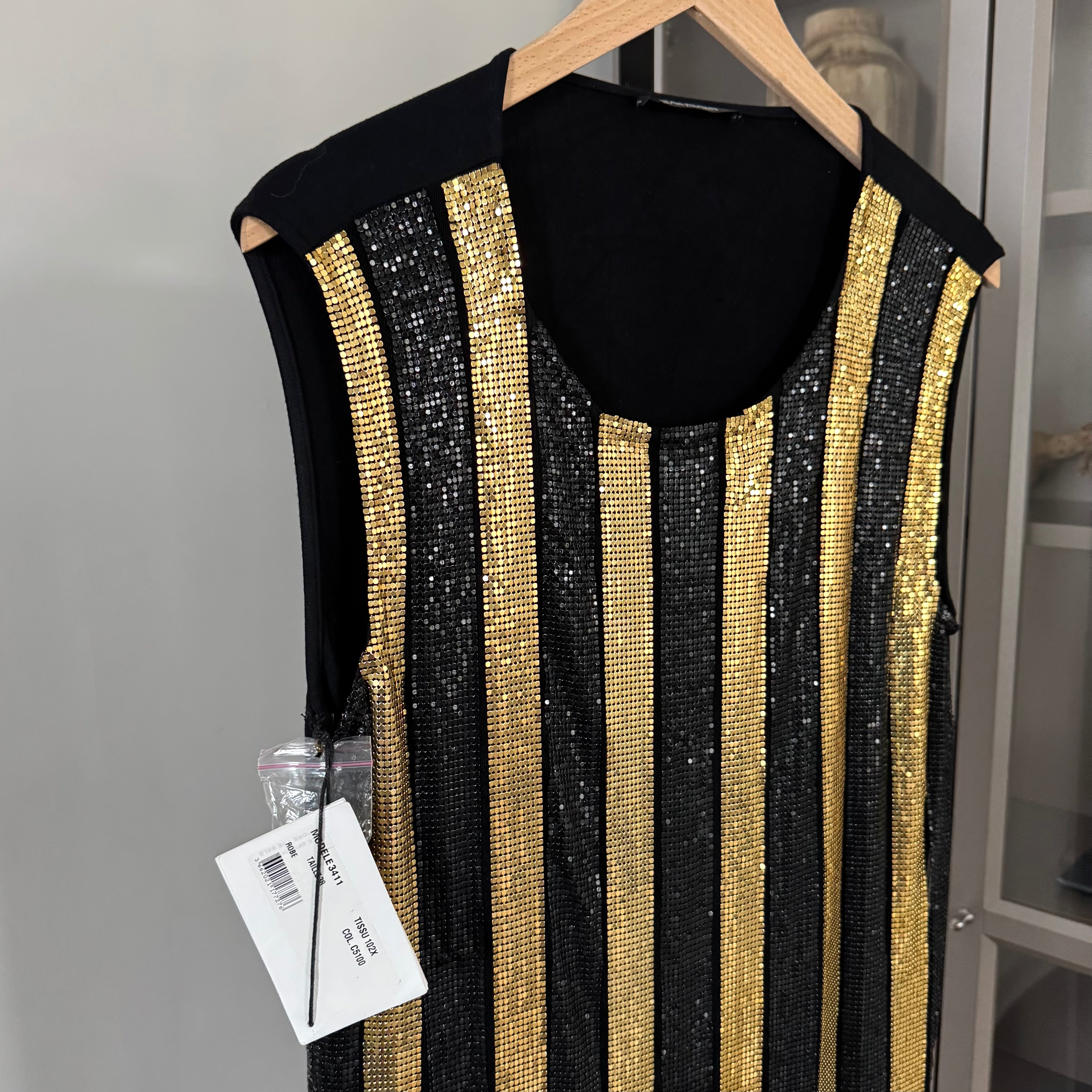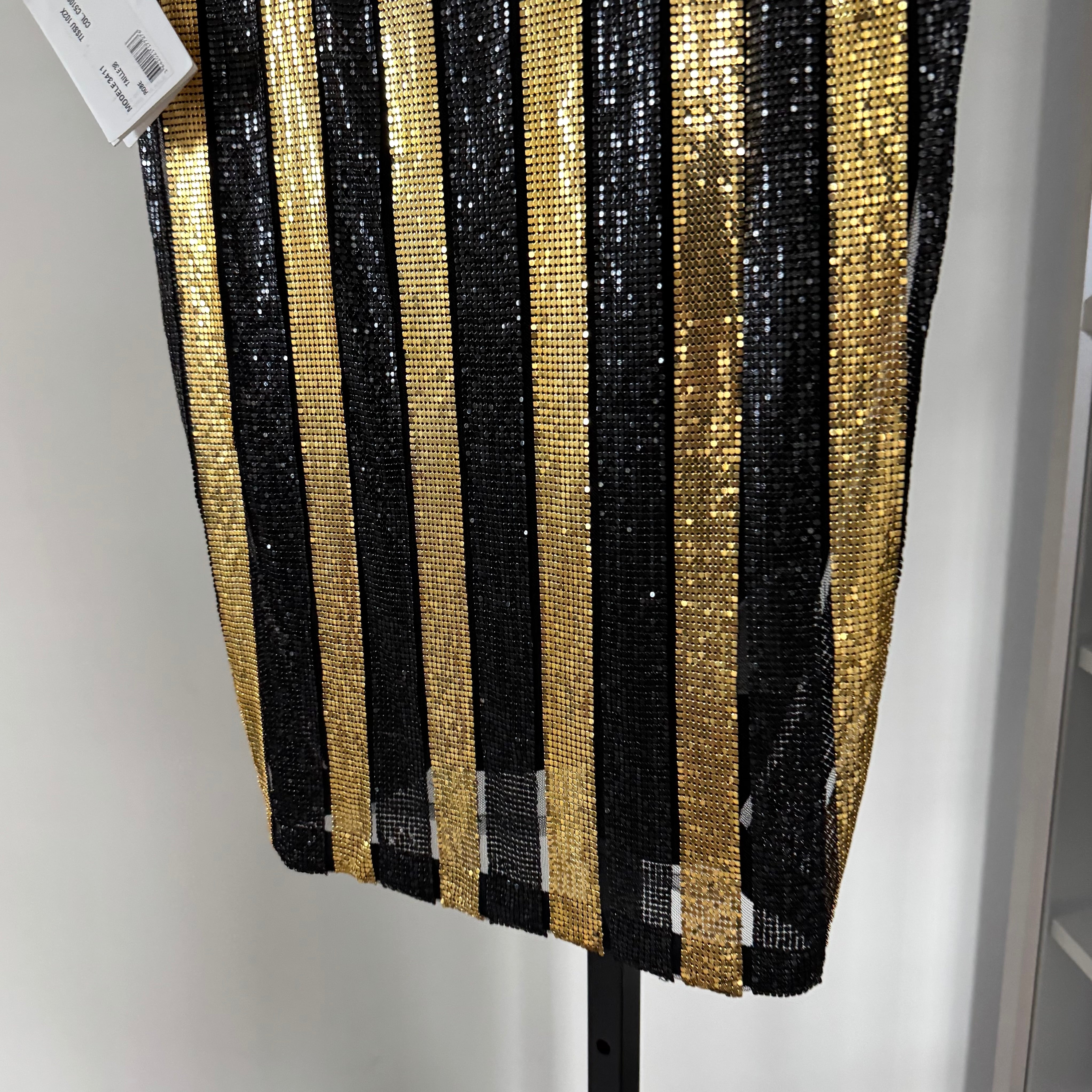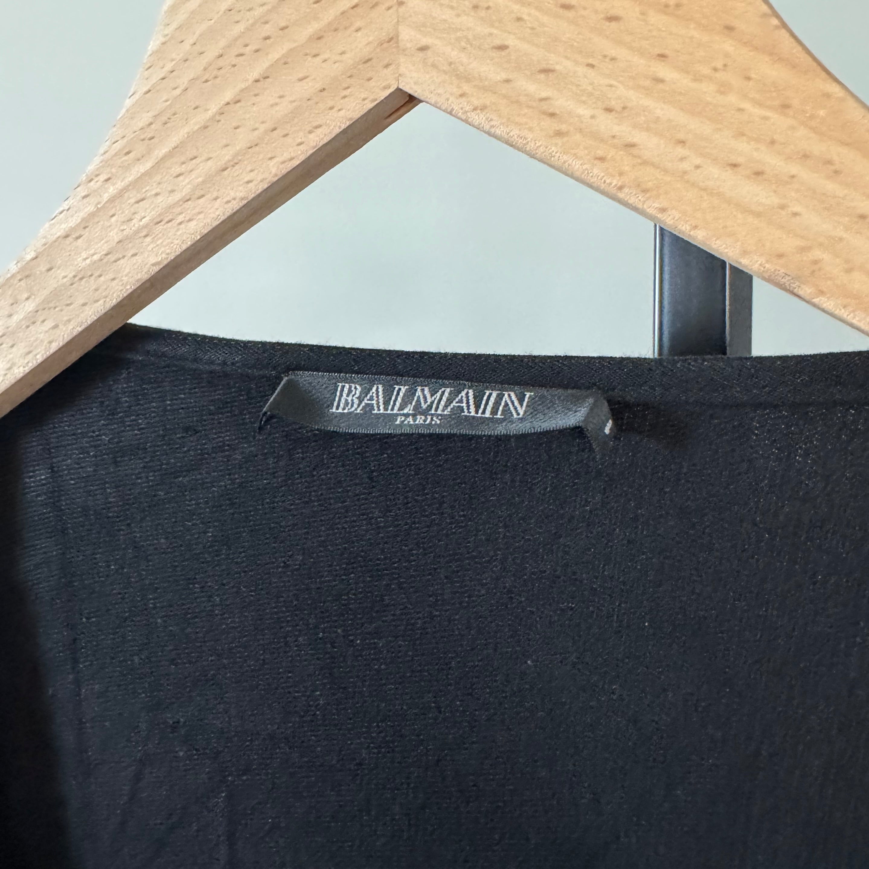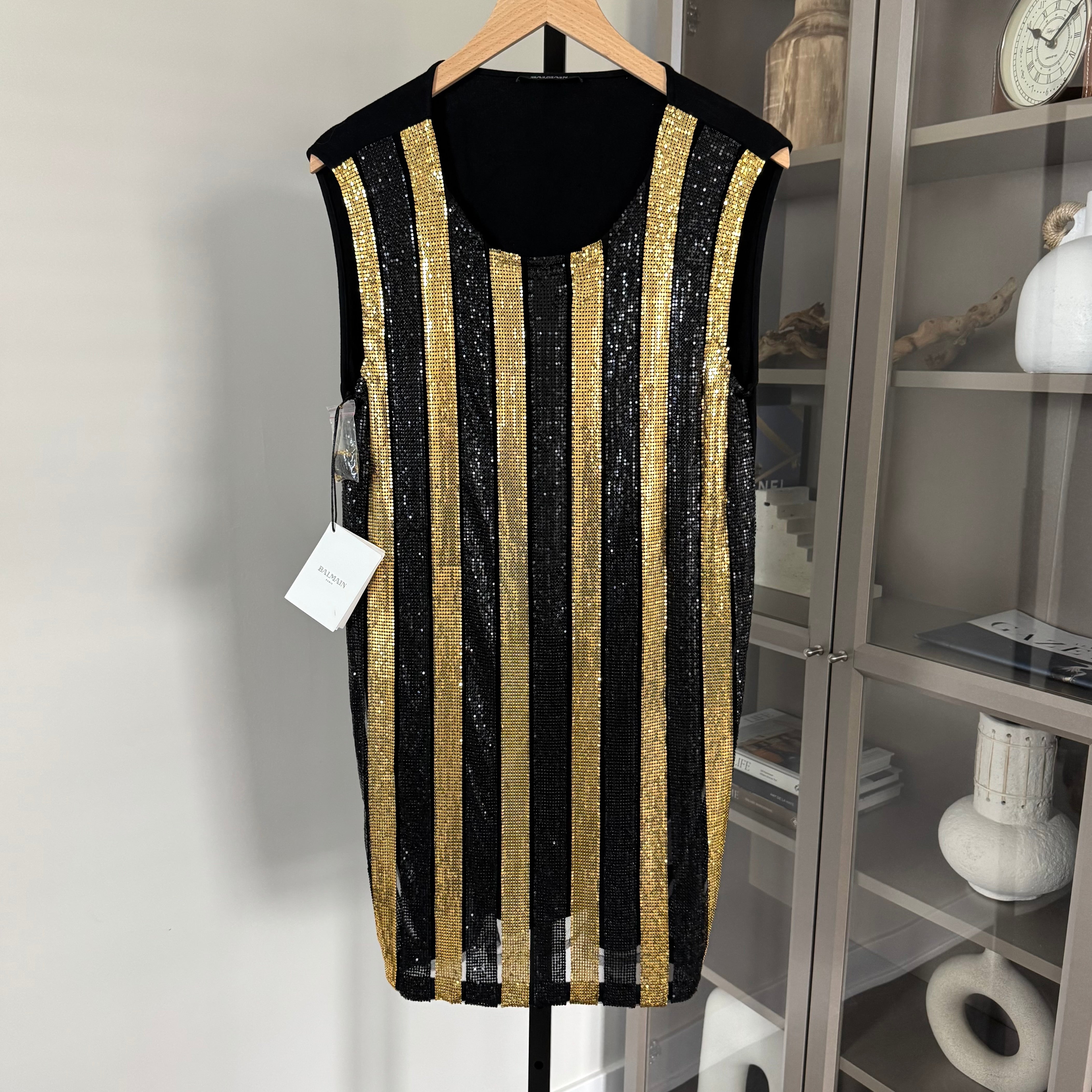 Balmain Black Jersey Knit Gold Black Paillette Embellished Mini Dress