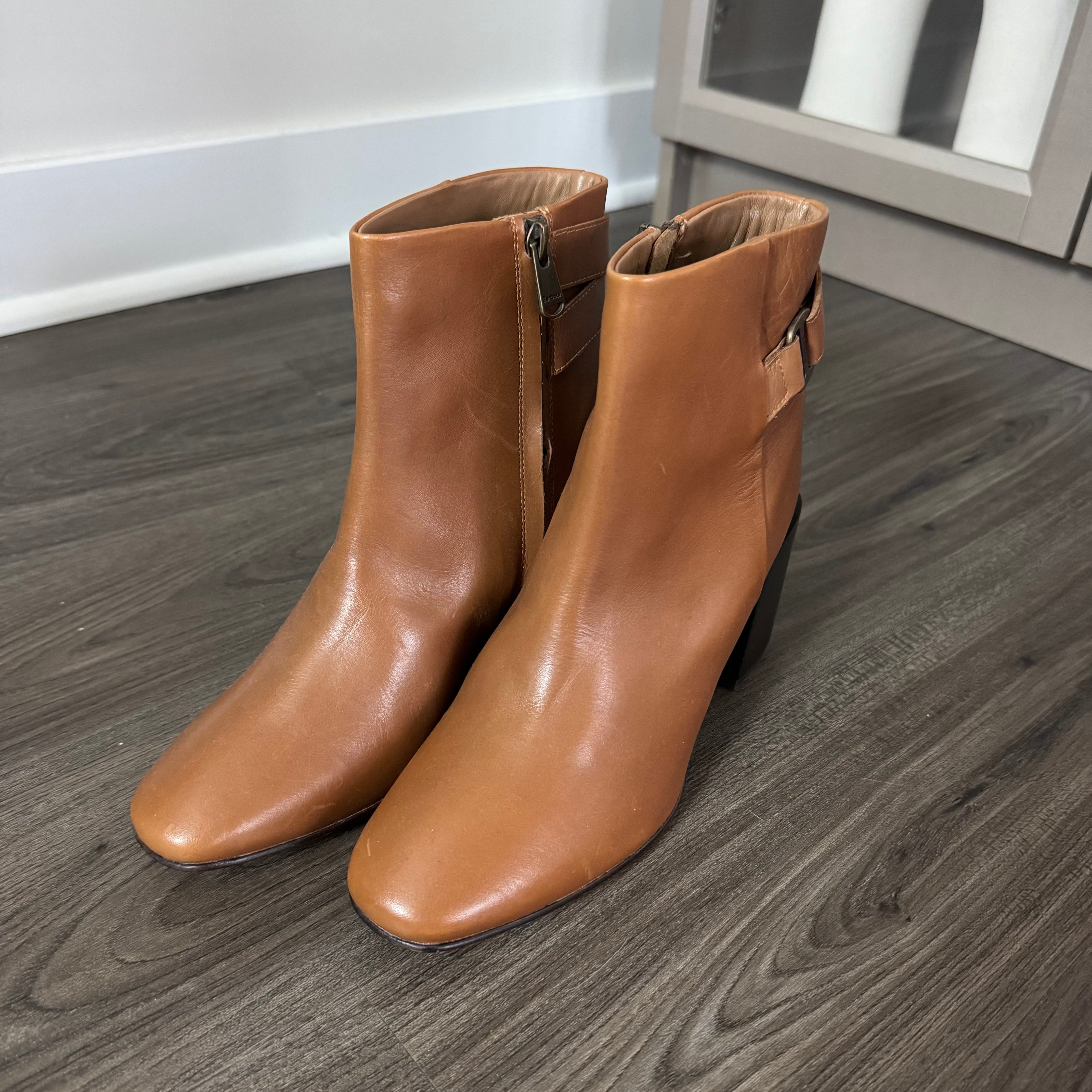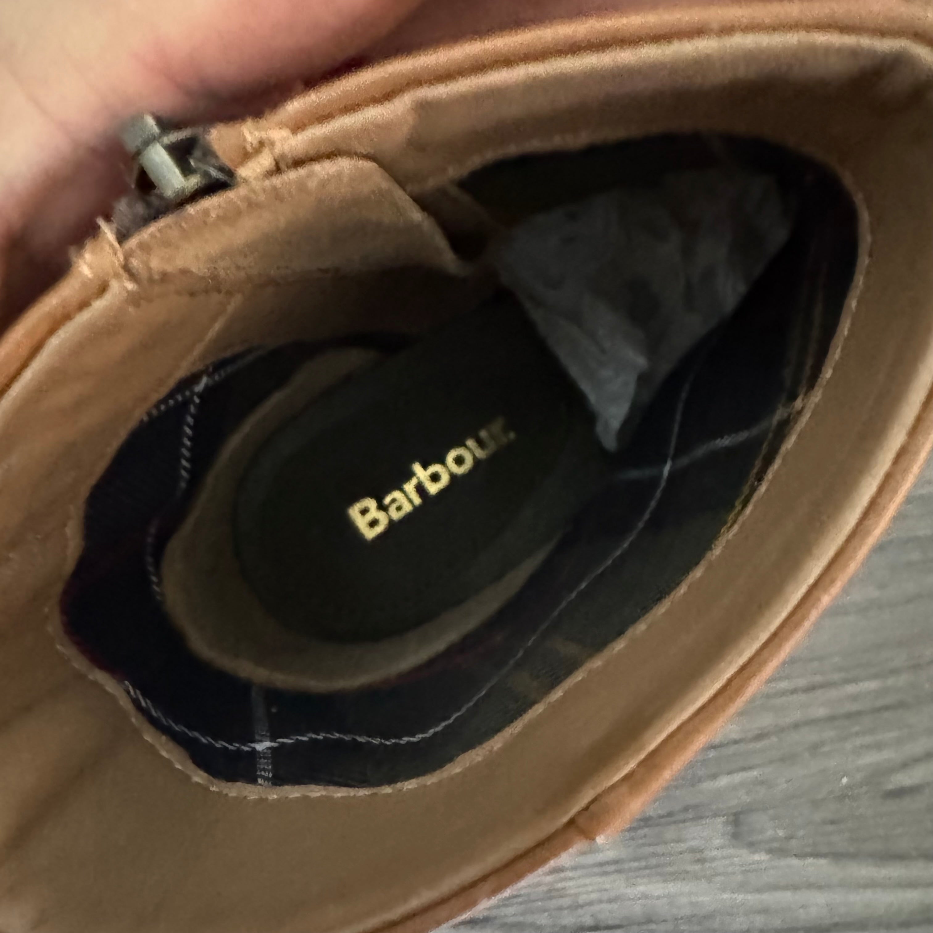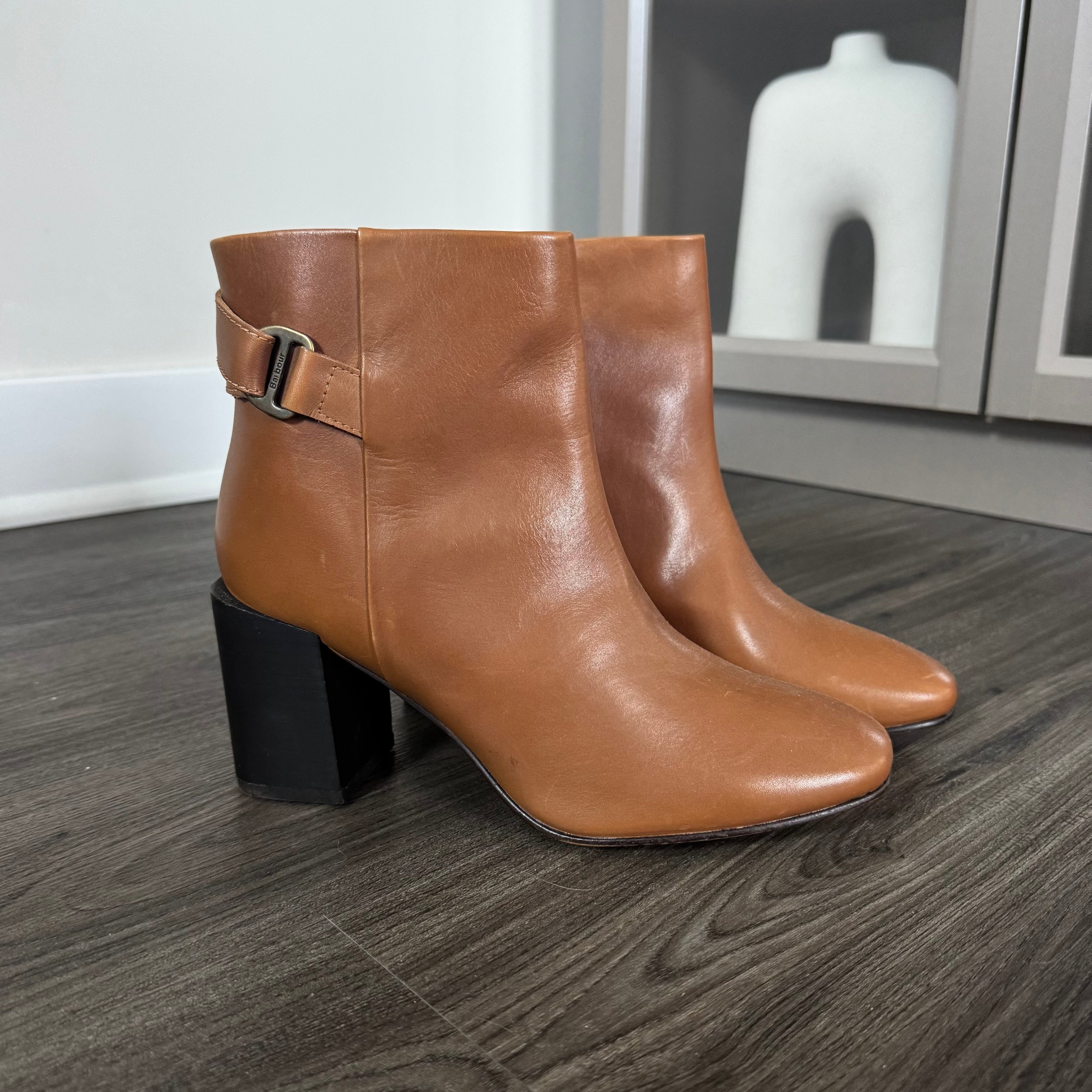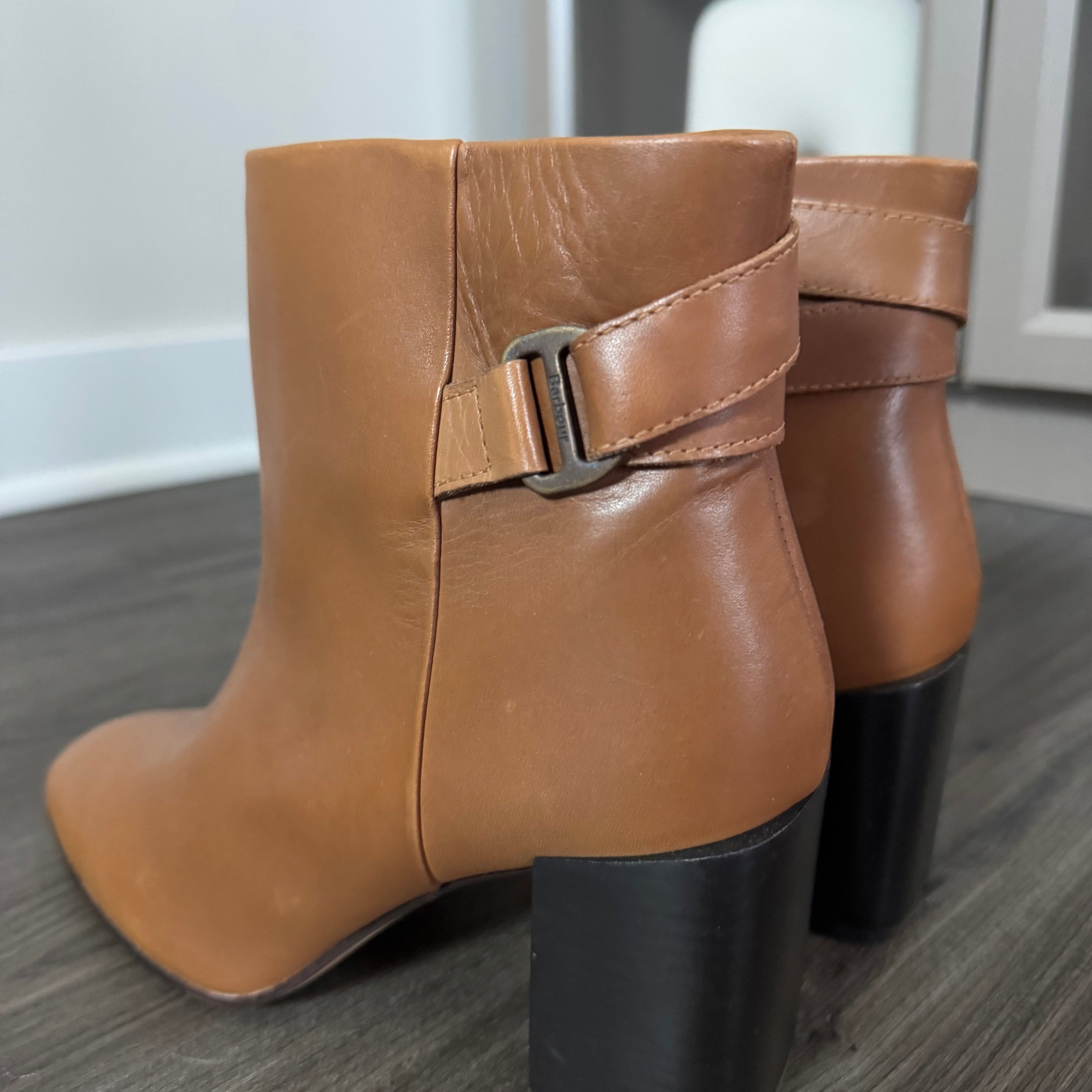 Barbour Piper Tan Leather Black Heeled Booties