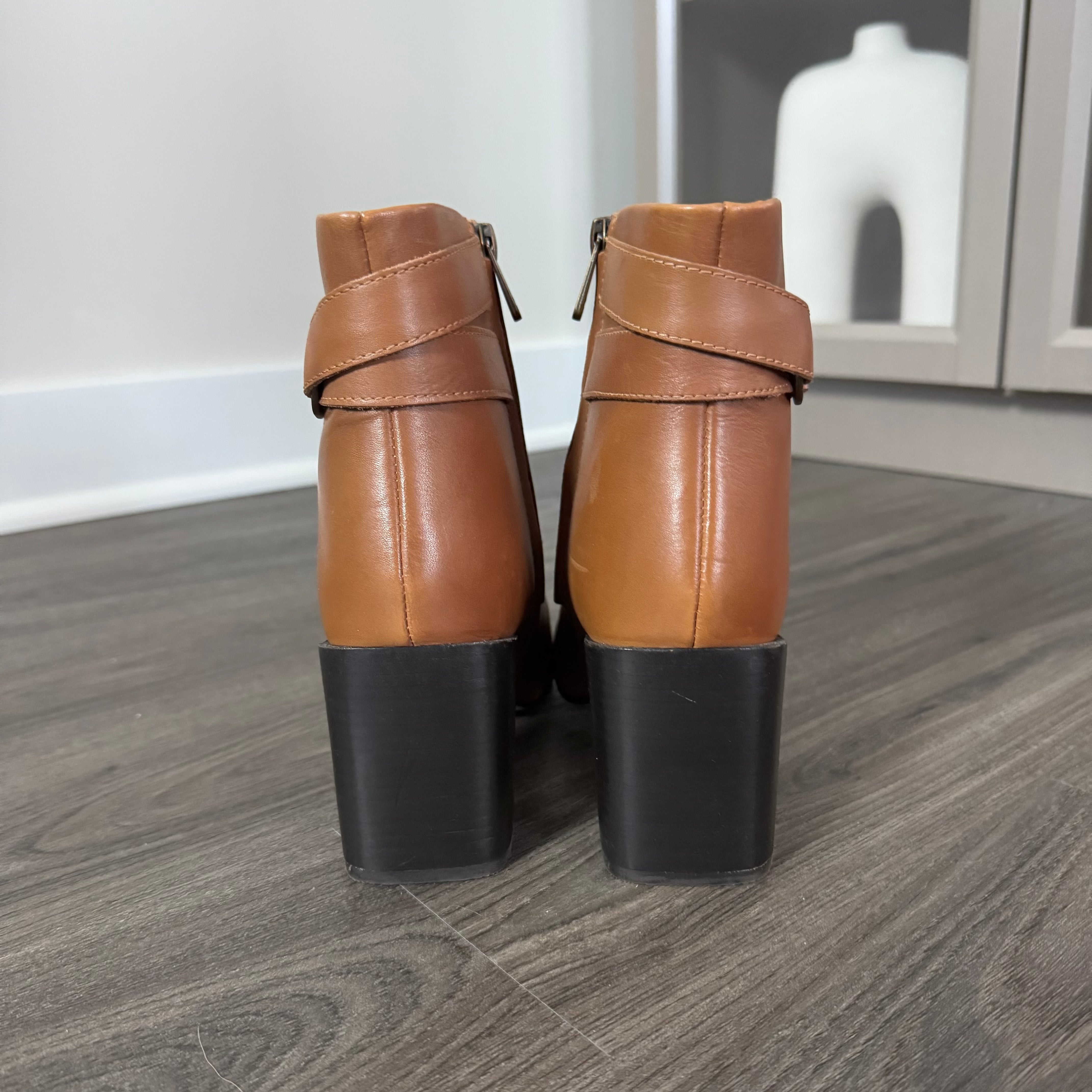 - Leather strap ankle with logo brass detail