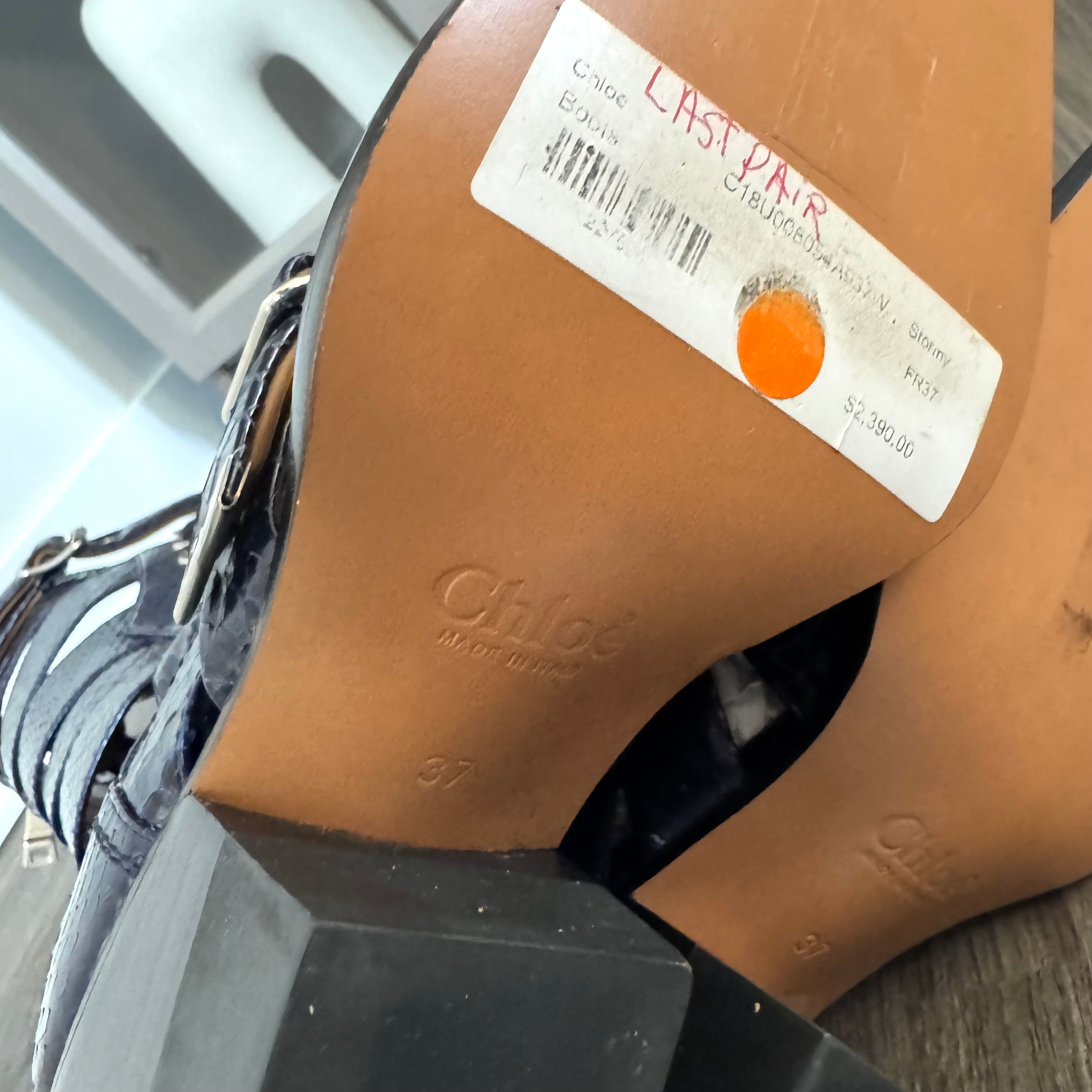 Chloe Riley Knee High Navy Leather Snakeskin Embossed Block Heeled Boots