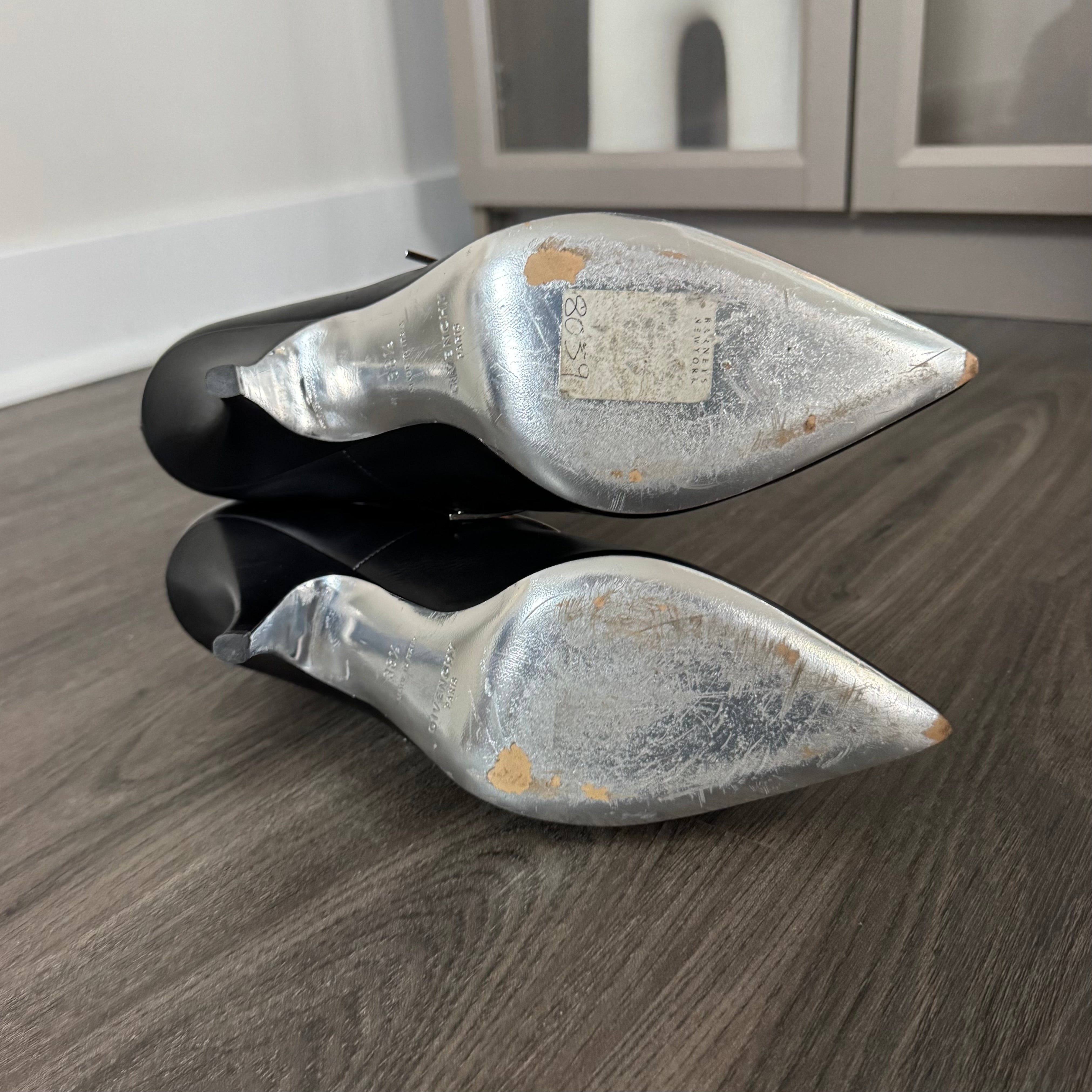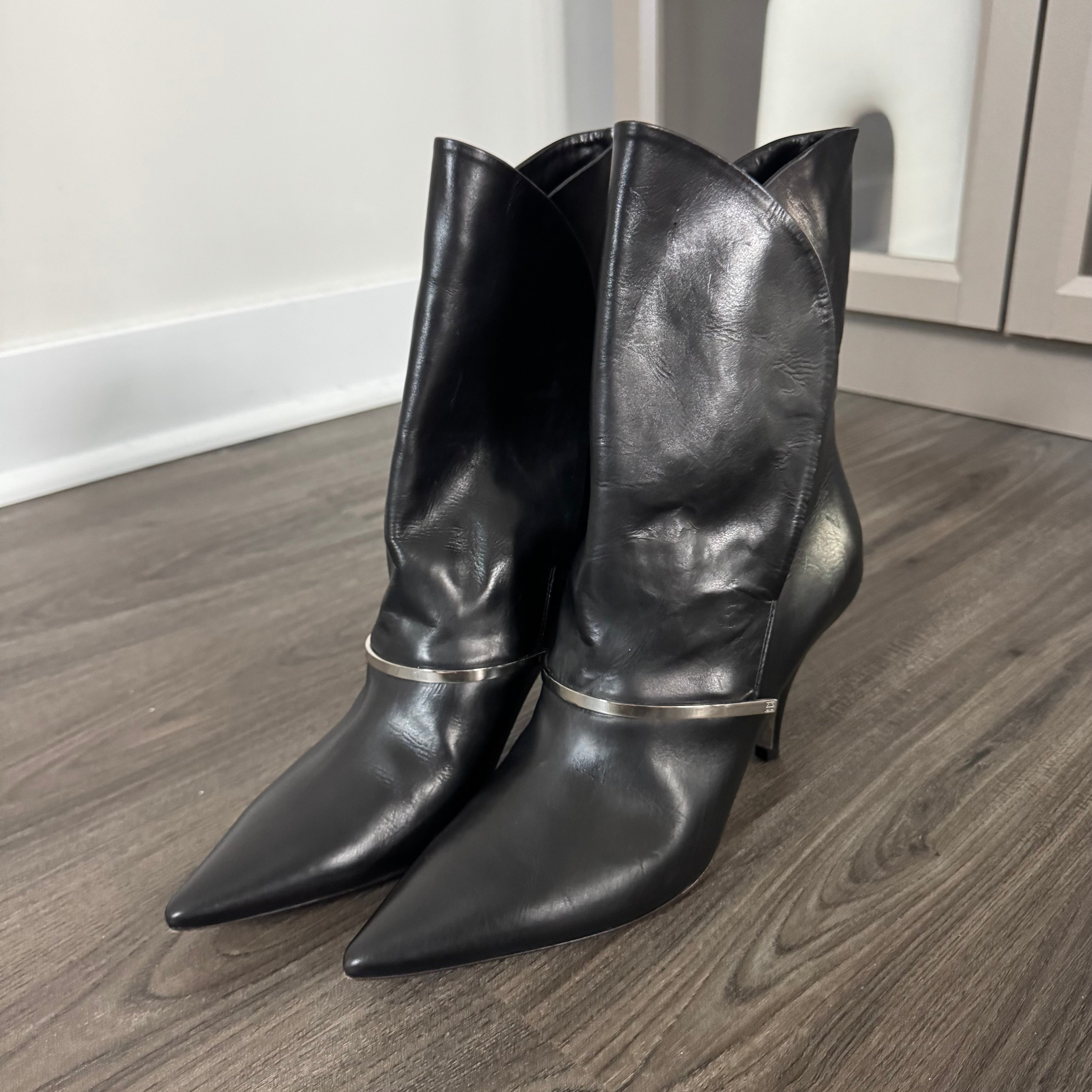 Givenchy Bar Embellished Black Leather Point Toe Heeled Booties