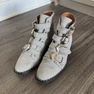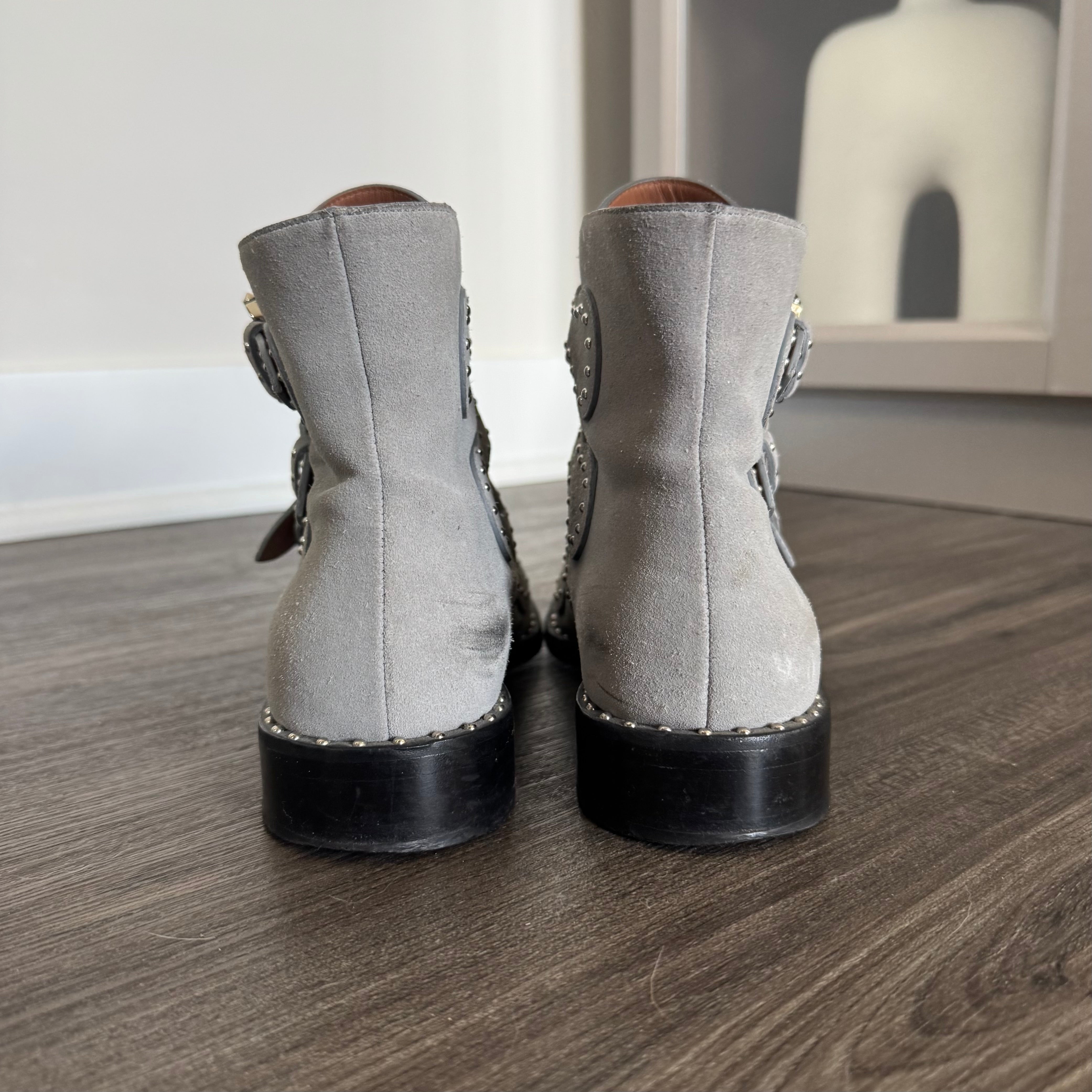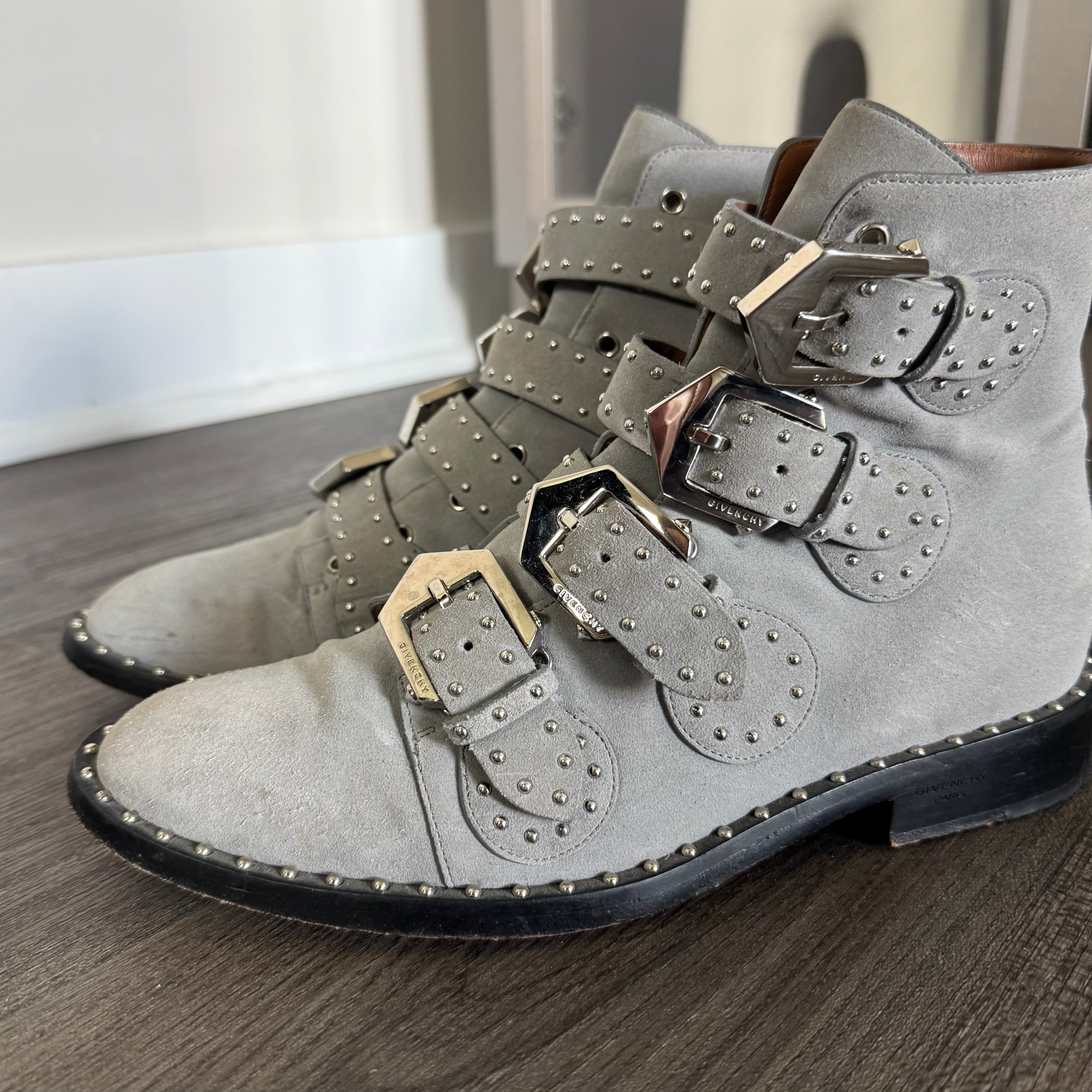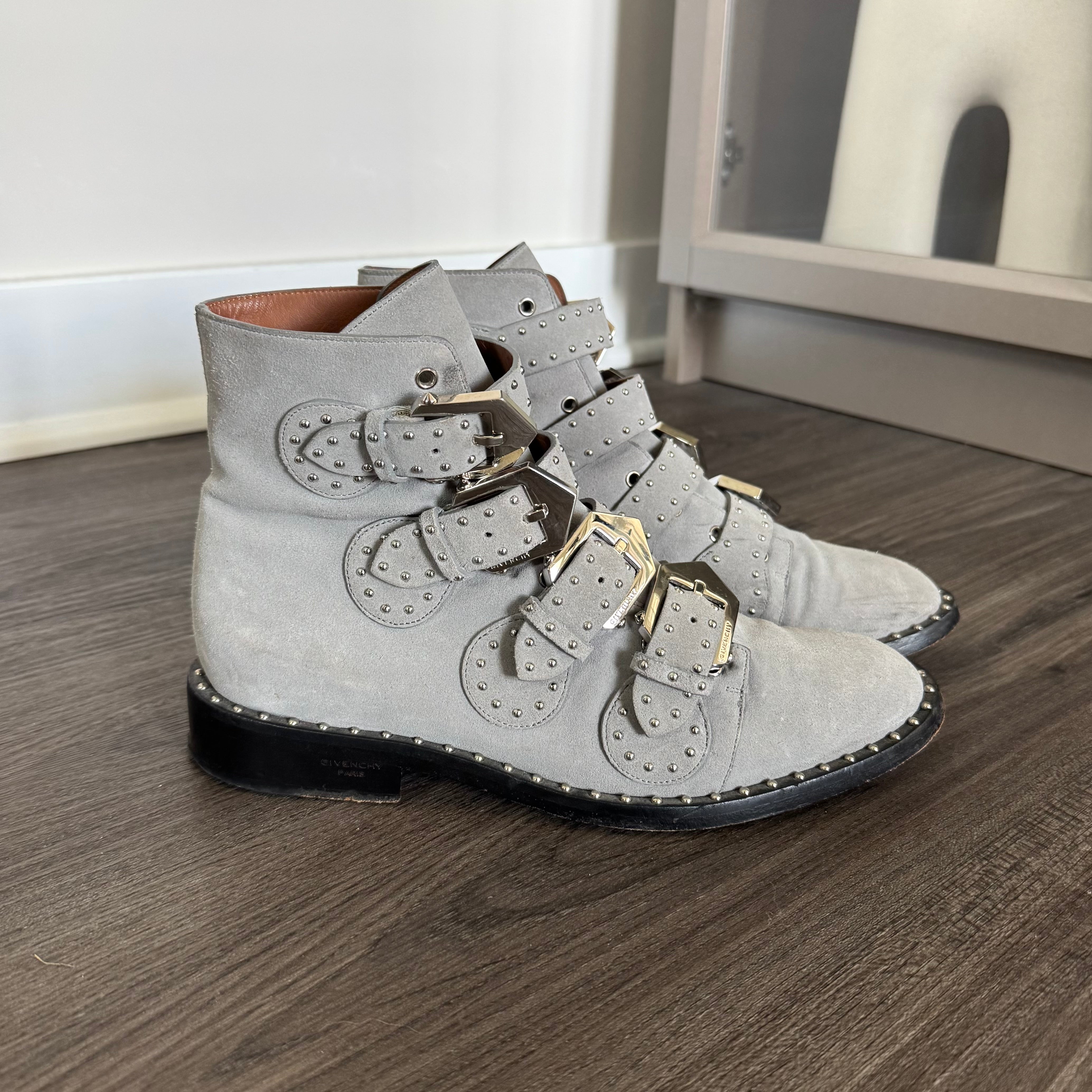 Givenchy Grey Leather Silver Studded Buckle Ankle Booties