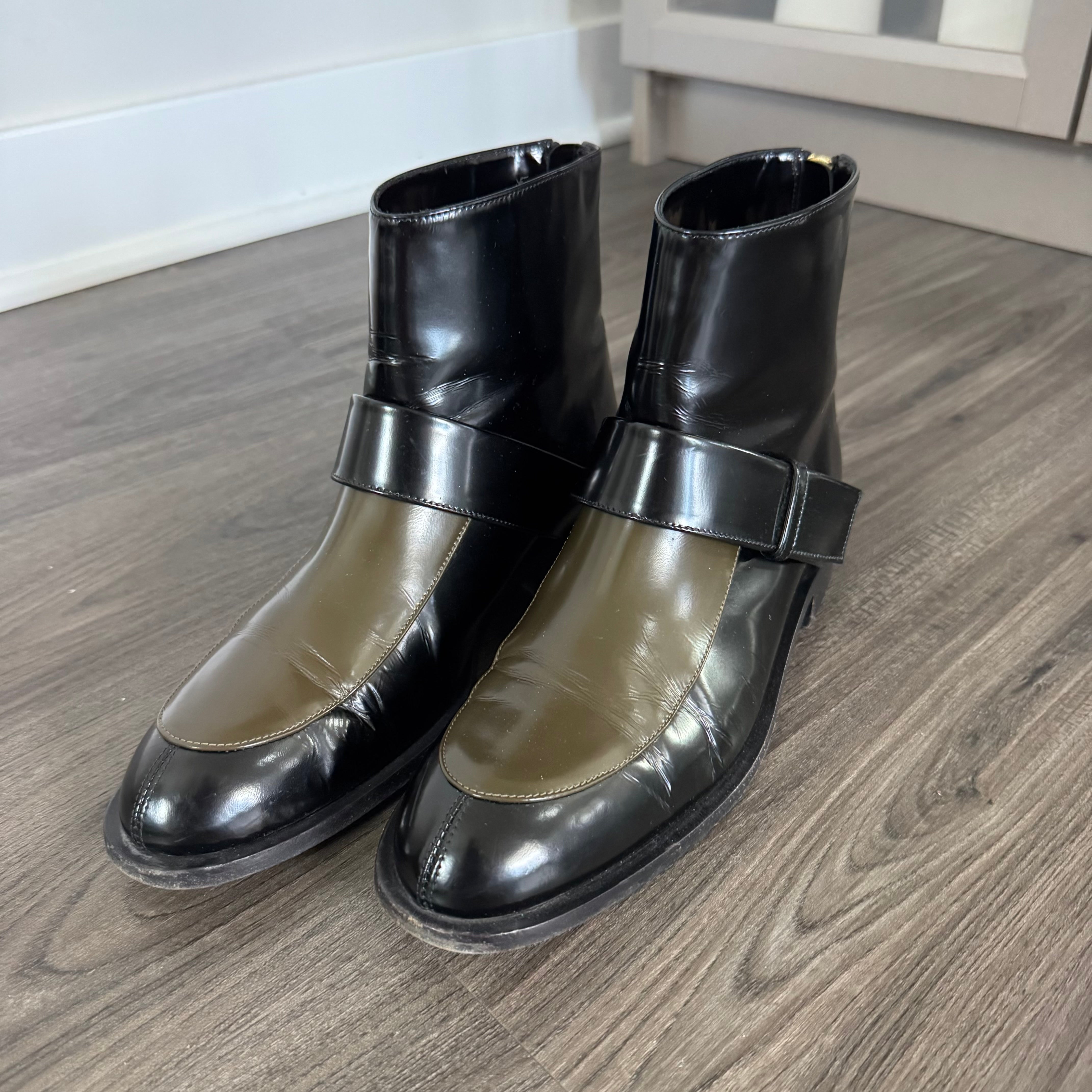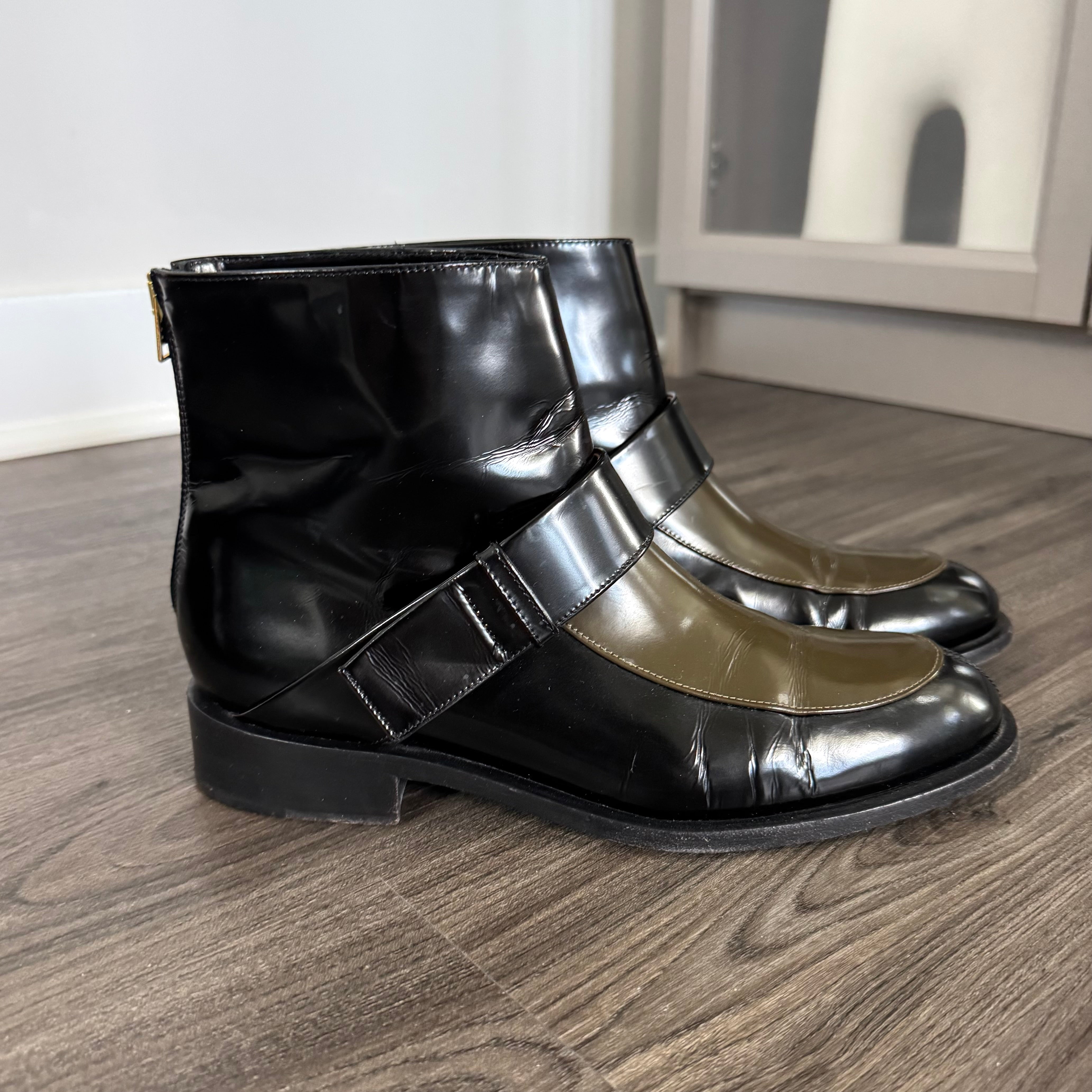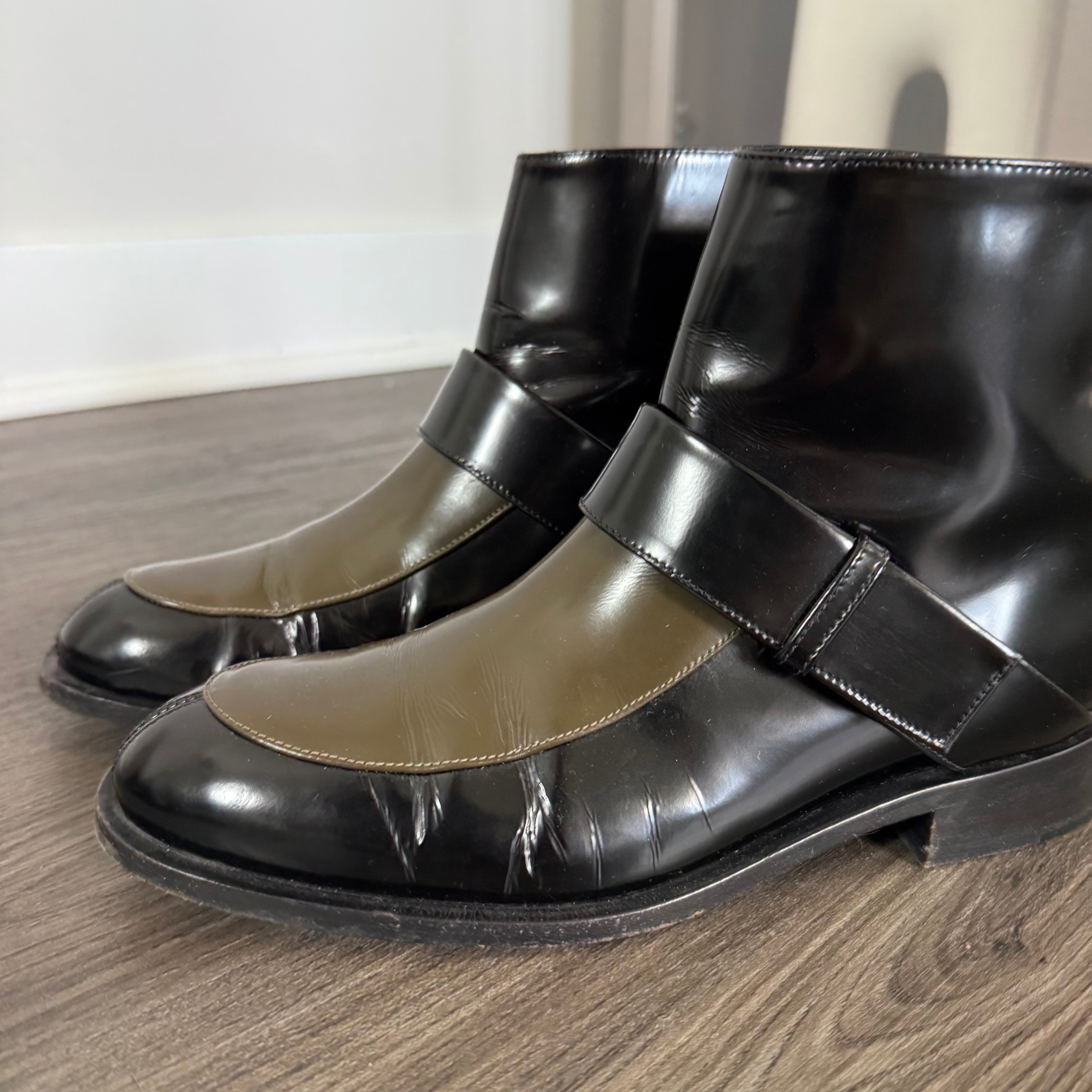 Marni Patent Leather Two-Tone Black Brown Heeled Ankle Boots