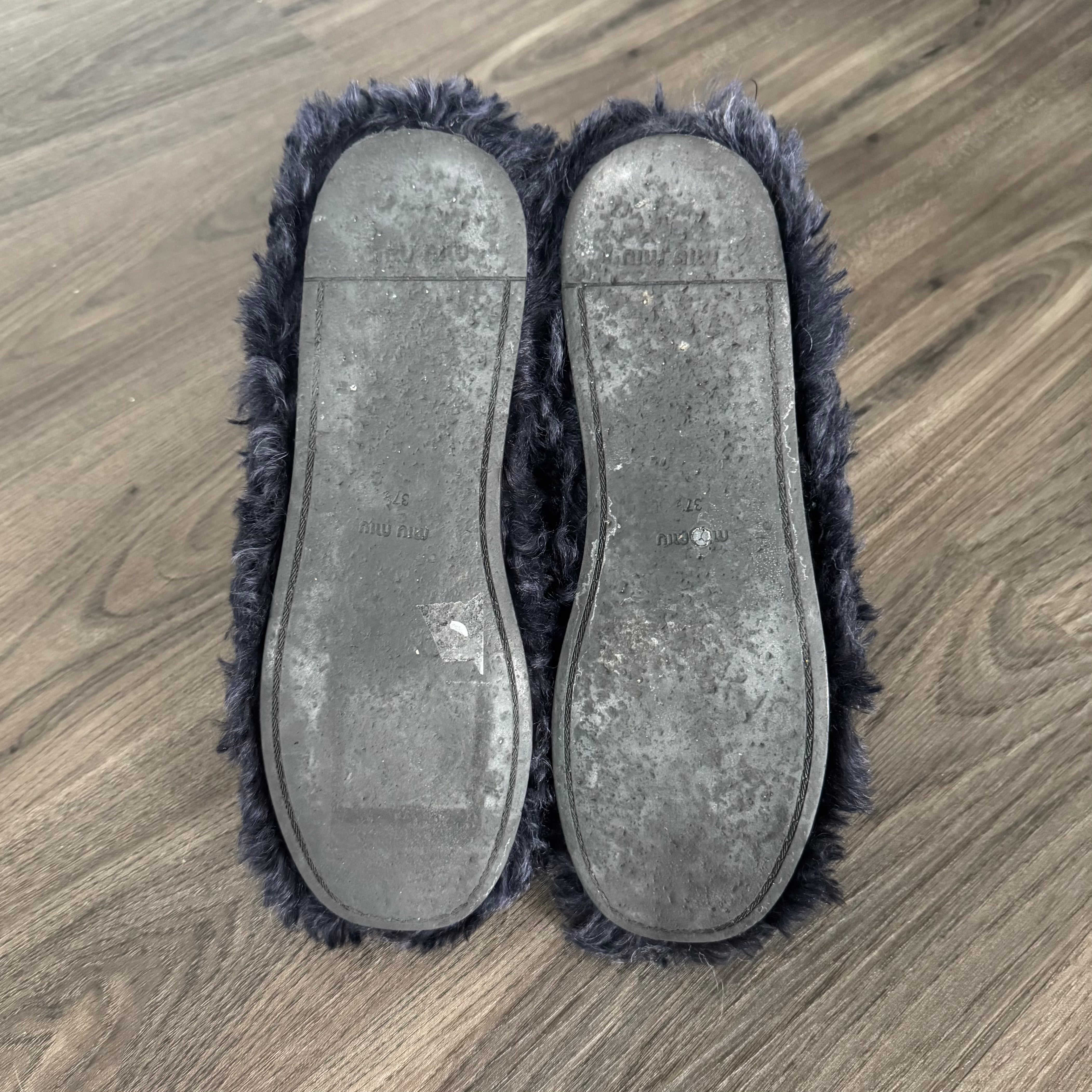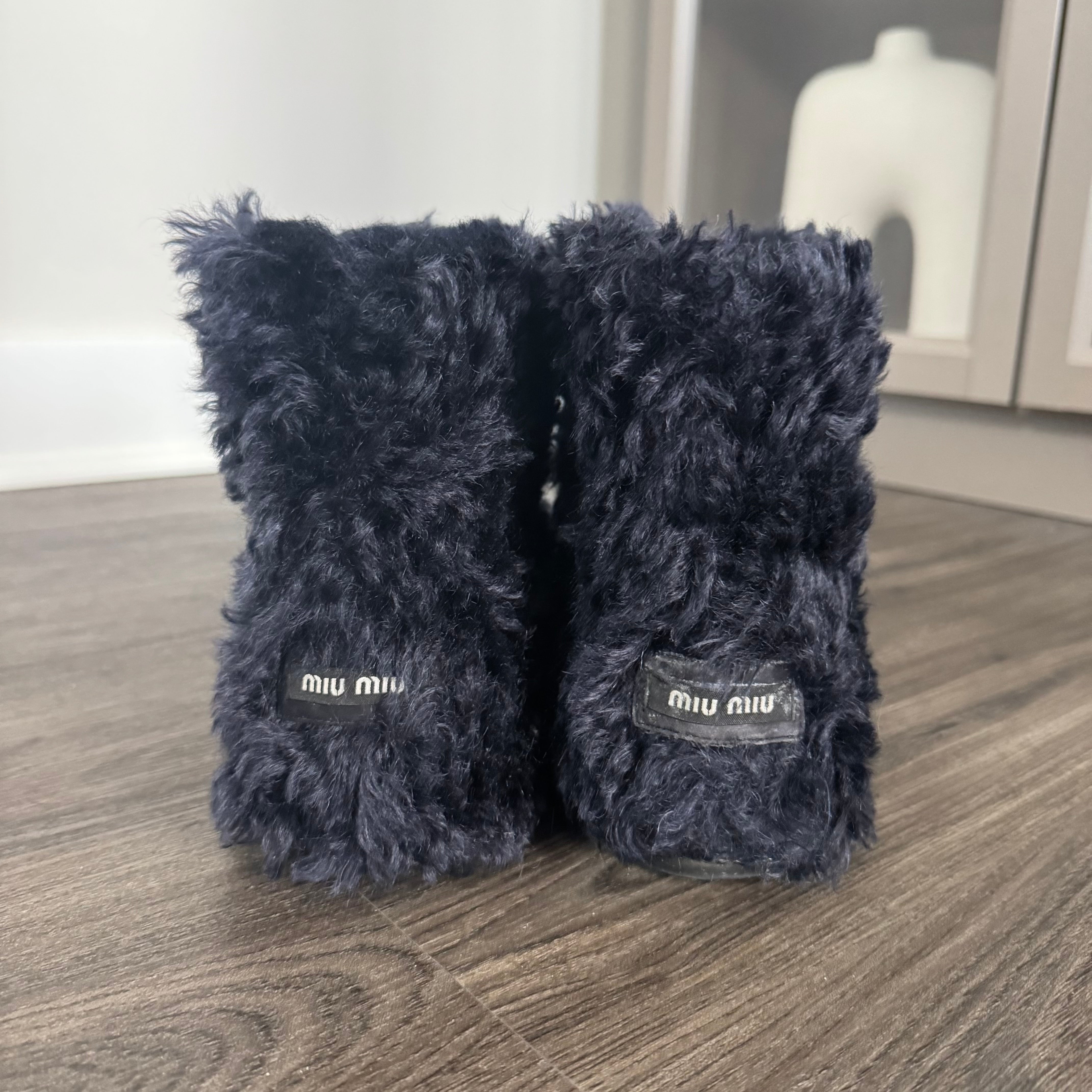 Miu Miu Faux Shearling Fur Navy Blue Ankle Boots