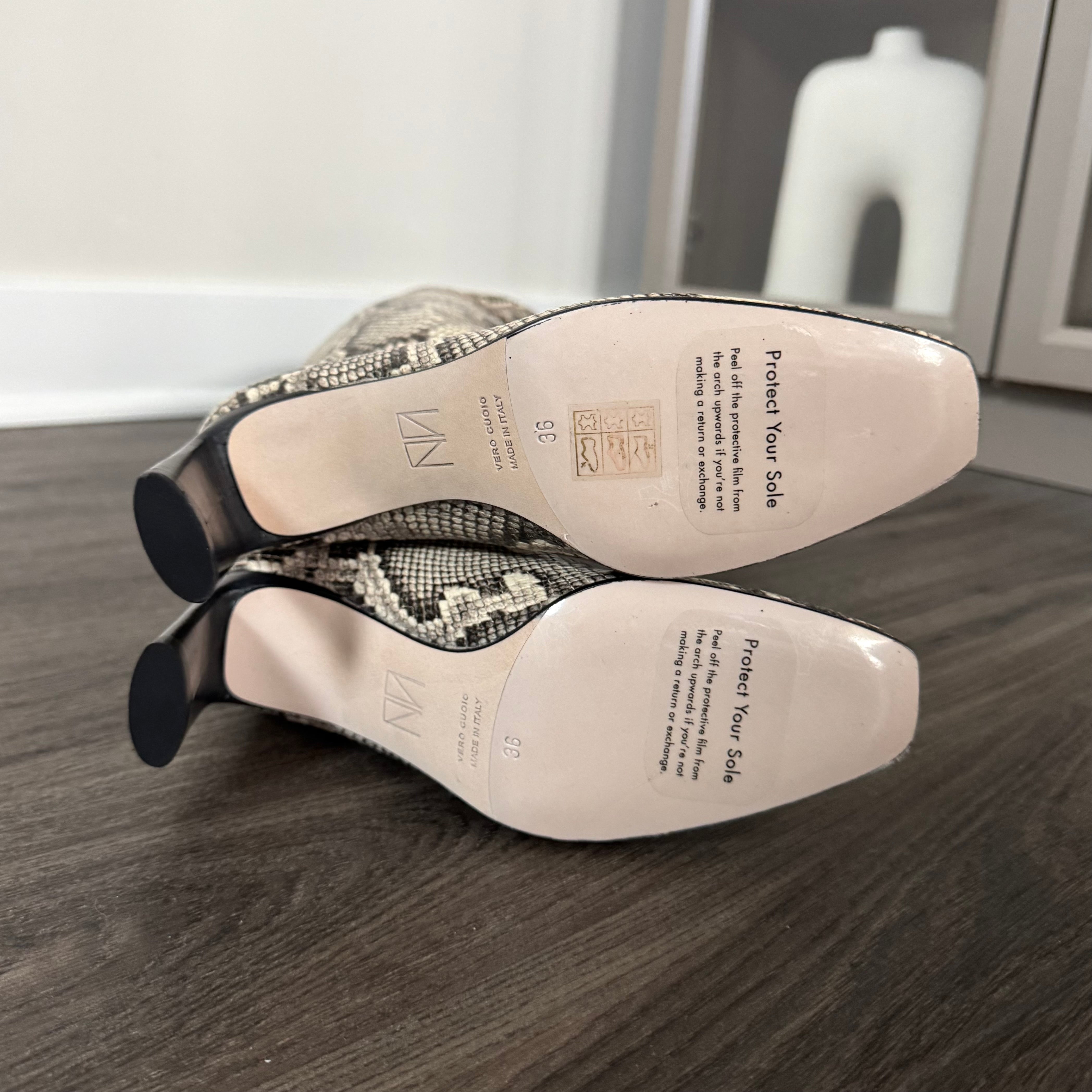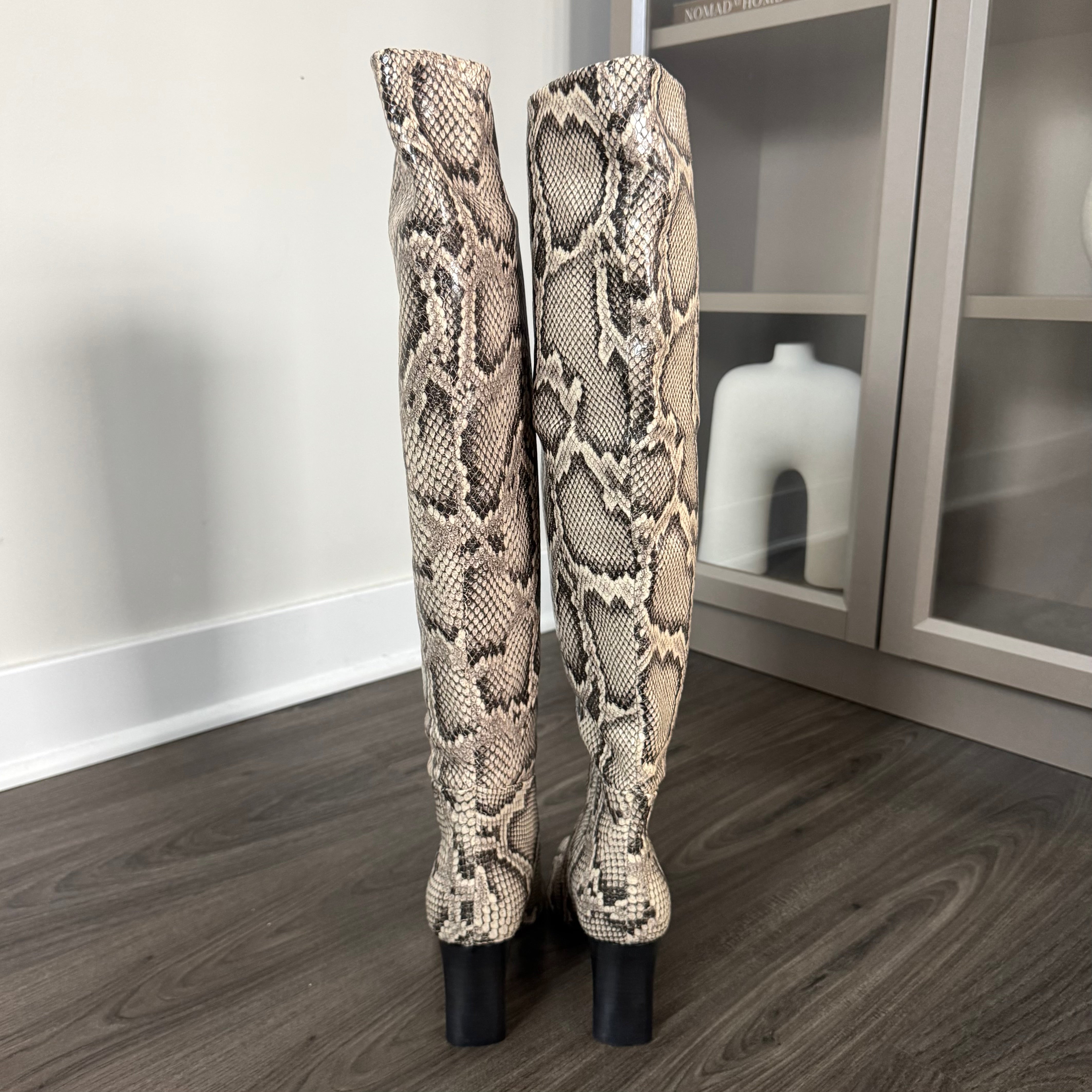 Tamara Mellon Legacy Brown Tan Snakeskin Embossed Over The Knee Boots