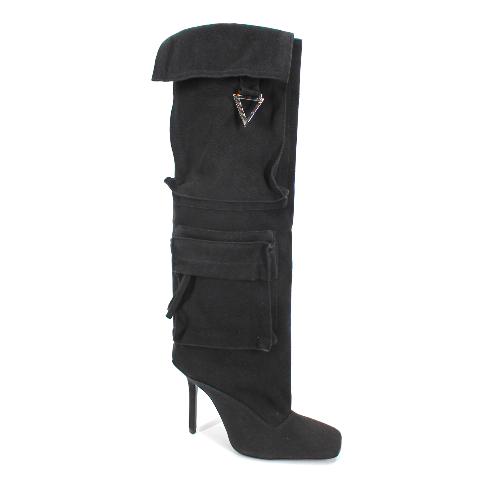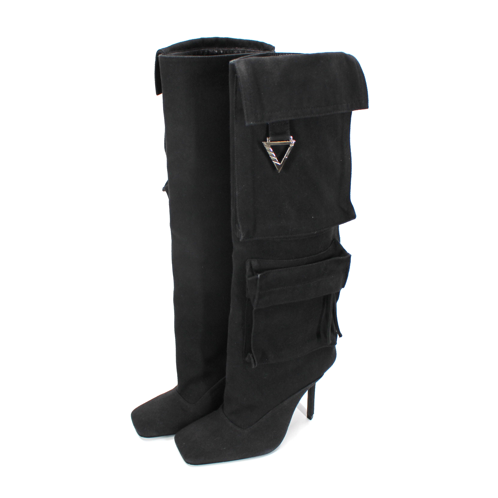 The Attico Sienna Cargo Knee High Black Denim Pockets Heeled Boots