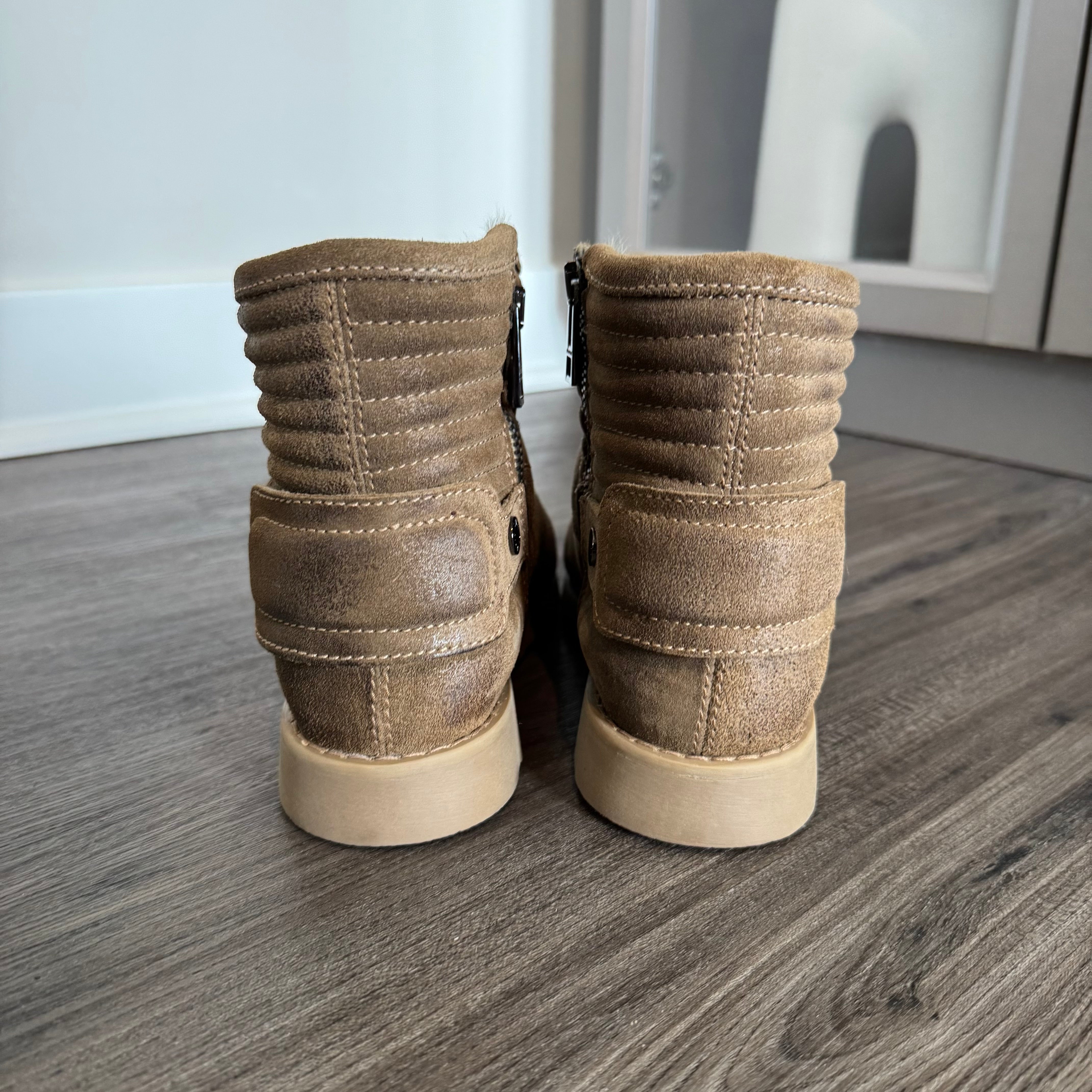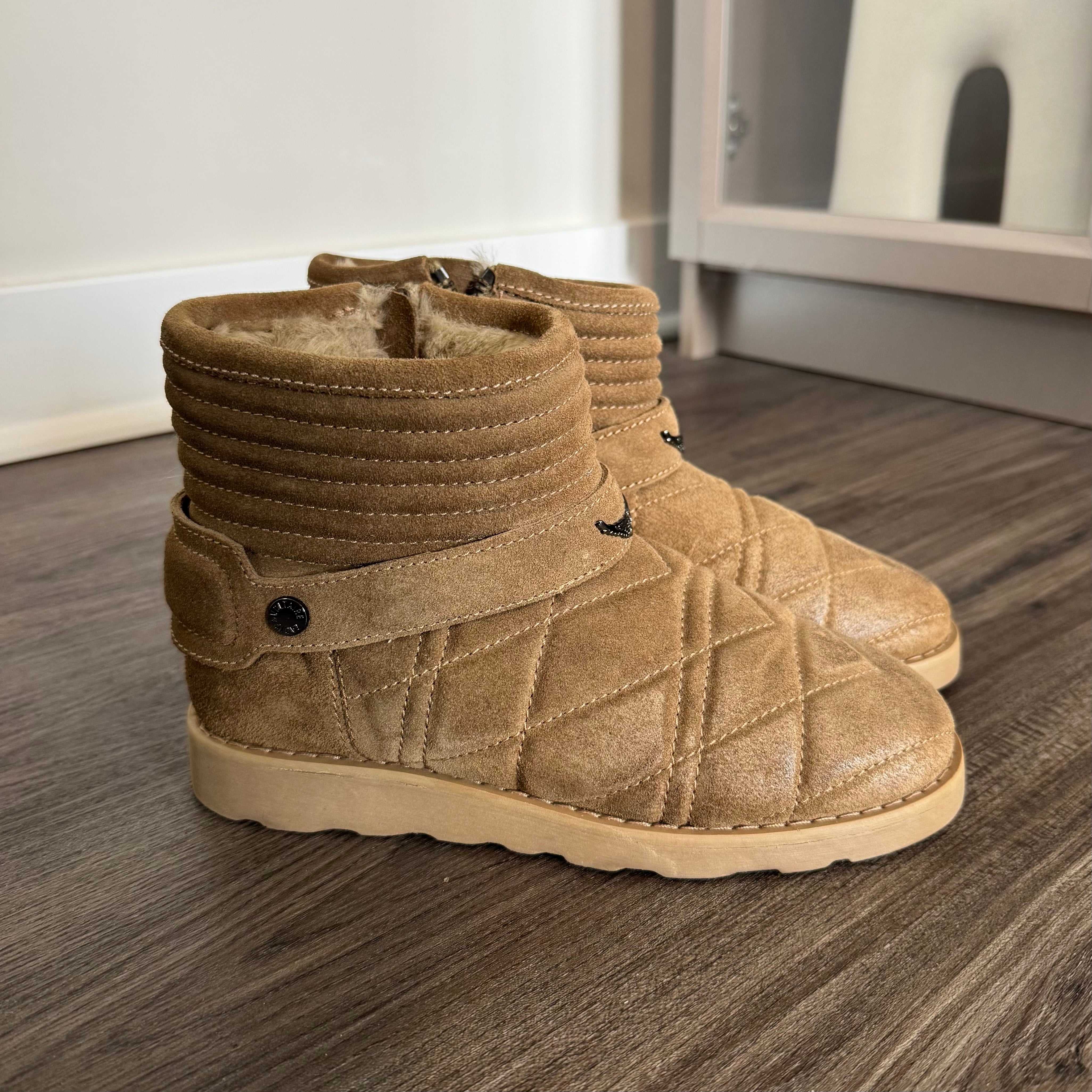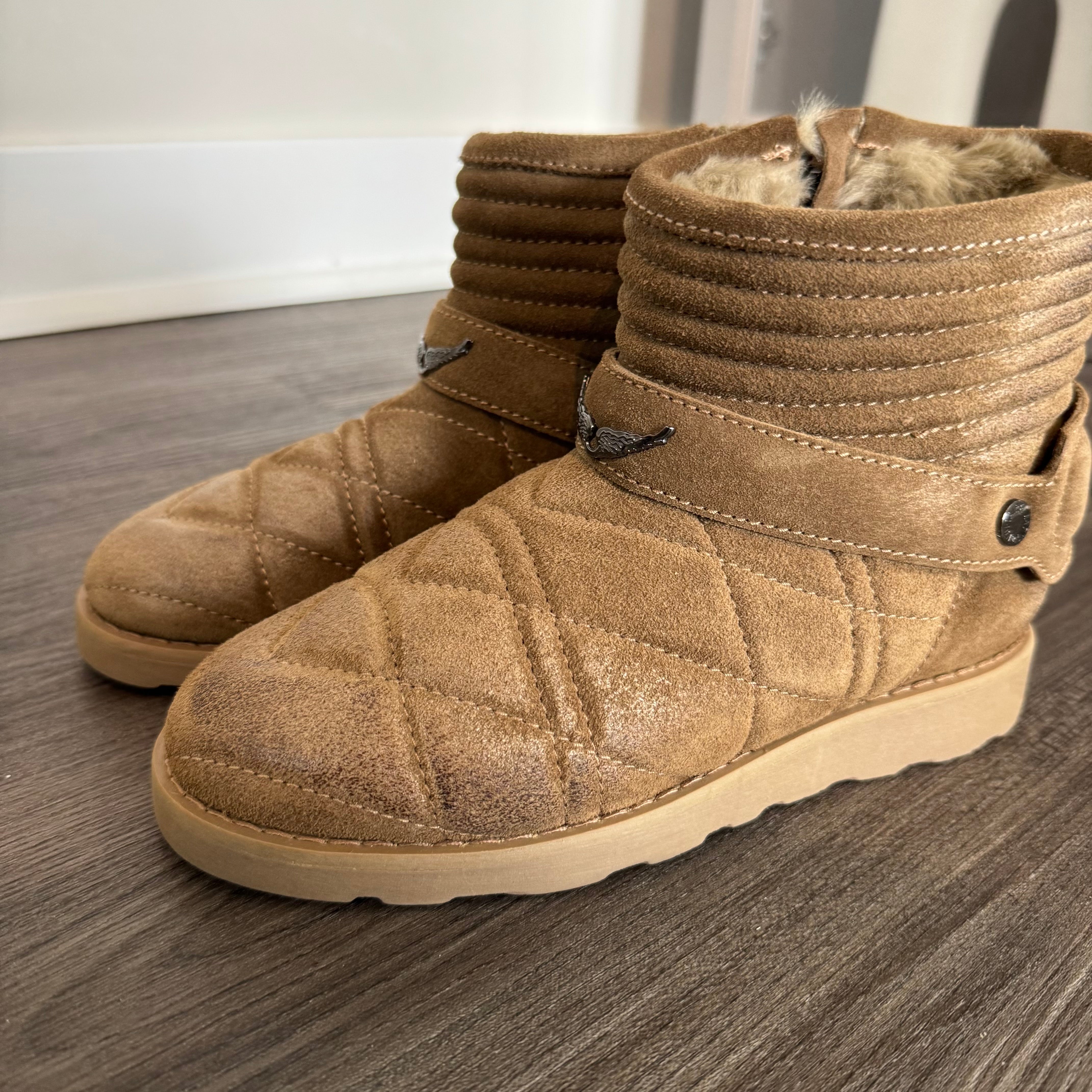 Zadig & Voltaire Brown Quilted Leather Suede Faux Fur Lined Ankle Bootie
