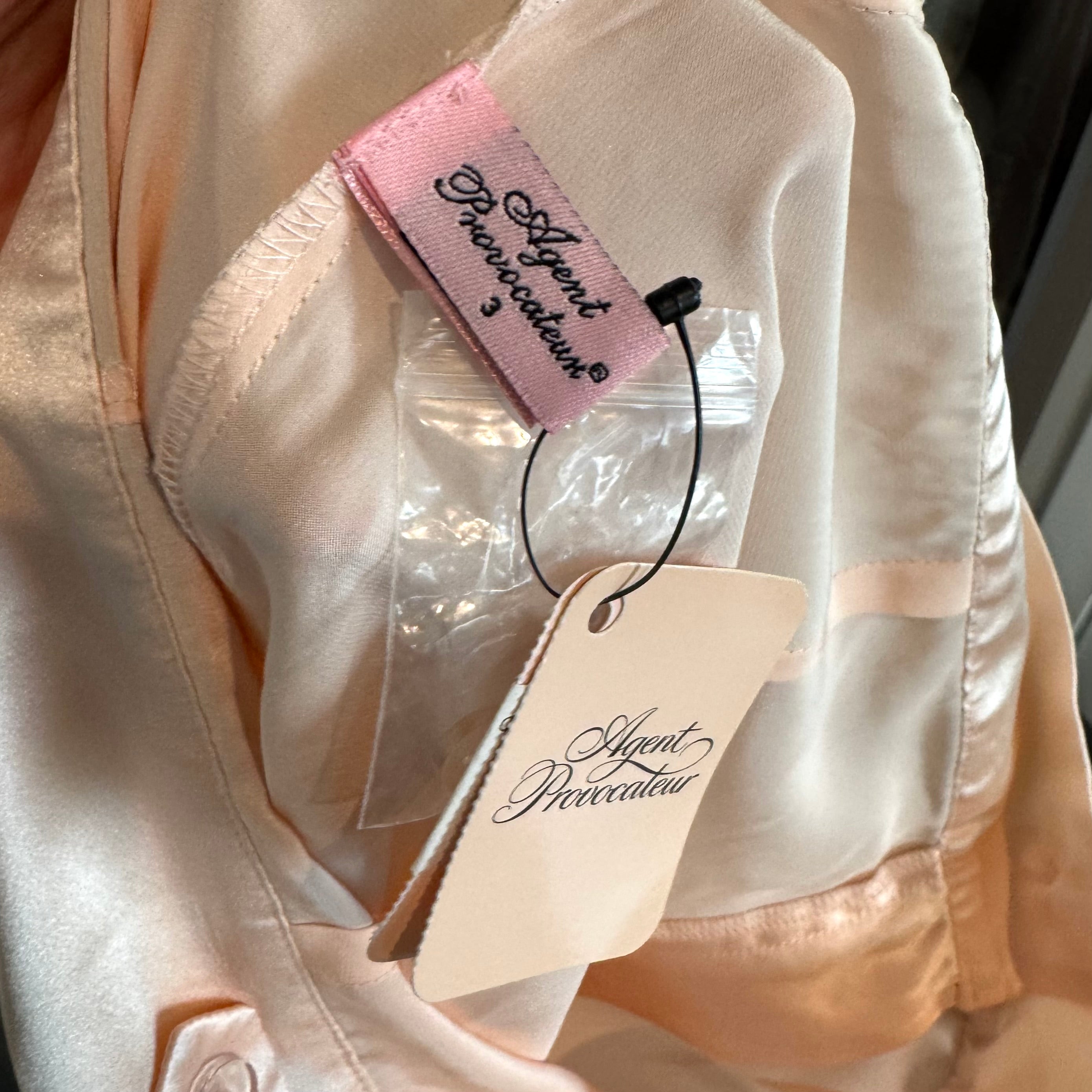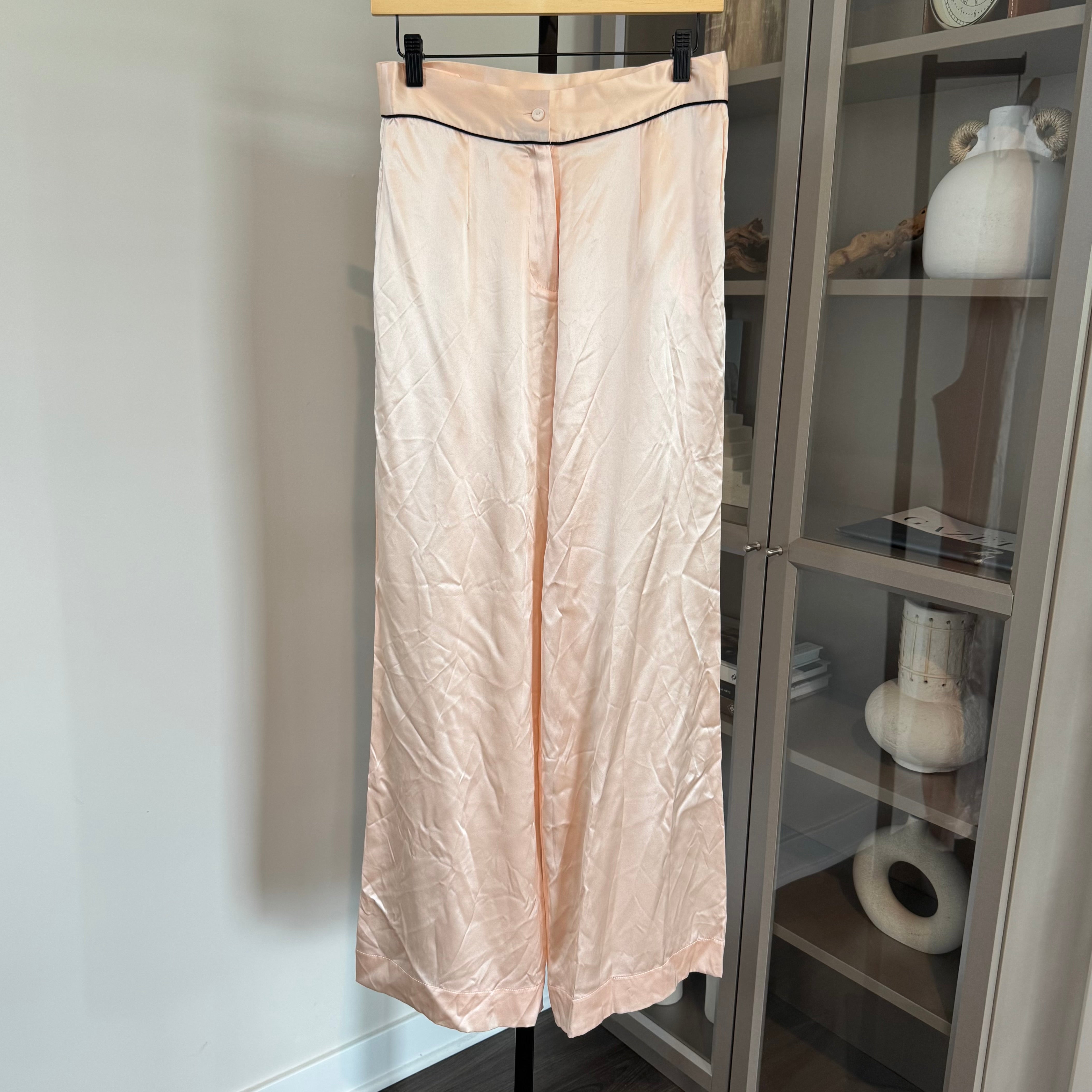 Agent Provocateur Classic Pyjama PJ Bottom Pink Silk Black Trim High Rise Trouser