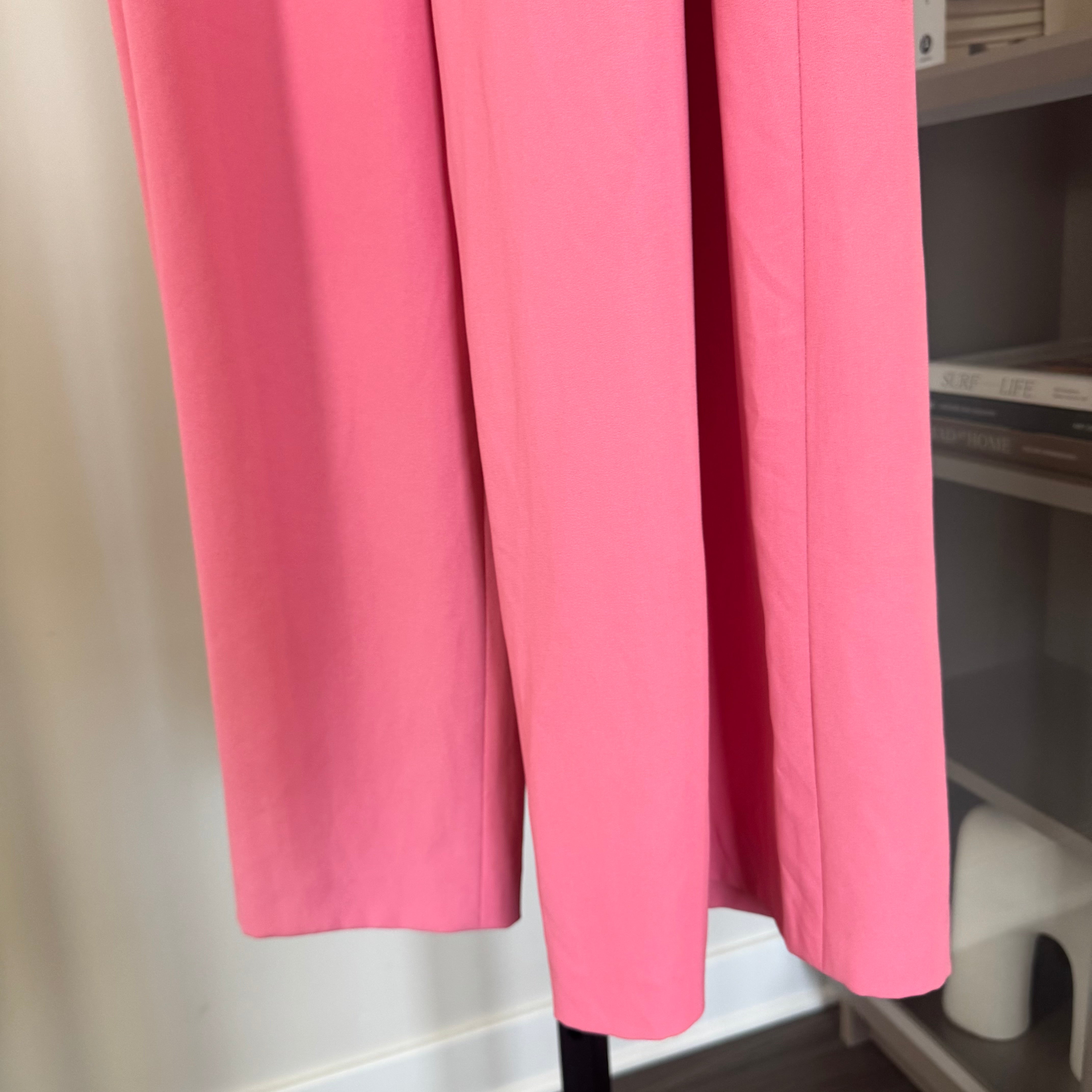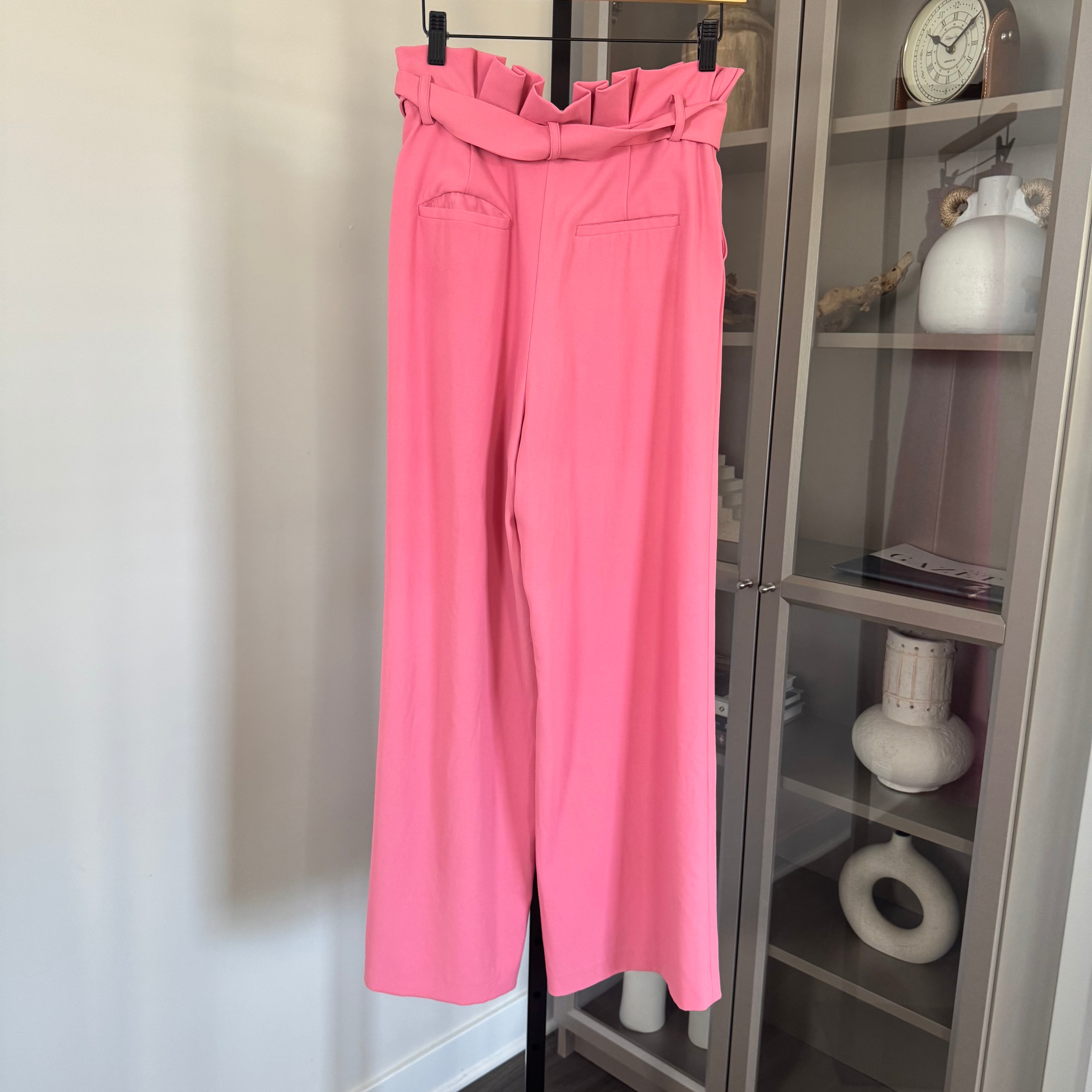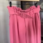 Alice + Olivia Pink High Waisted Paper Bag Belted Wide Leg Crop Trouser Pants