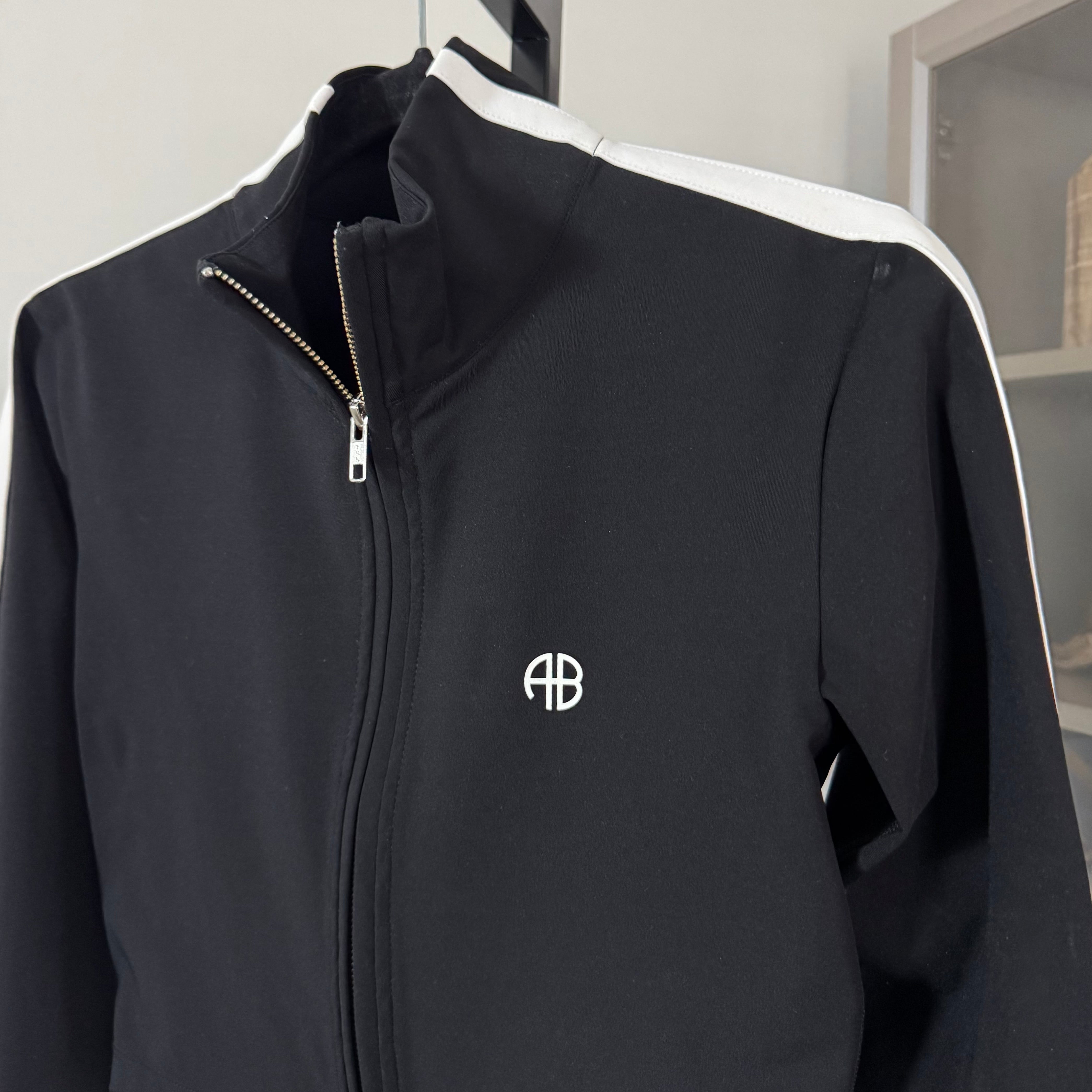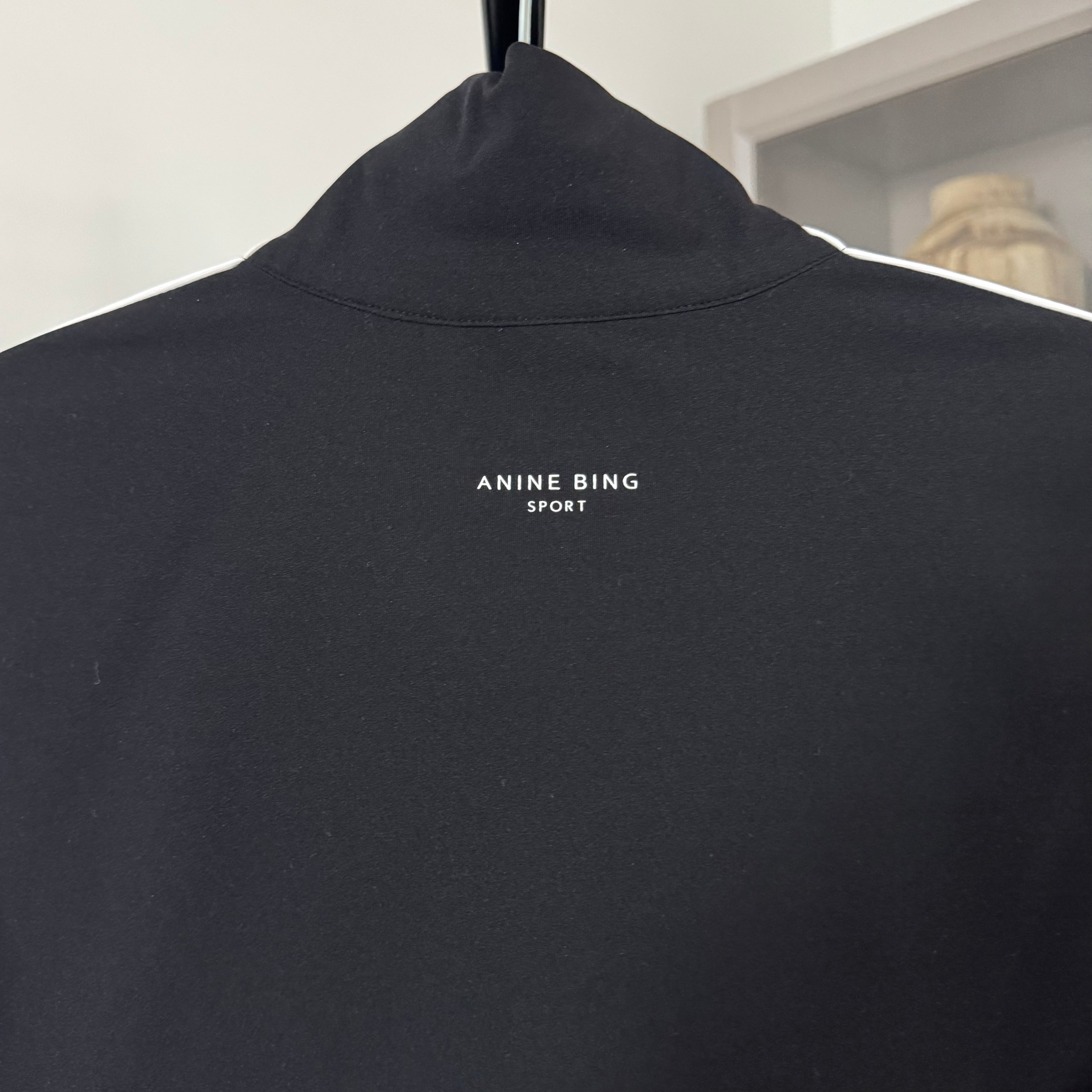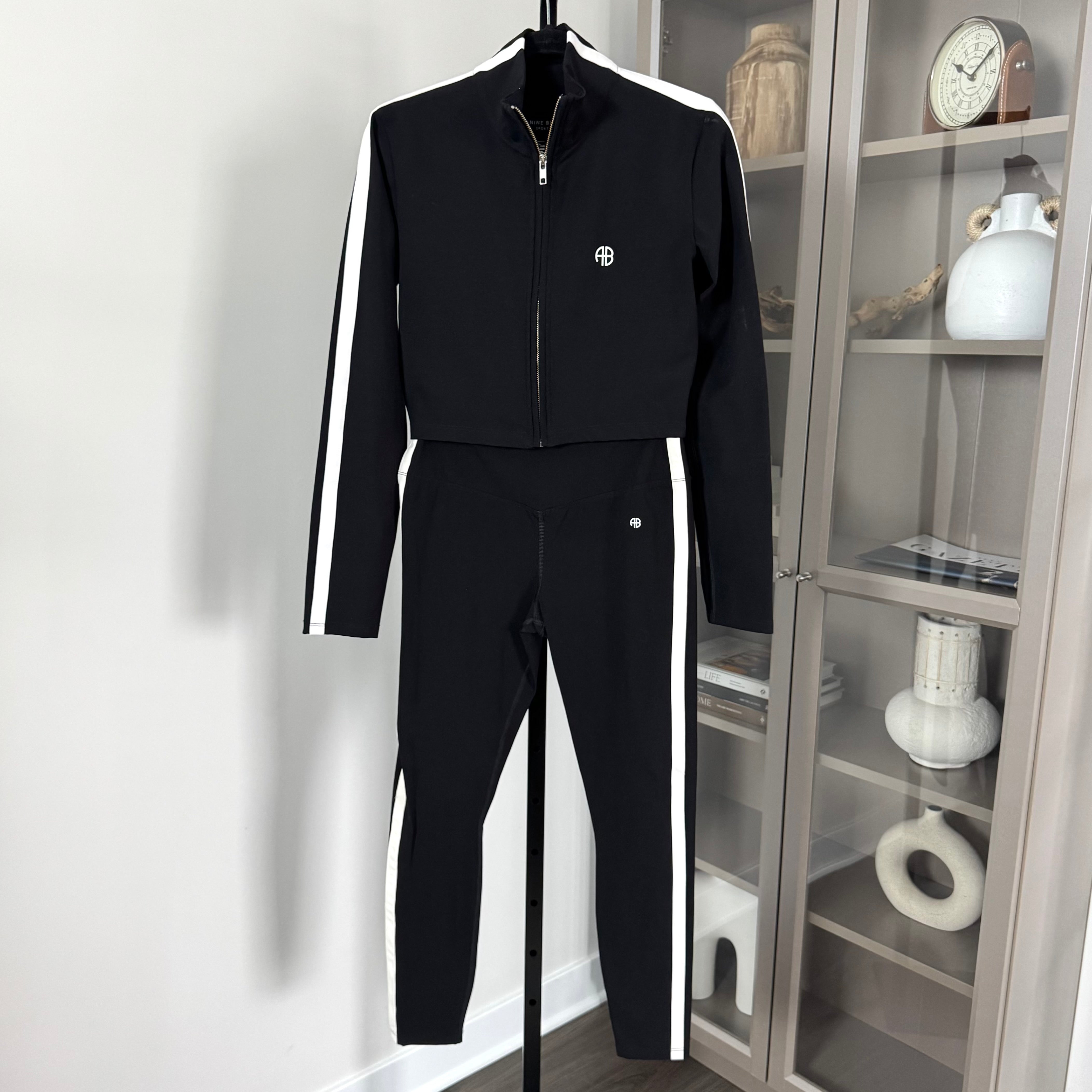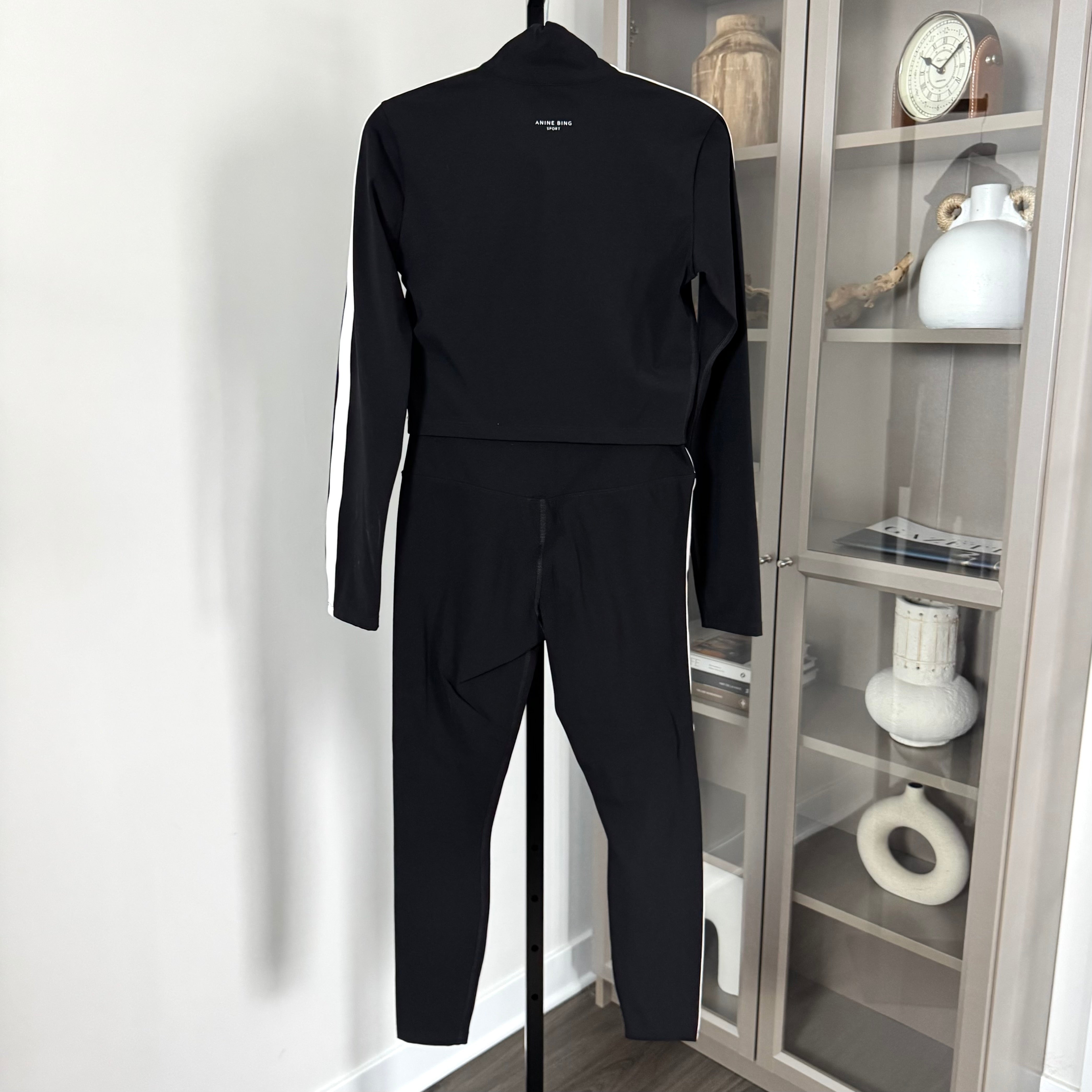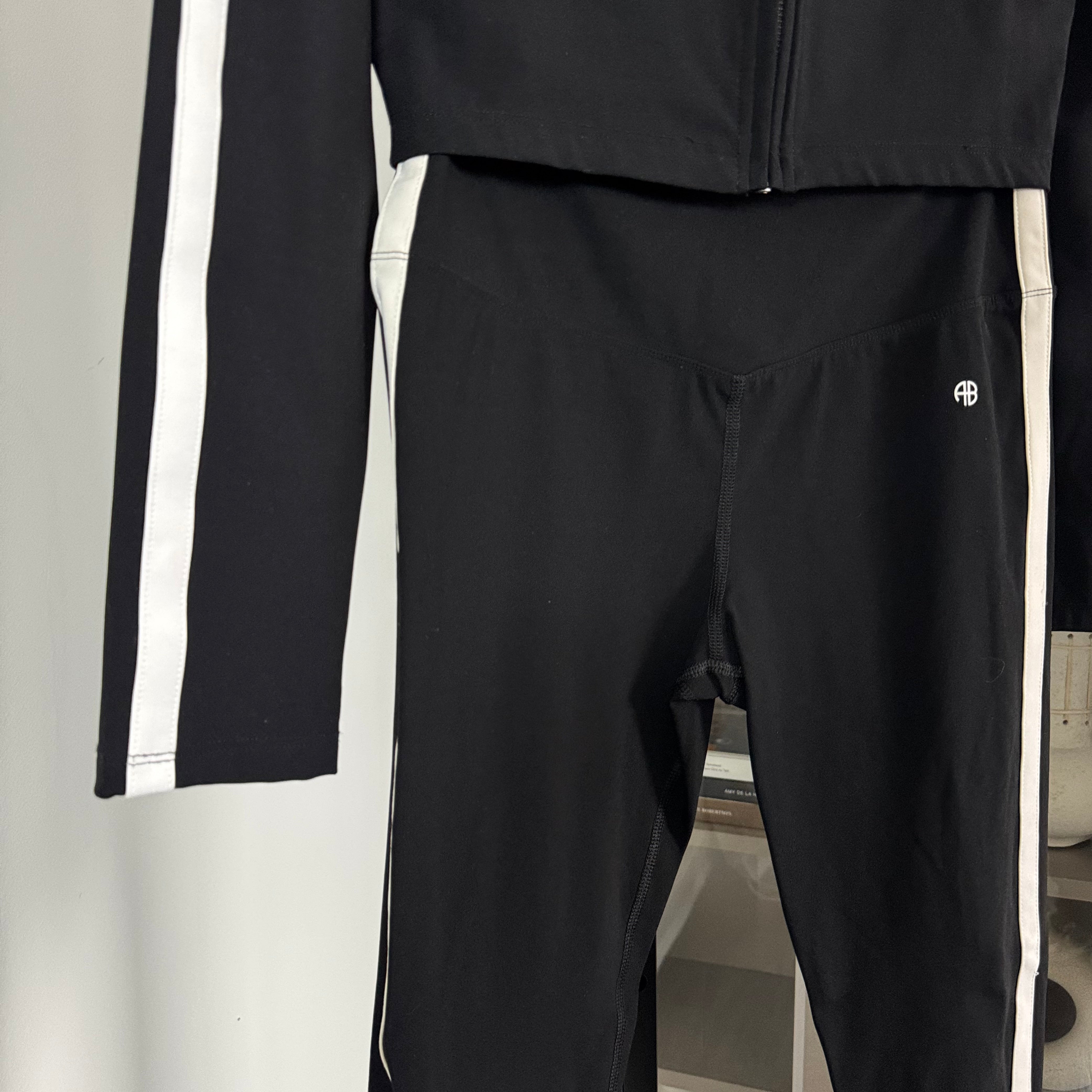 Anine Bing Sport Black Athletic 2 Pc White Stripe Leggings Zip-Up Jacket