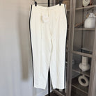 Chloe Milk White Black Trim High Waisted Pleated Tapered Leg Trouser Pants