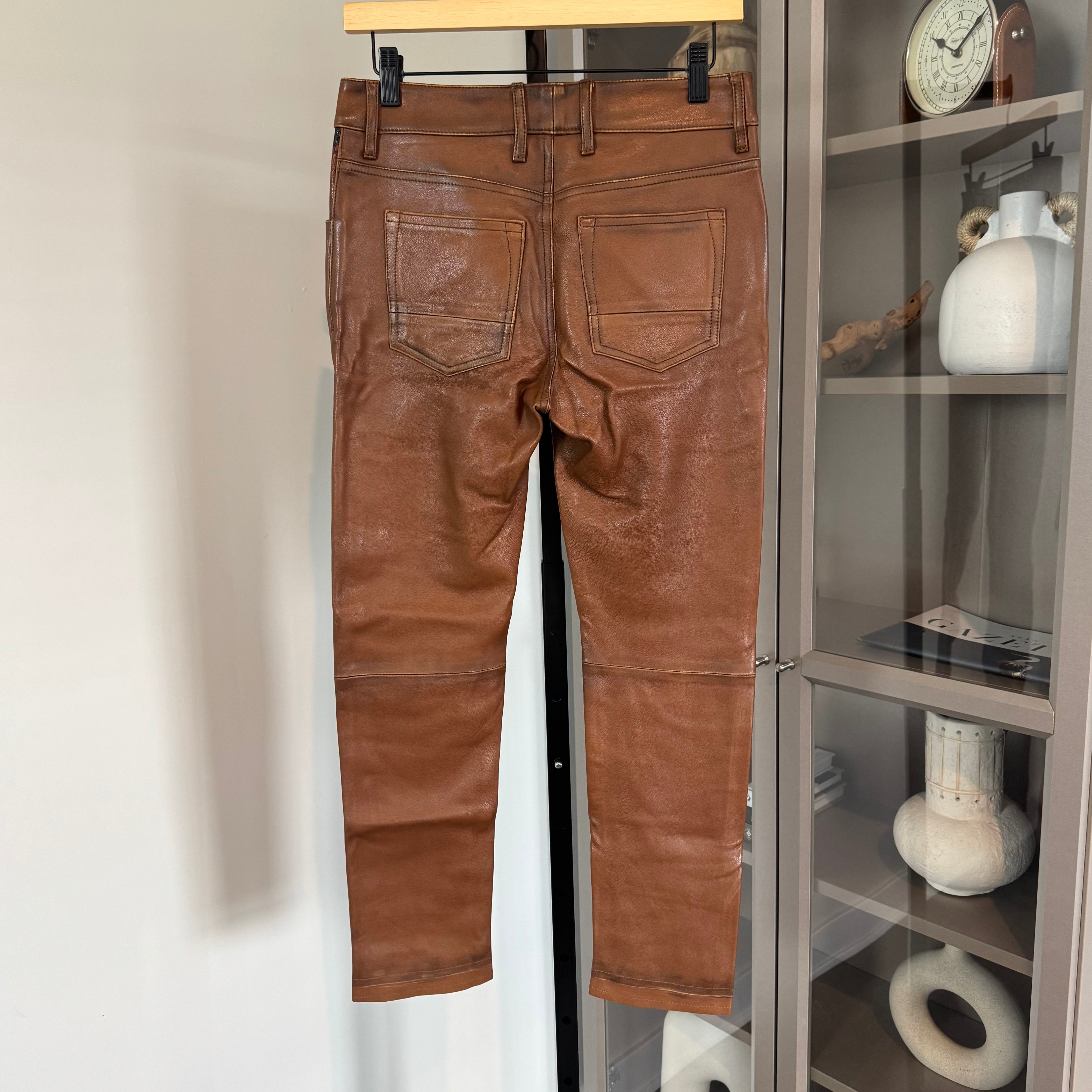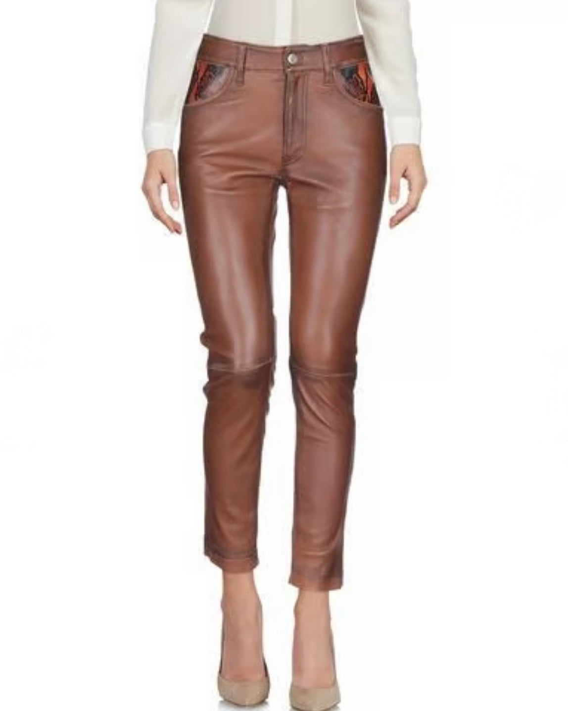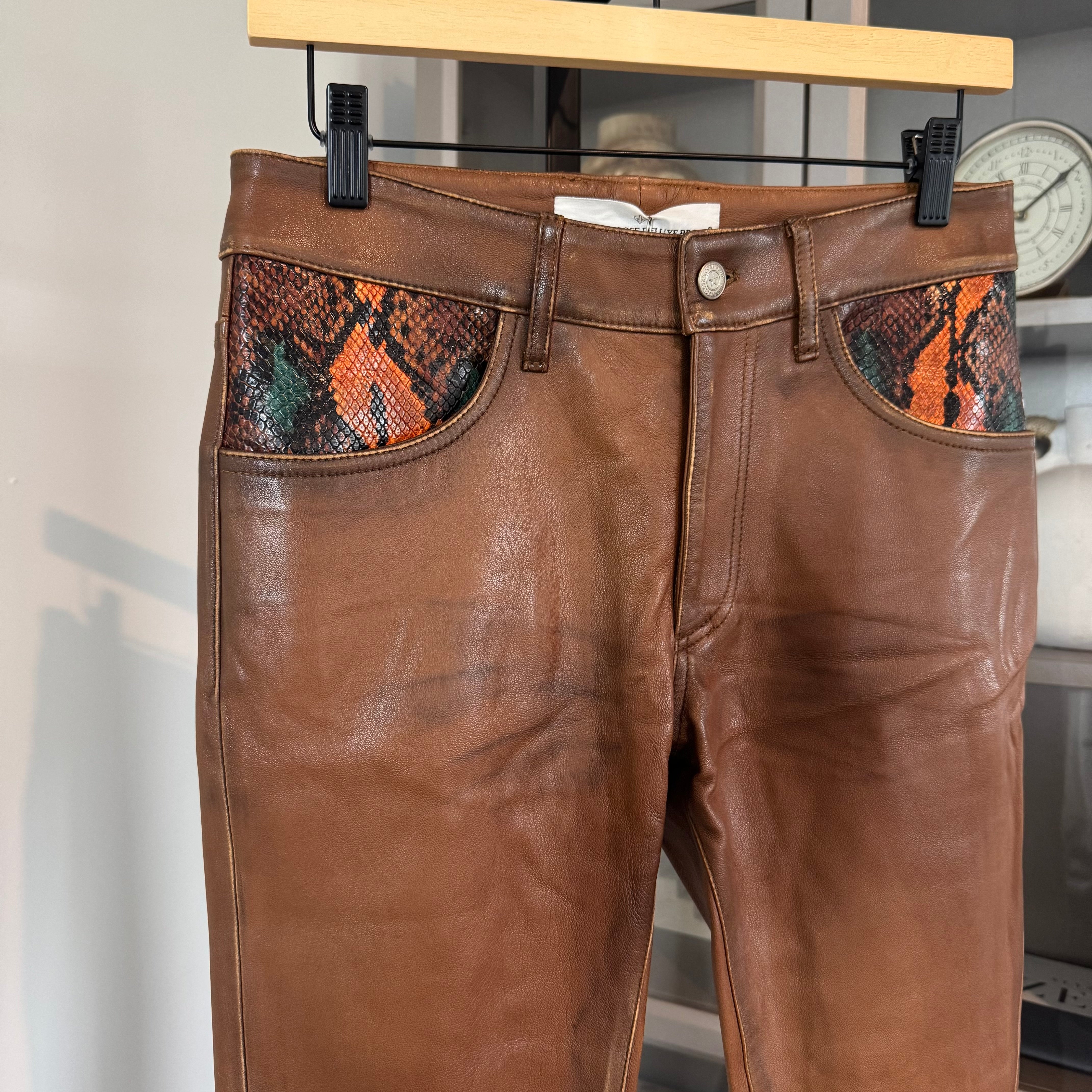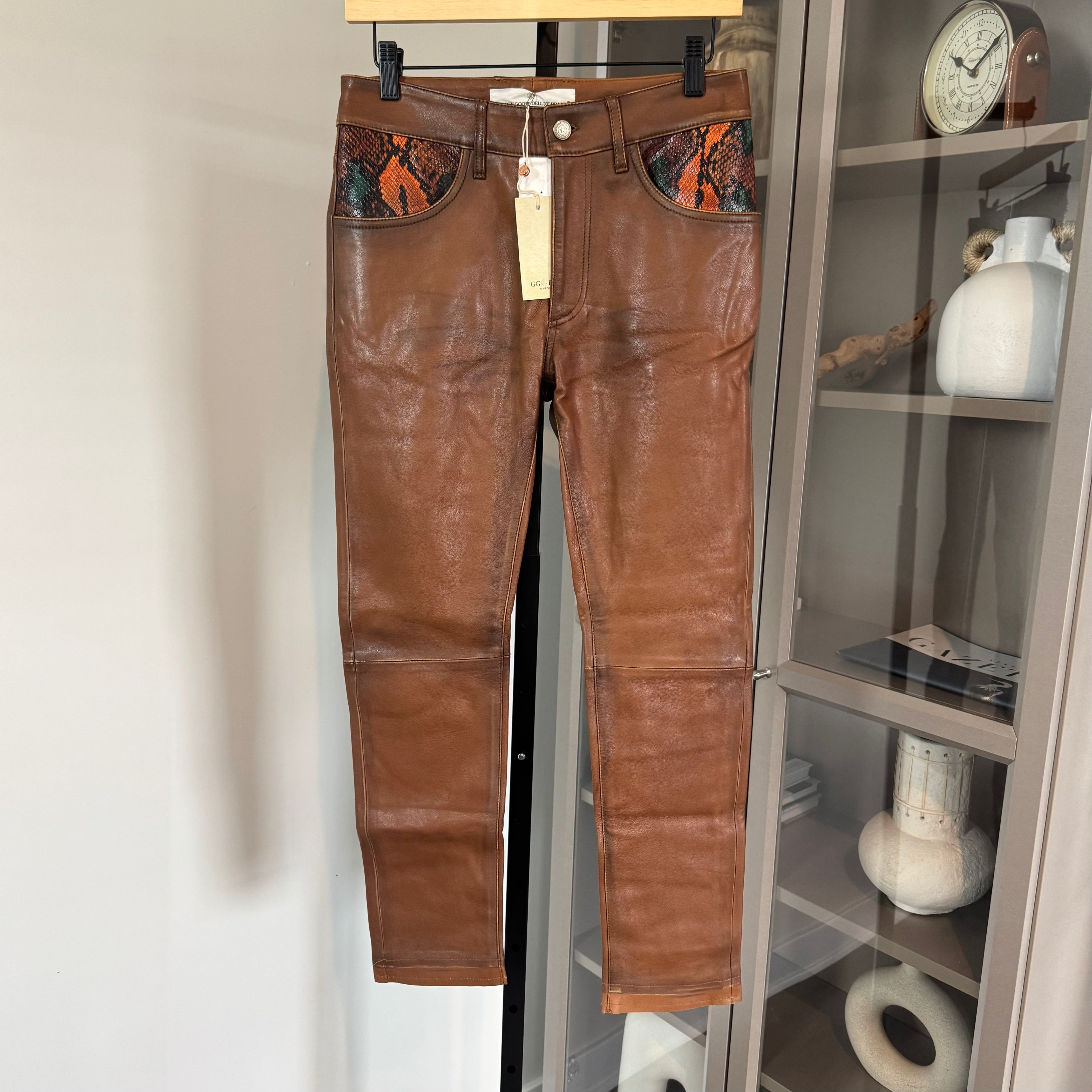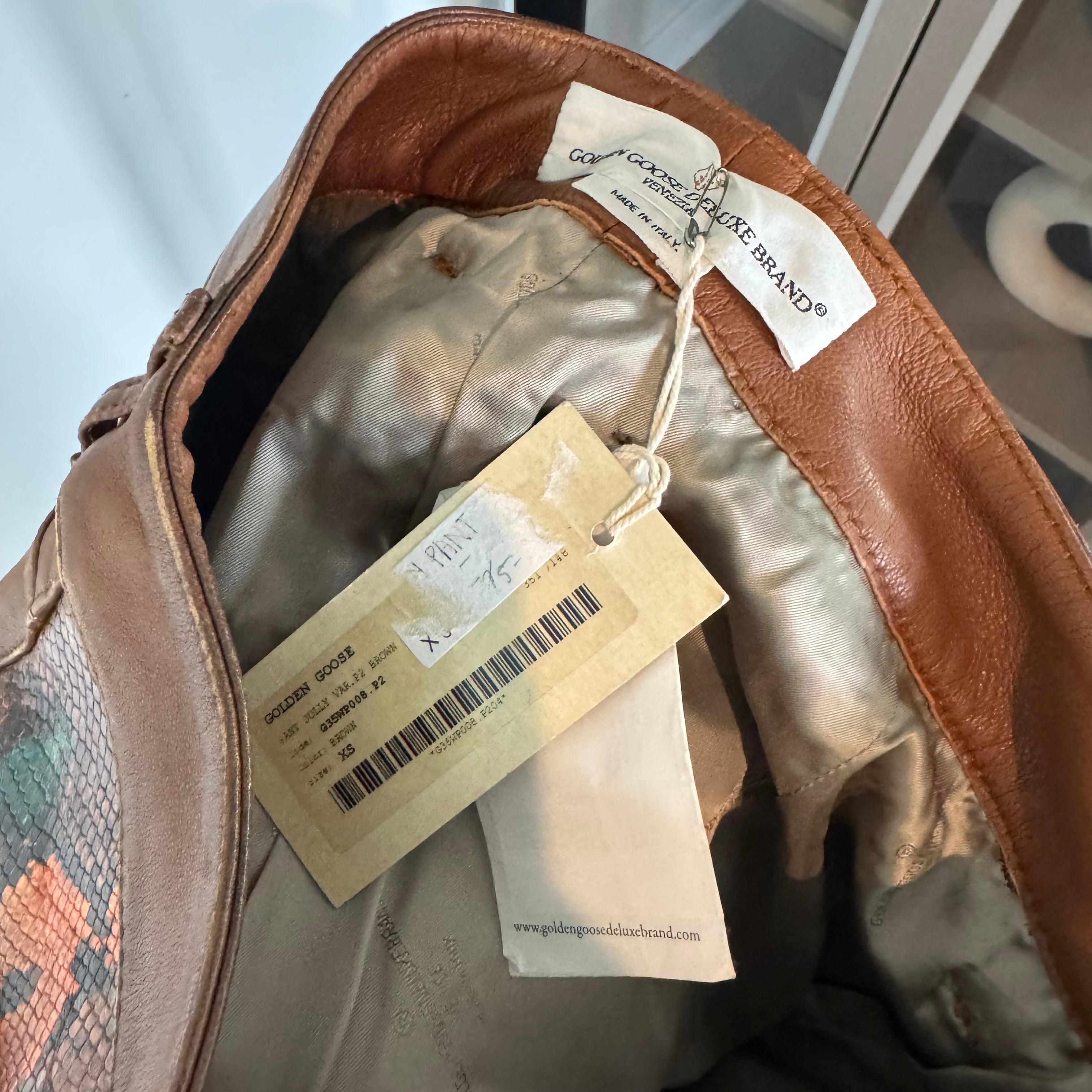 Golden Goose Deluxe Jolly Brown Goat Leather Multicolor Reptile Design Pants