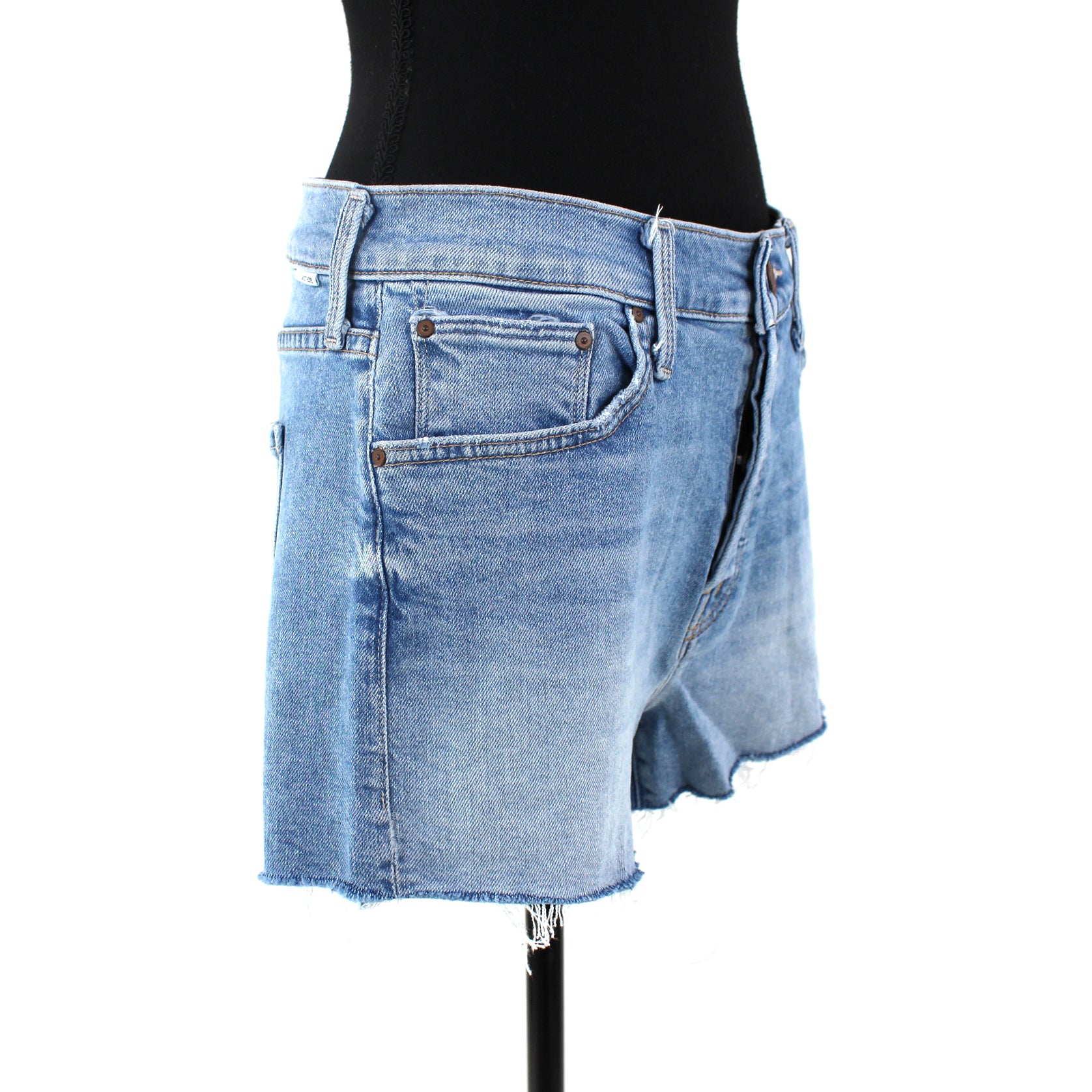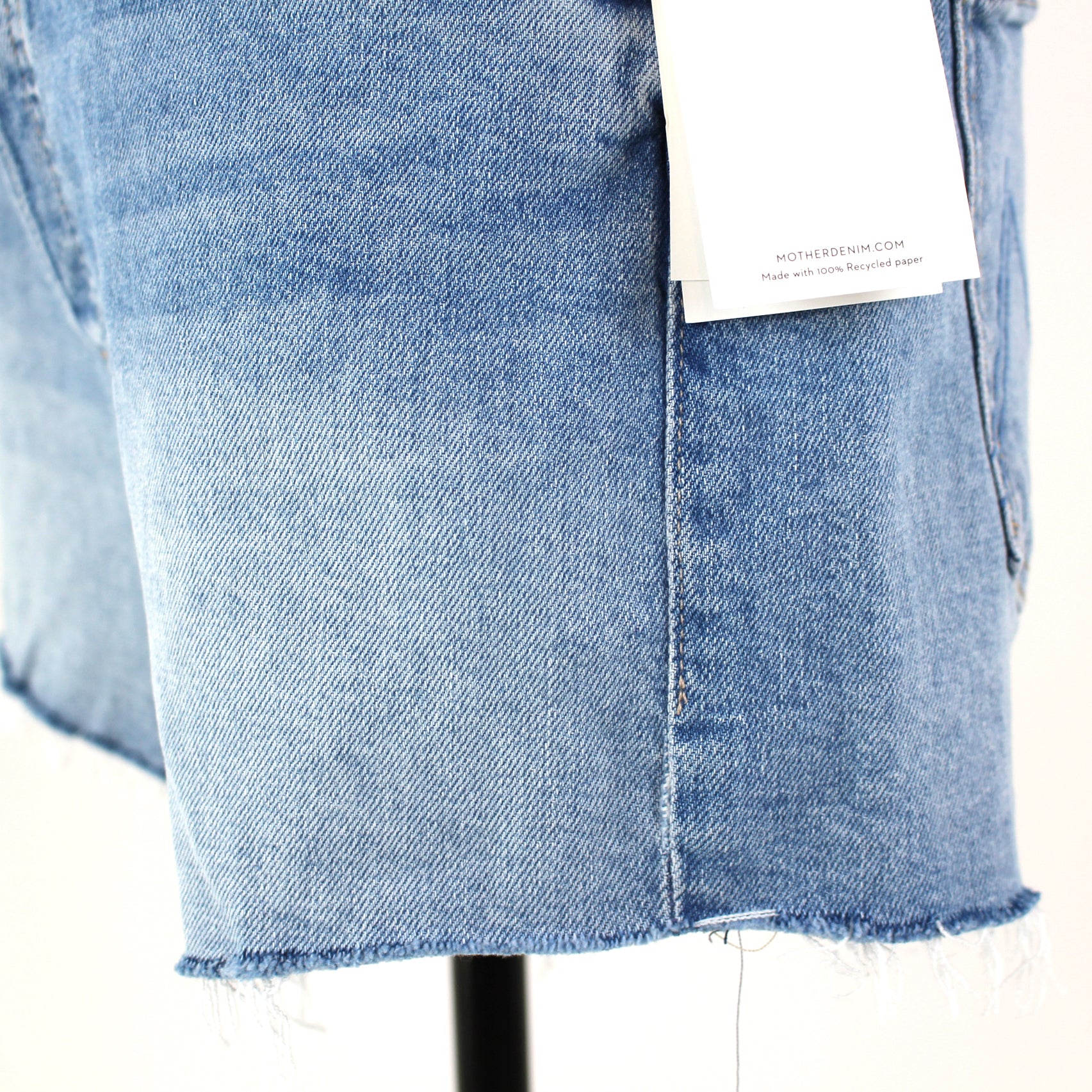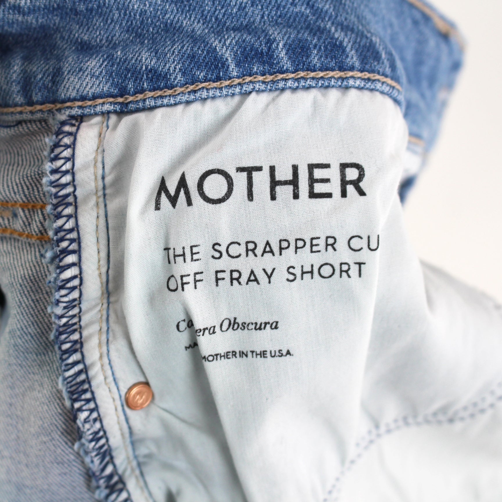 Mother Blue Denim Scrapper Cut-Off Frayed Light Wash Jean Shorts