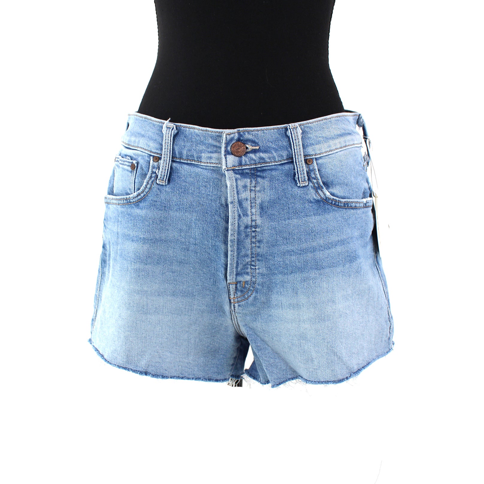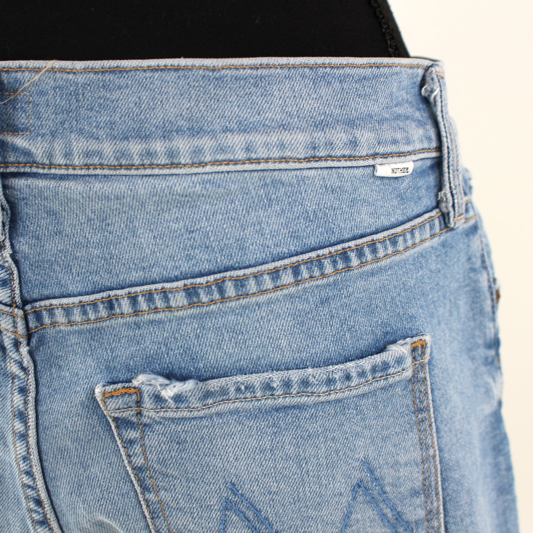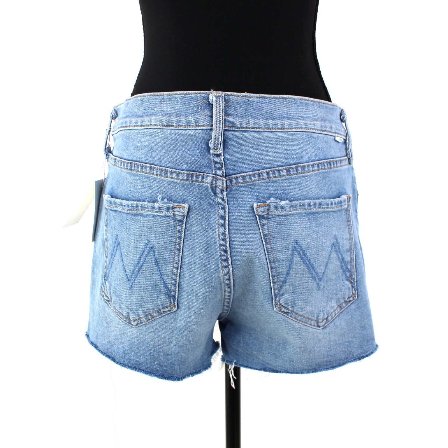 Mother Blue Denim Scrapper Cut-Off Frayed Light Wash Jean Shorts