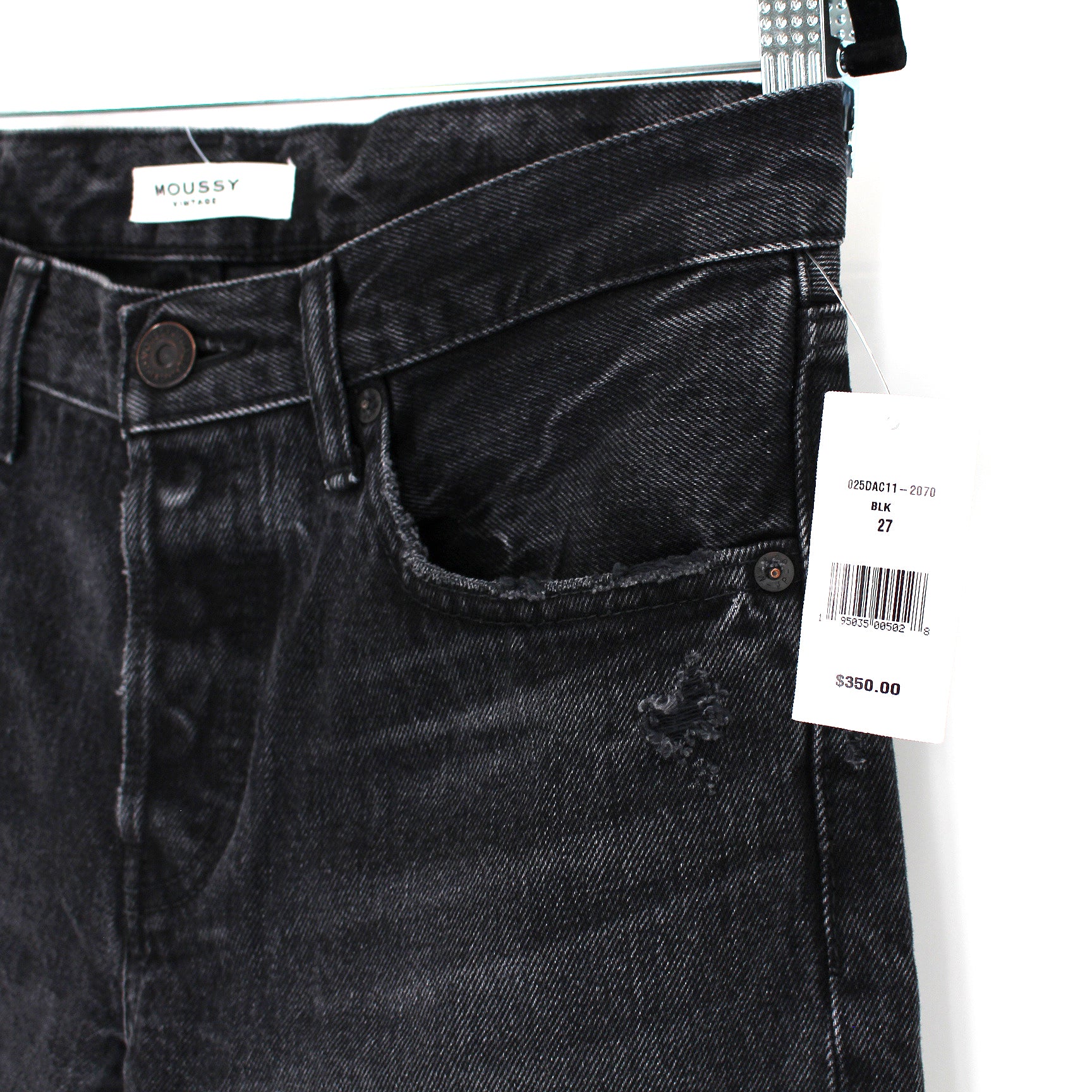 Moussy Vintage Fremont Black Denim Frayed Rip Knees Skinny Jeans