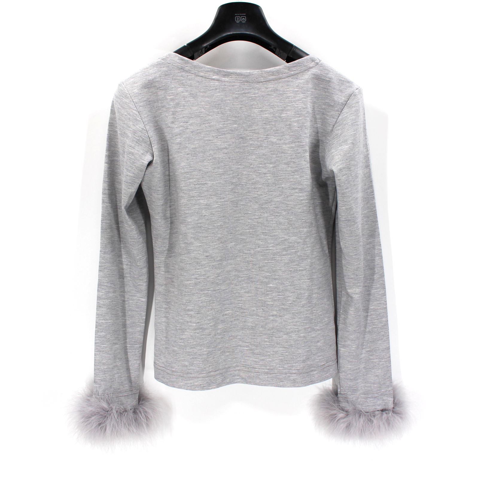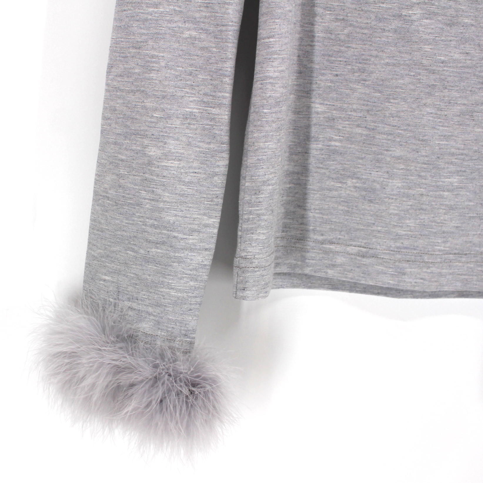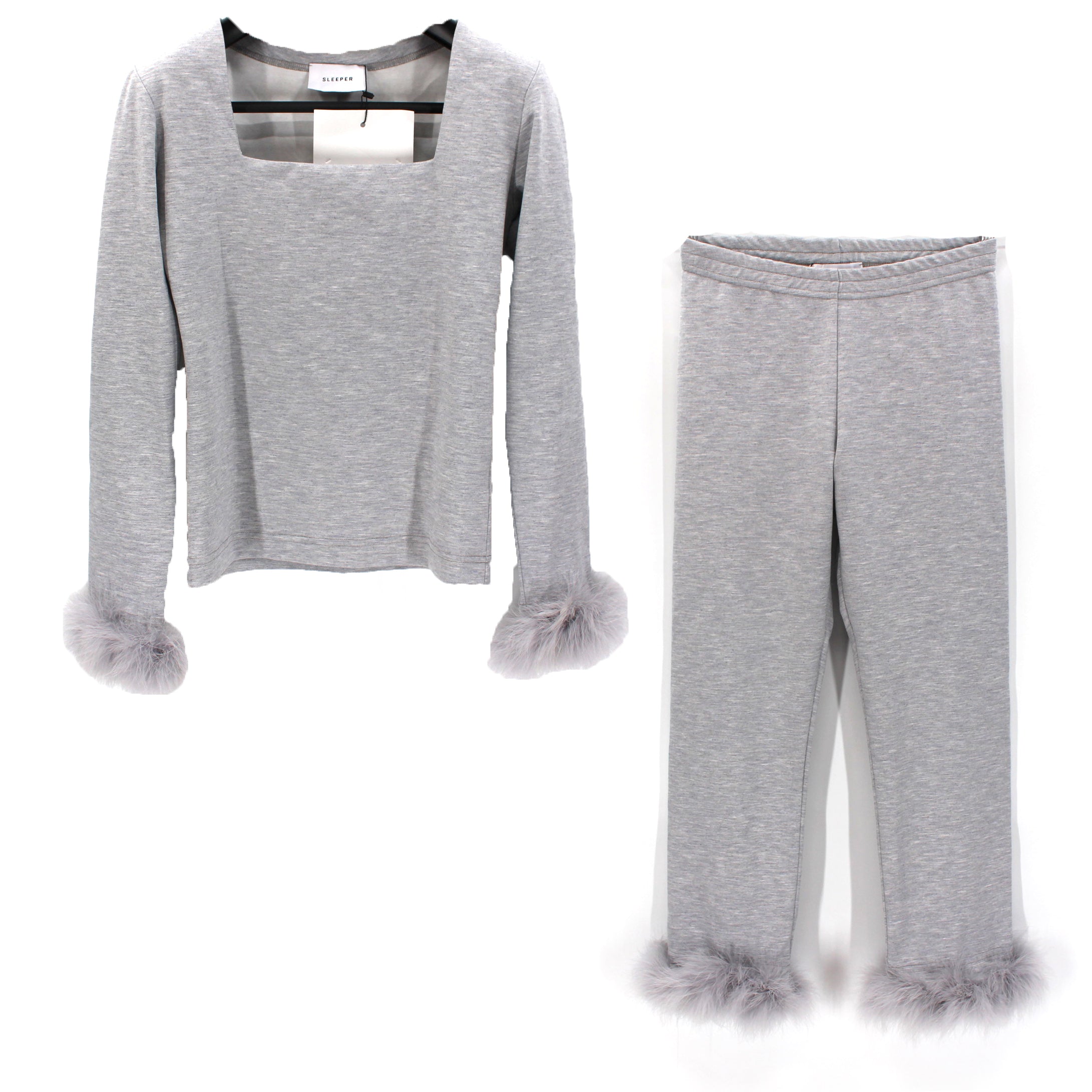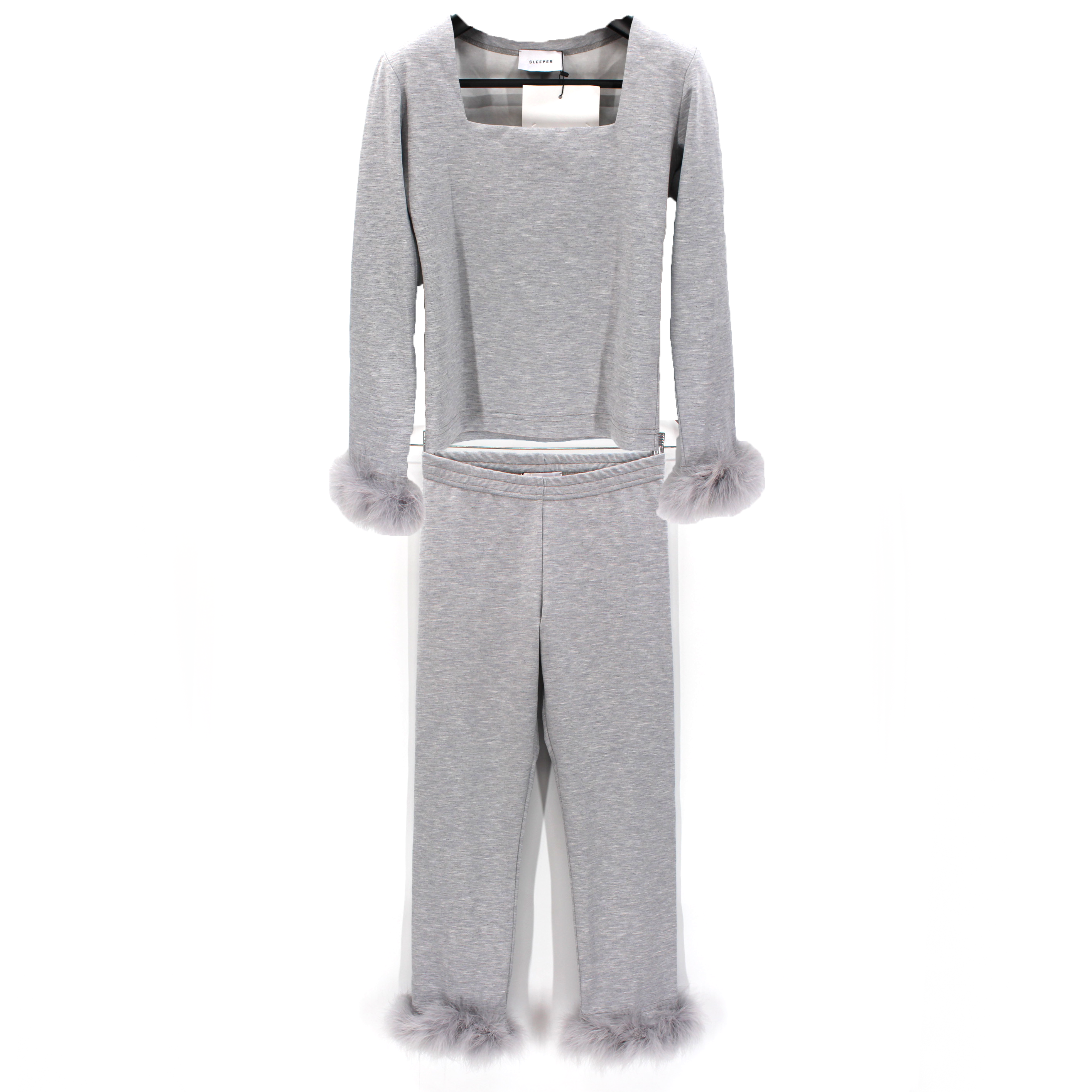 Sleeper The Weekend Chic 2 Pc Grey Feather Trim Pants Pajama Top Set