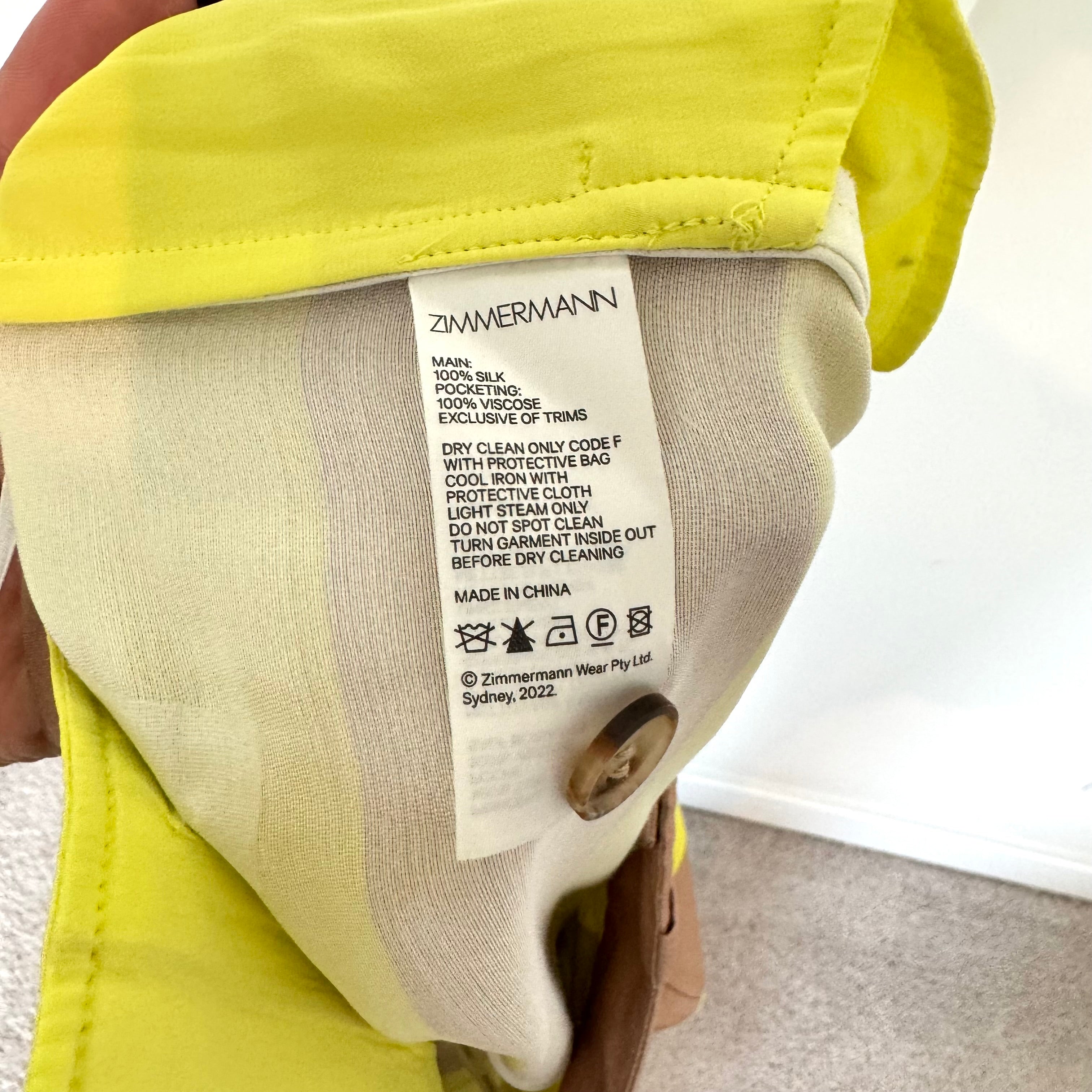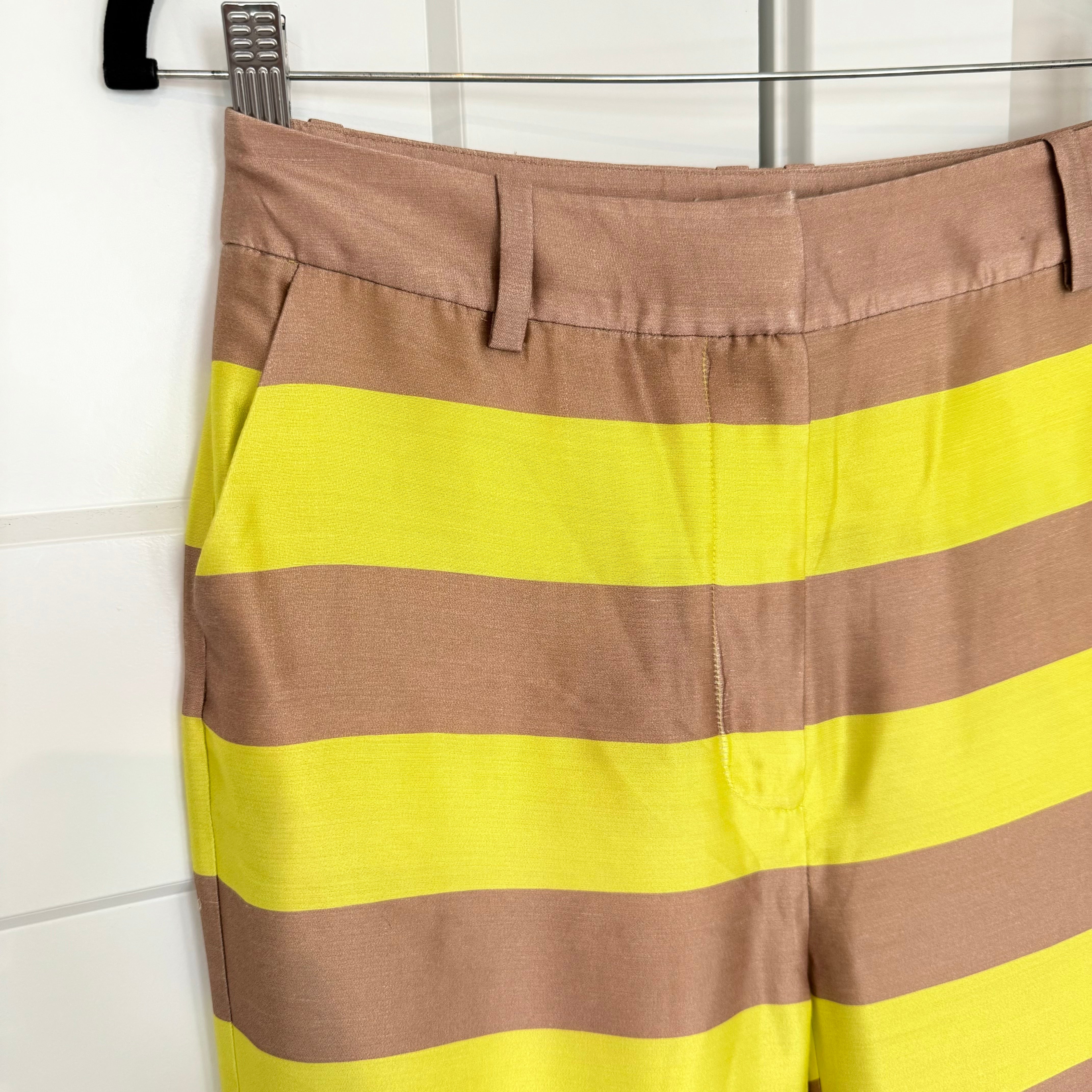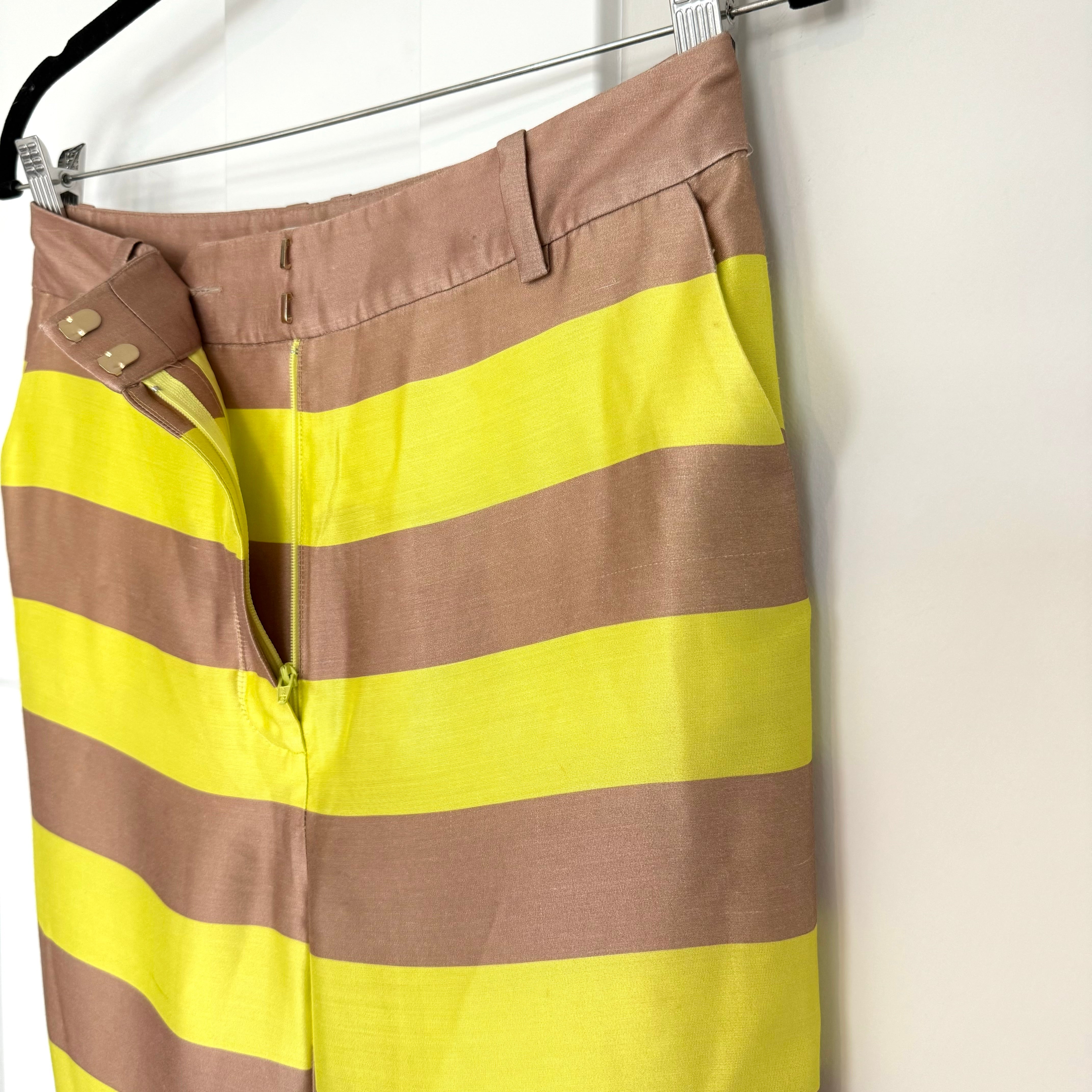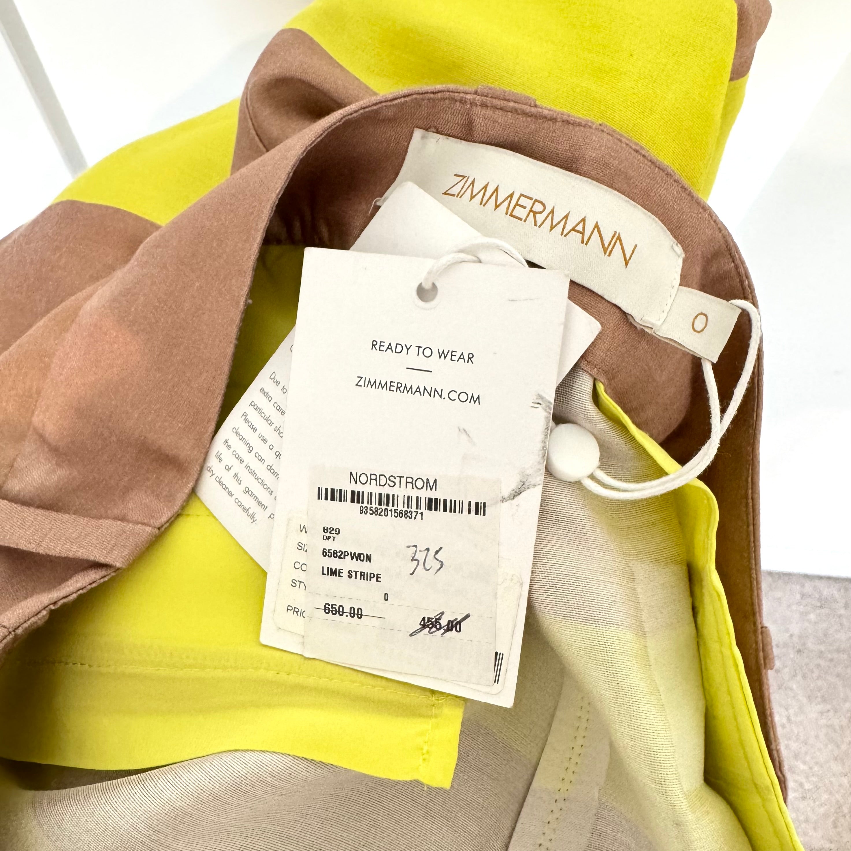 Zimmermann Silk Wonderland Stripe Lime Tan Wide Leg Crop Pants