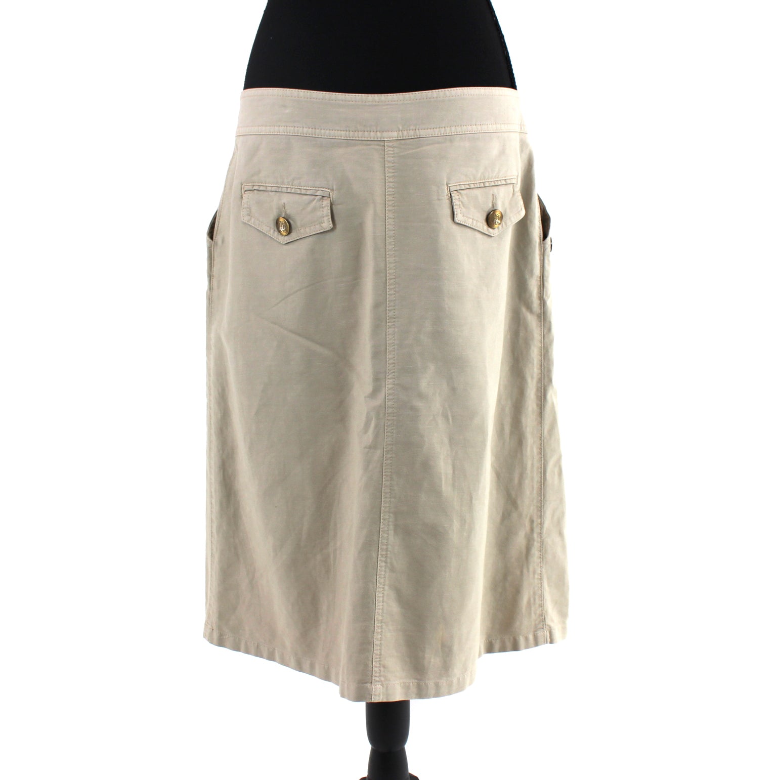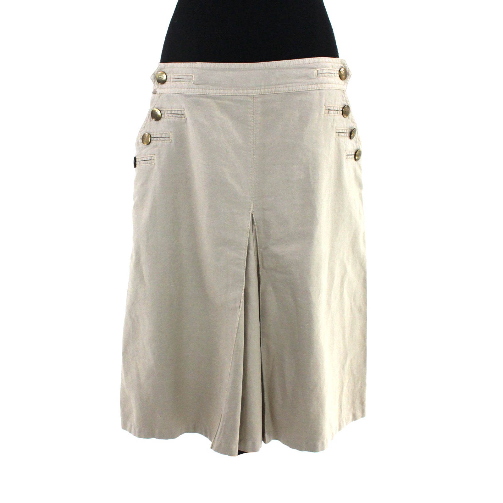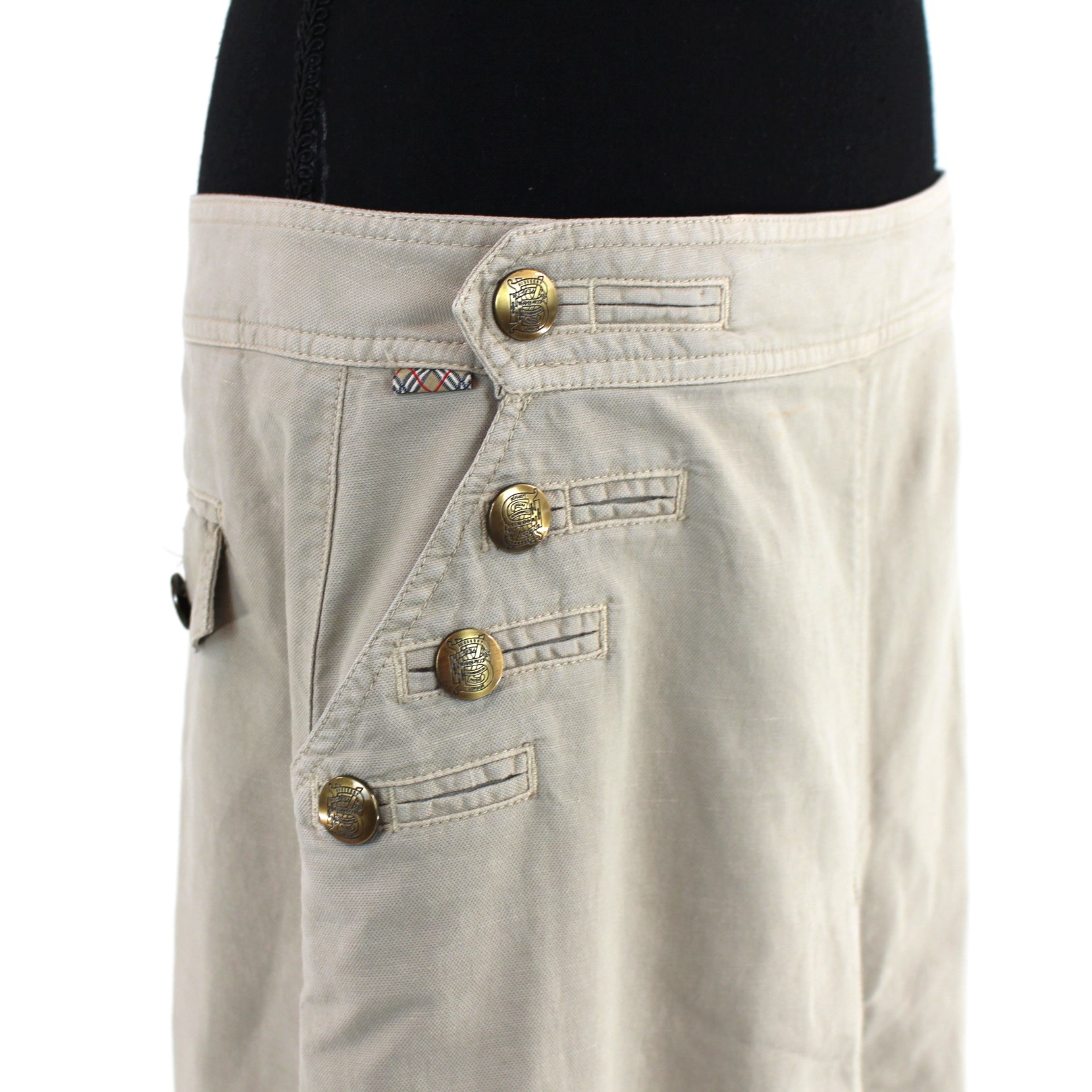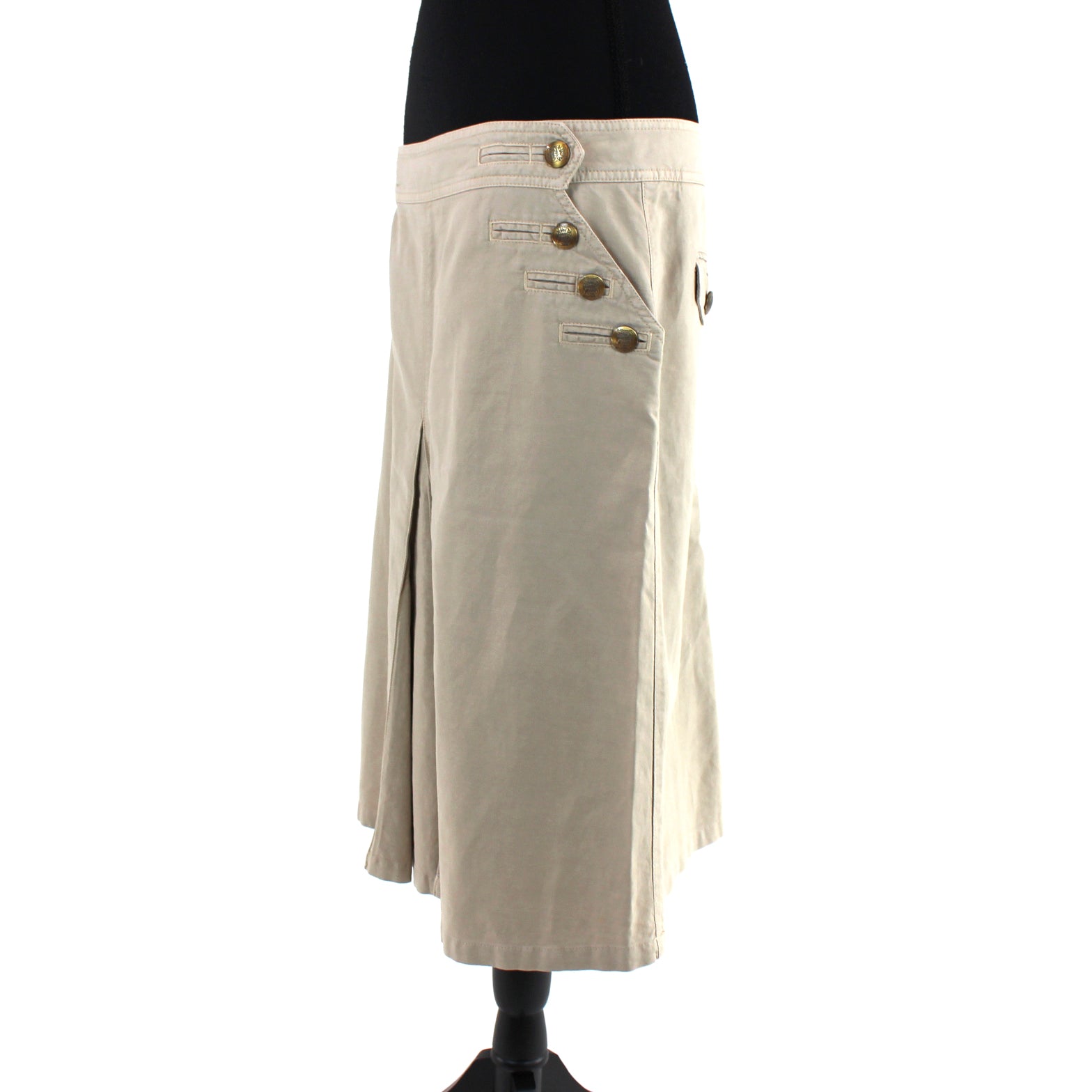 Burberry London A-Line Front Pleat Tan Sailor Button Flap Knee Length Skirt