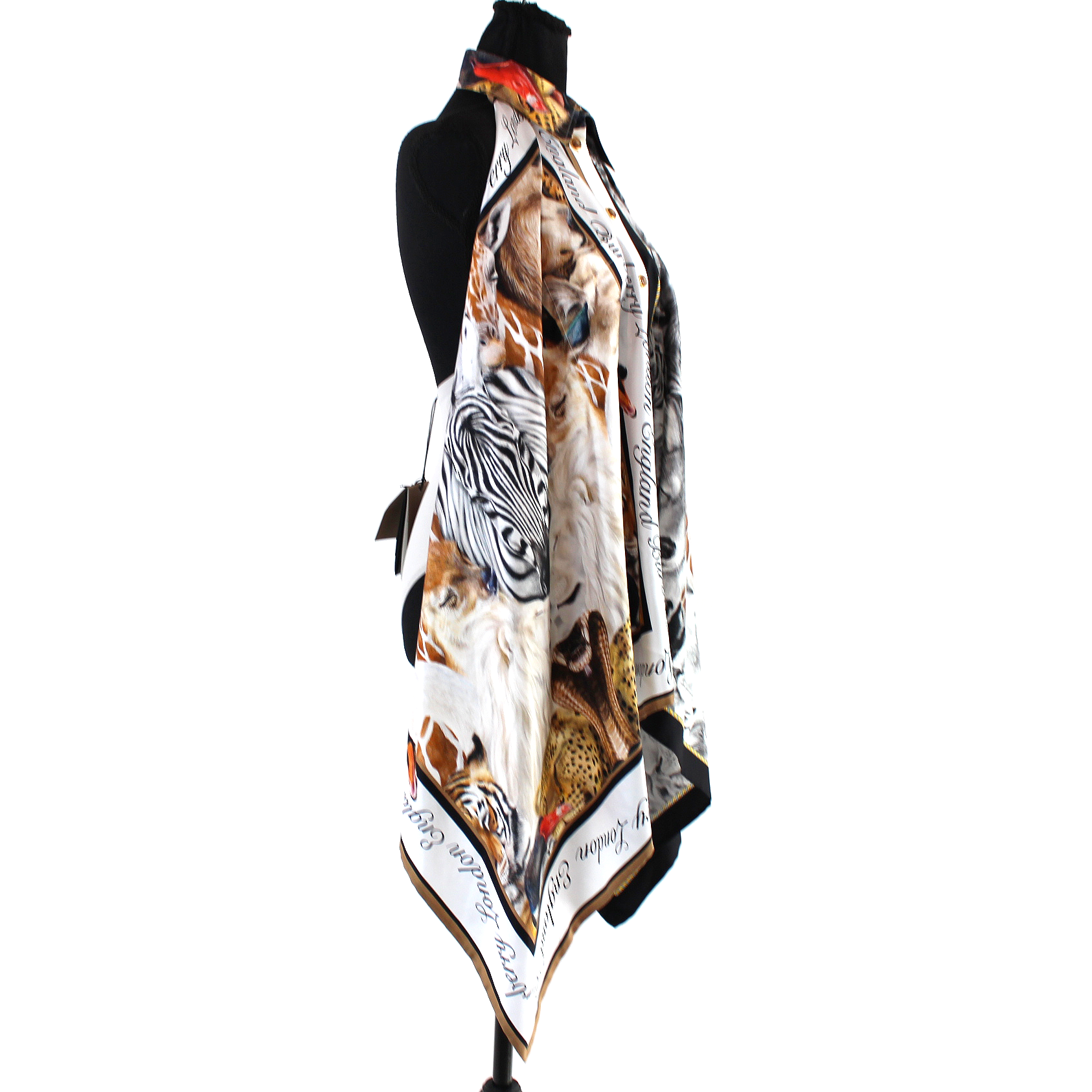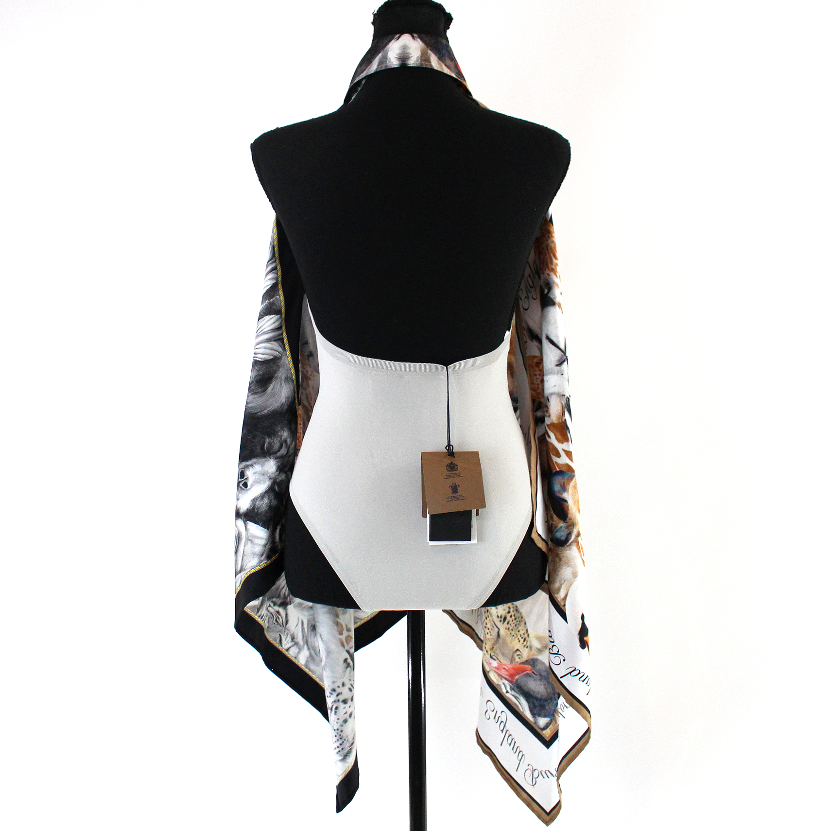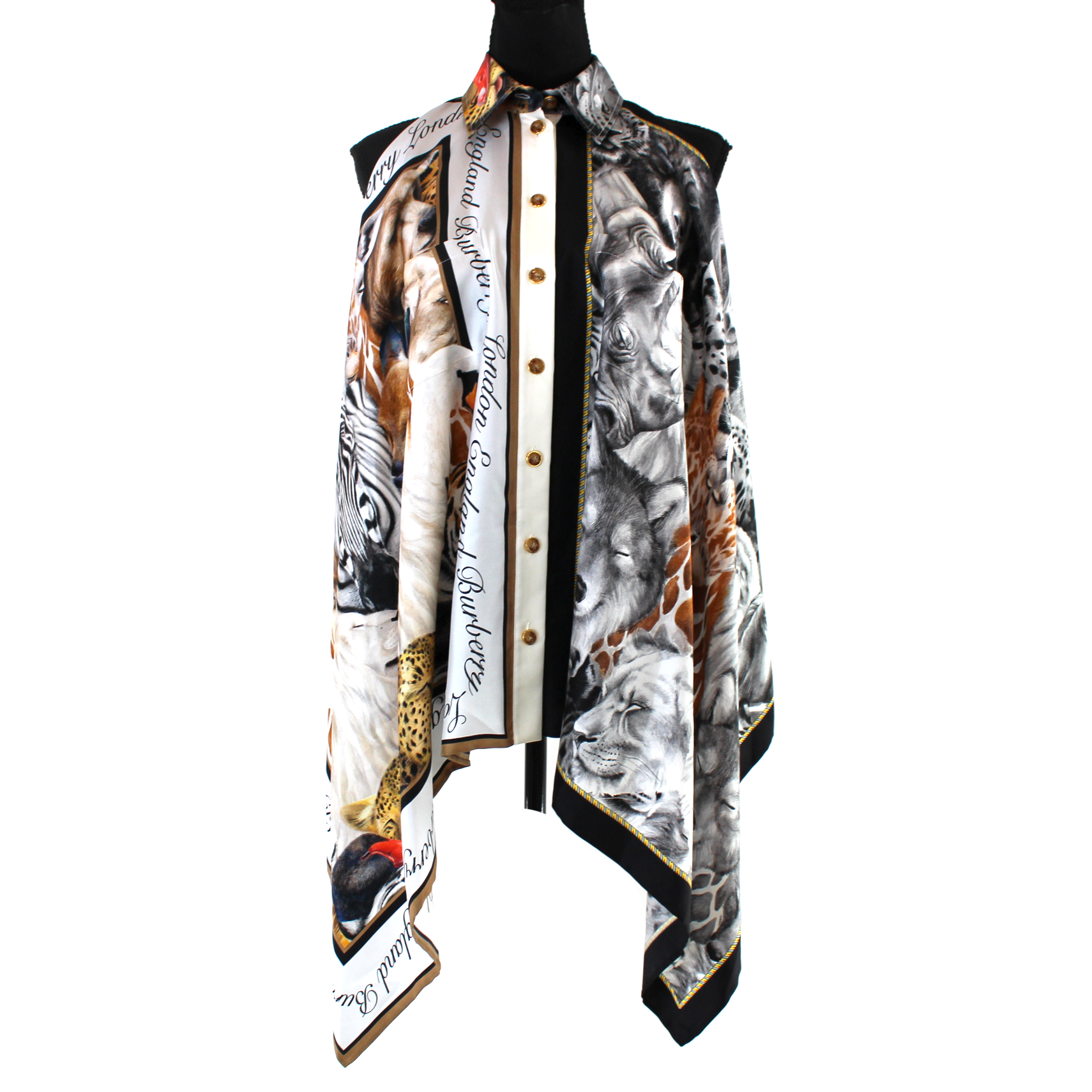 Burberry London Grey Melange Silk Animalia Print Bodysuit Top