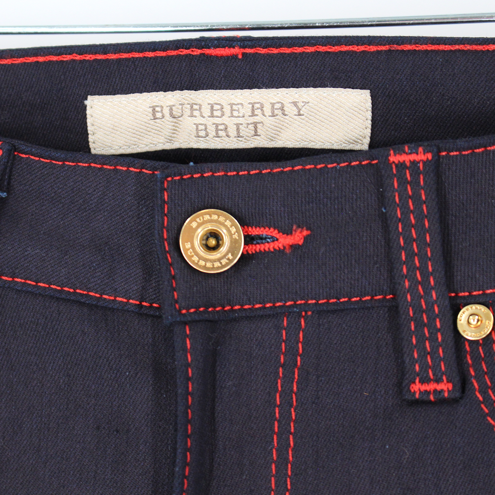 Burberry Brit Flare High Rise Red Stitch Trim Indigo Denim Jeans
