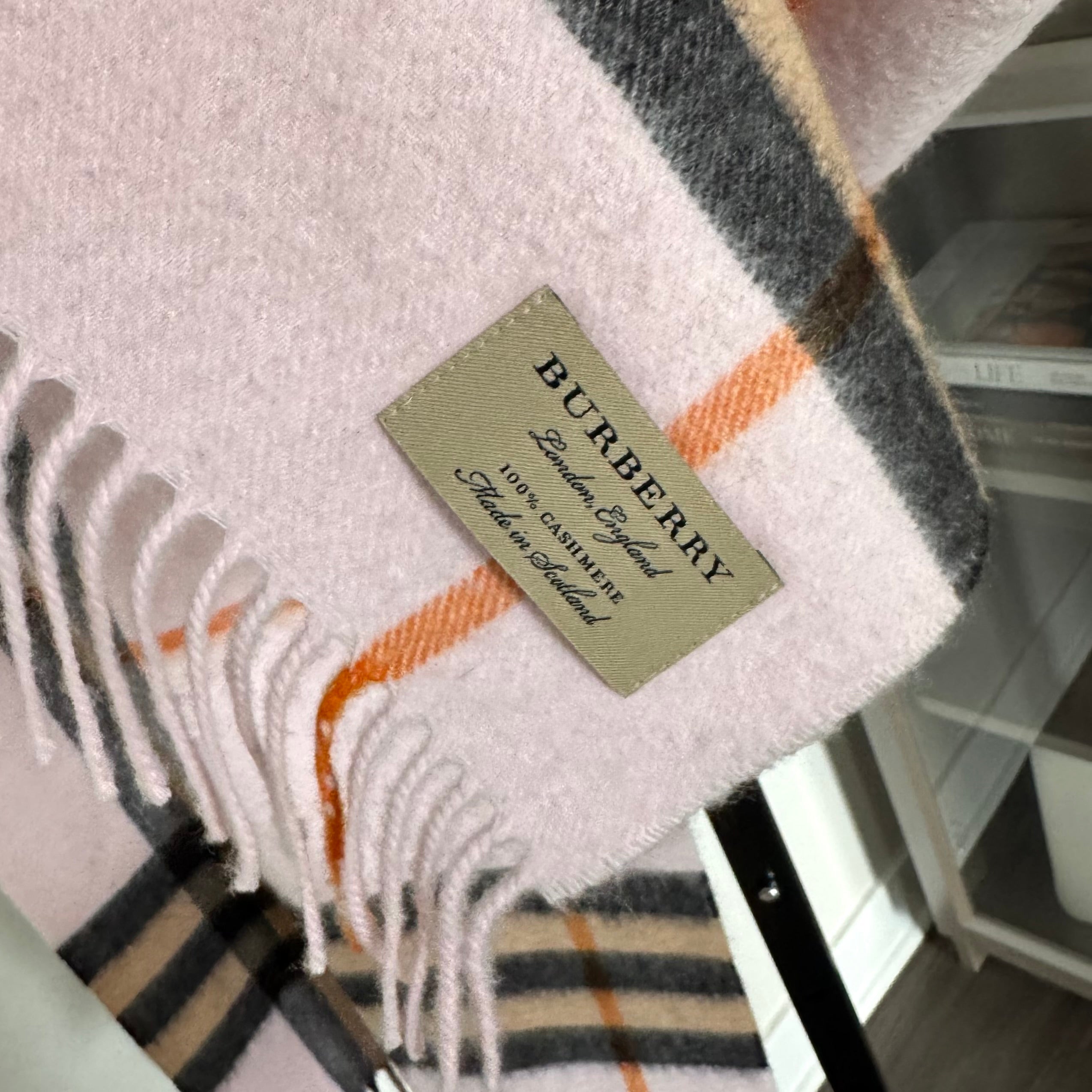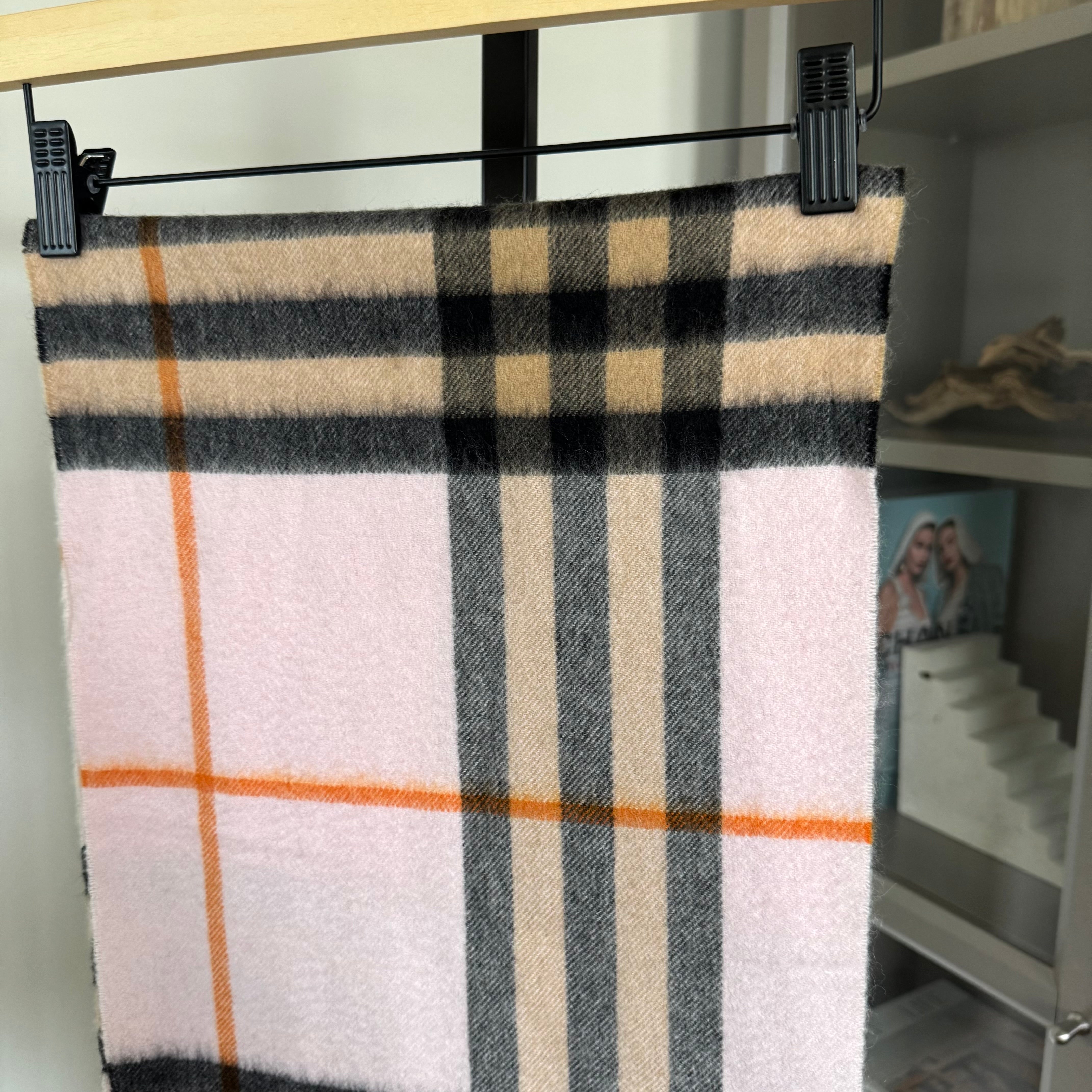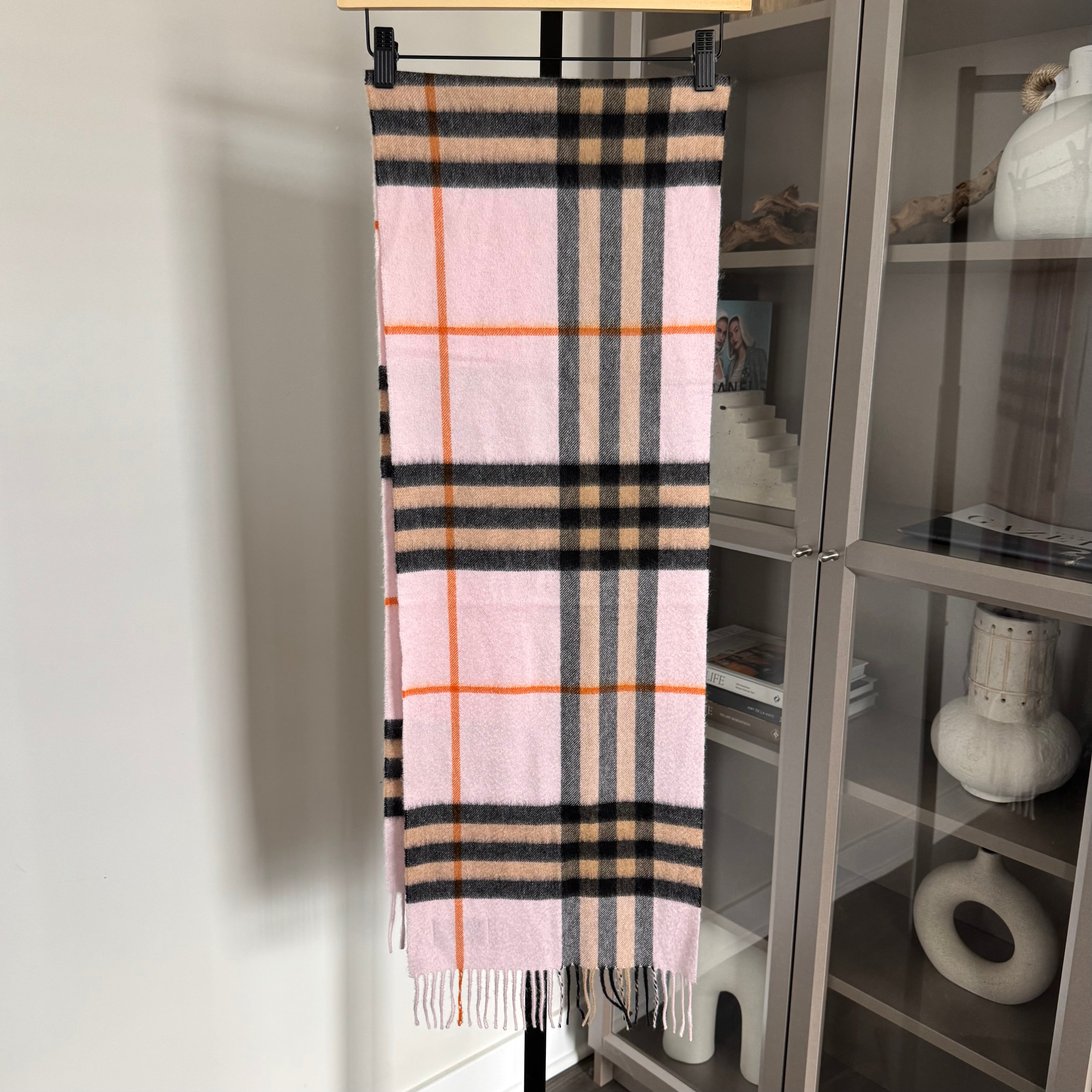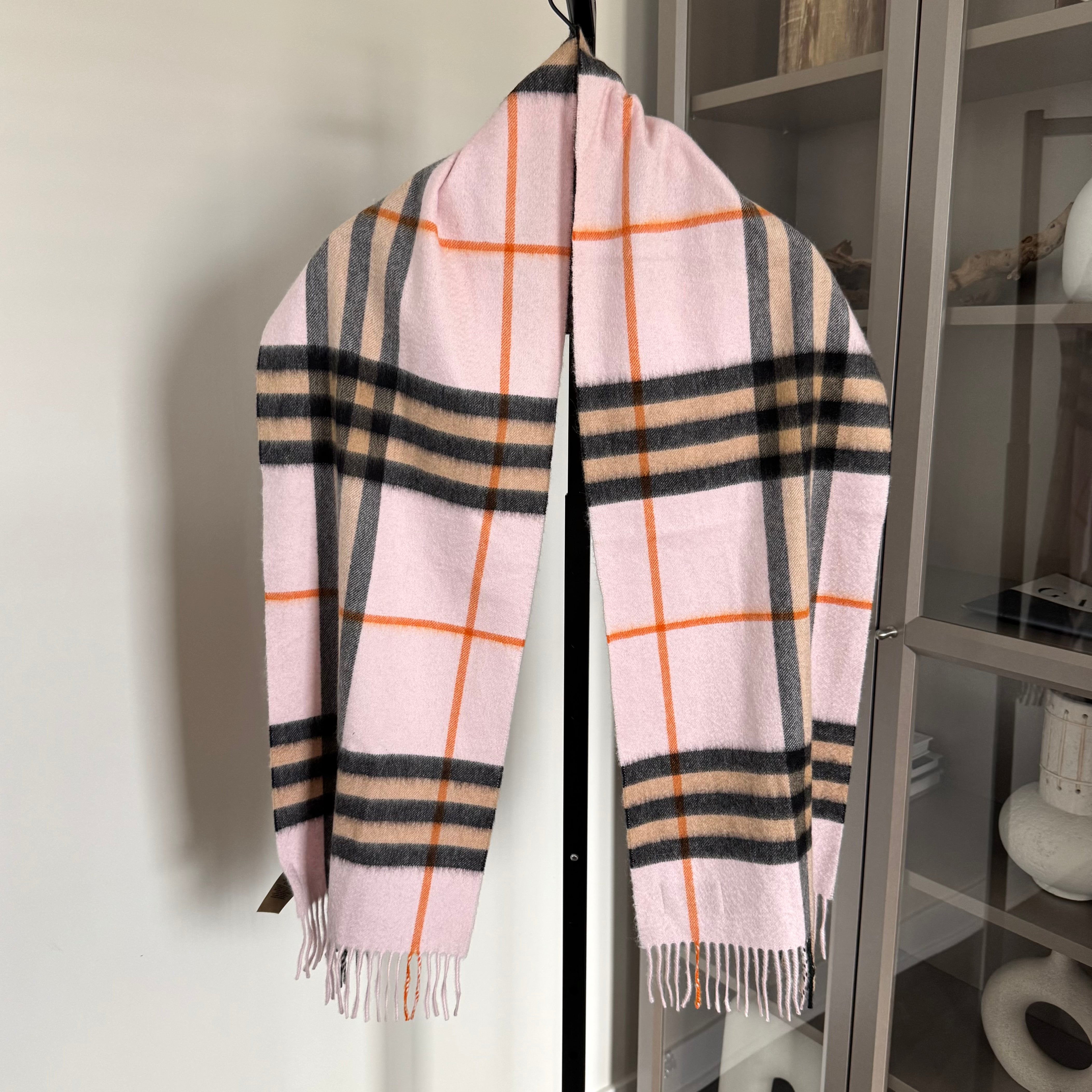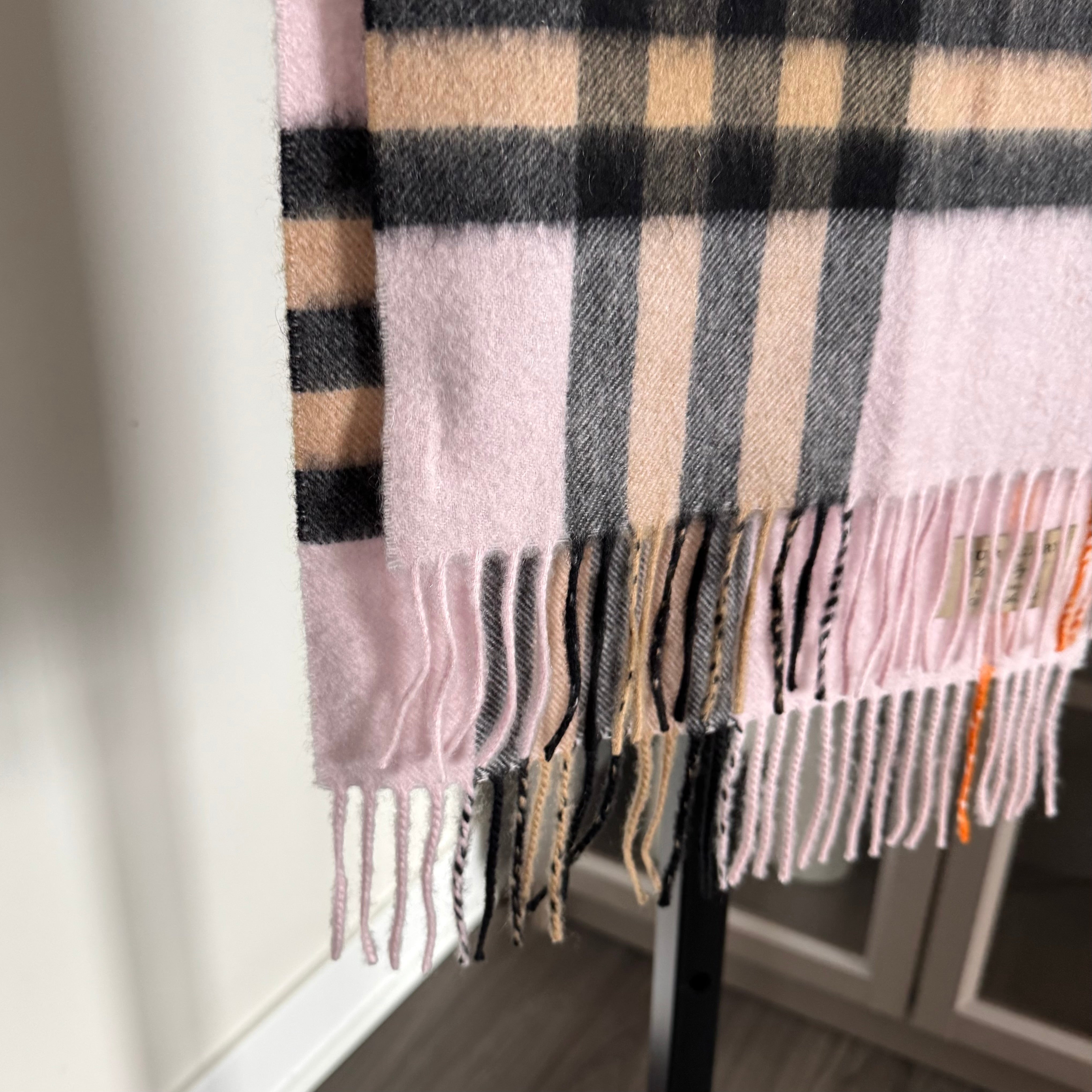 Burberry Cashmere Pink Nova Check Fringed Edge Trim Scarf