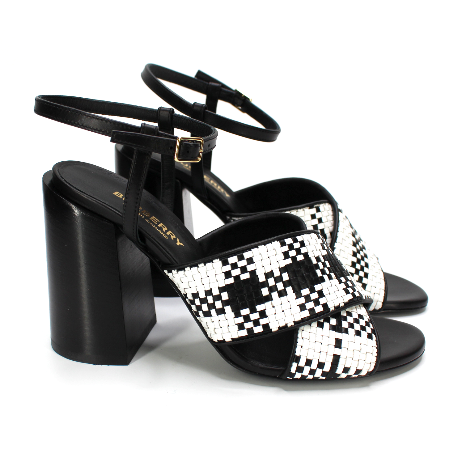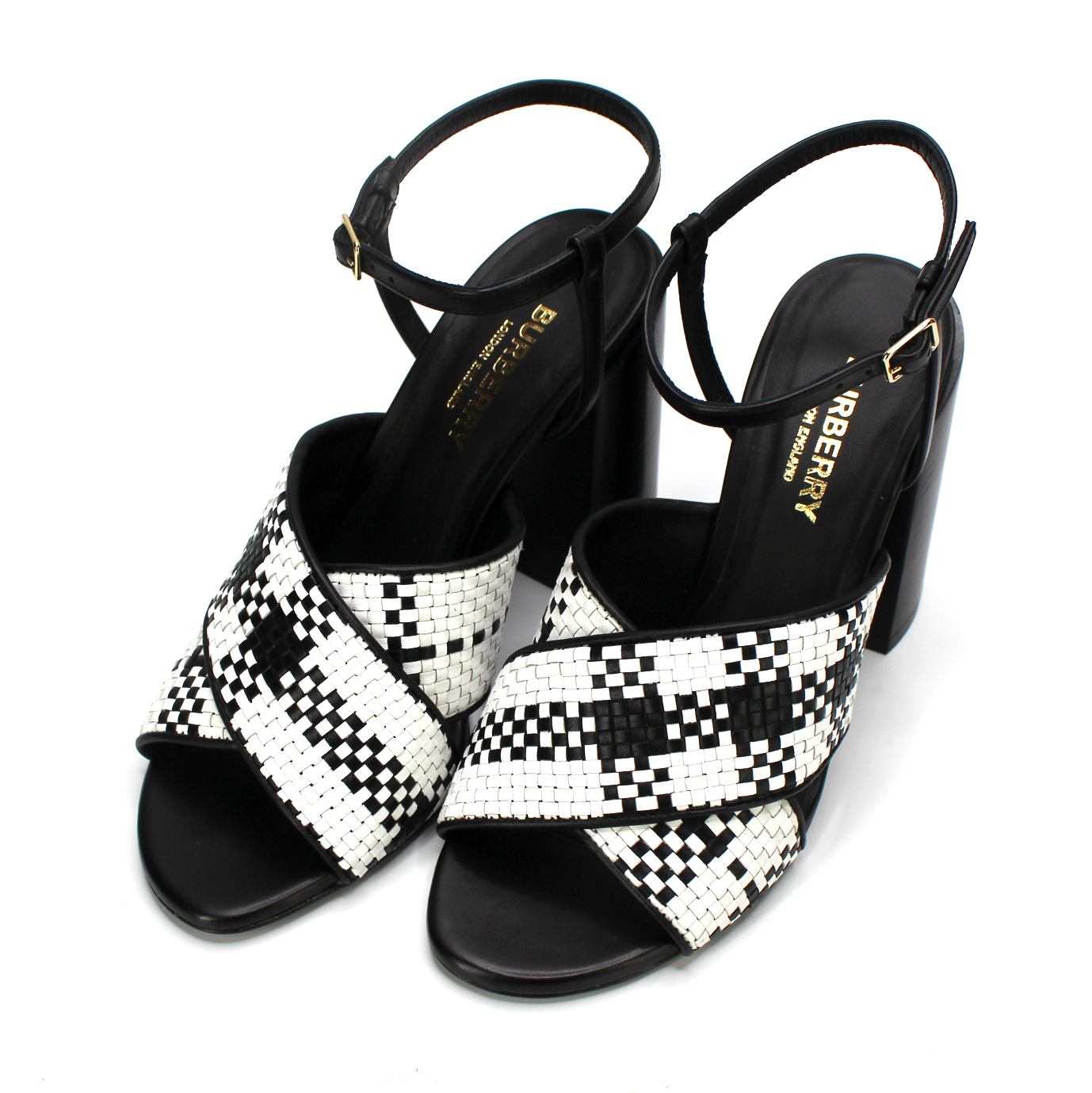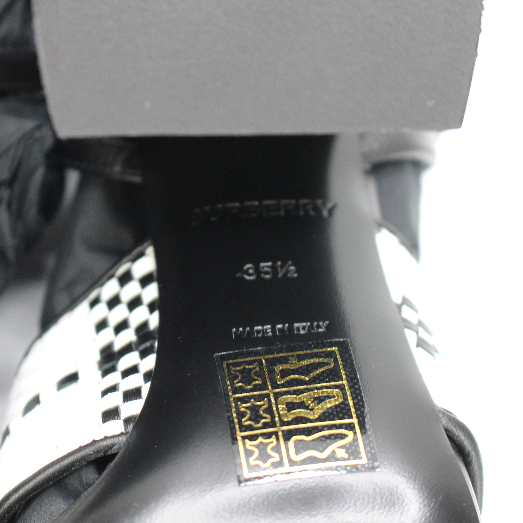 Burberry Castlebar Woven Nova Check Leather Black White Ankle Strap Sandals