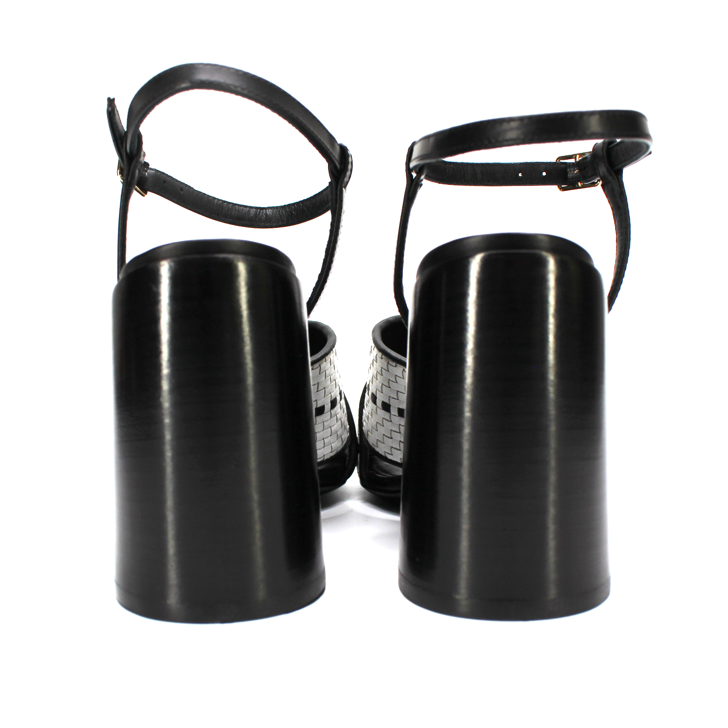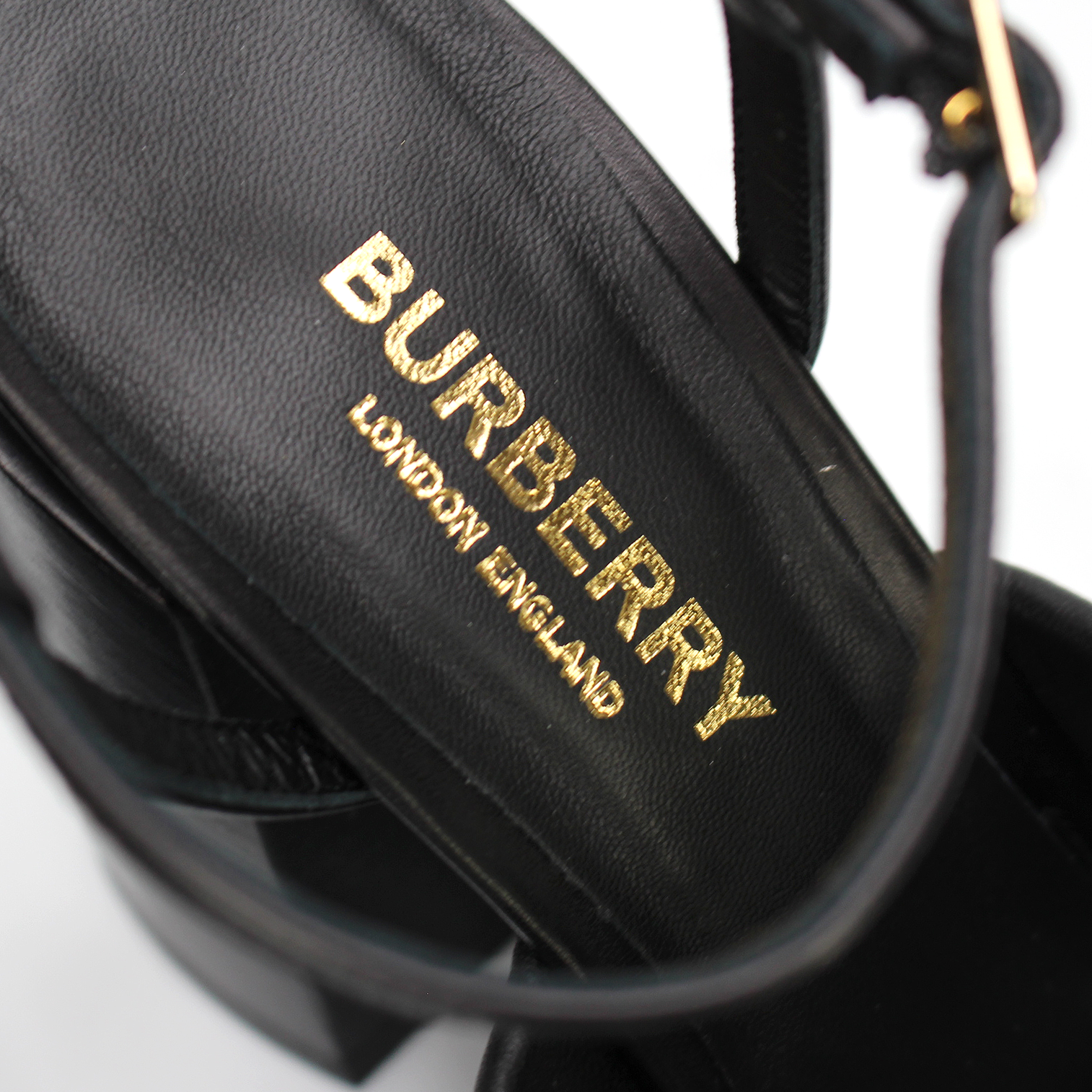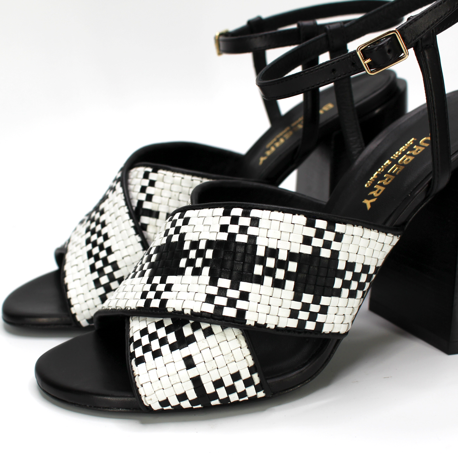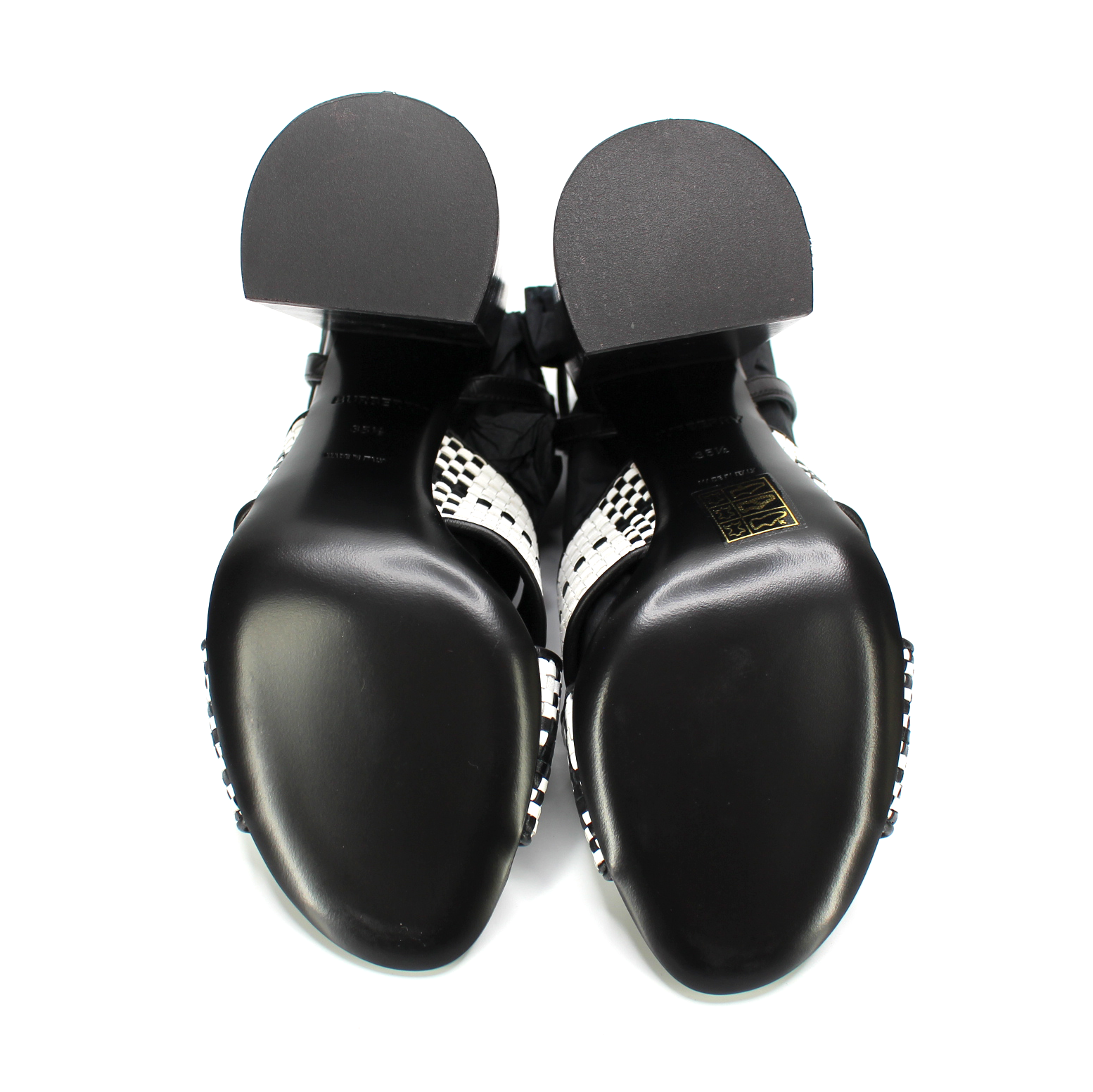 Burberry Castlebar Woven Nova Check Leather Black White Ankle Strap Sandals
