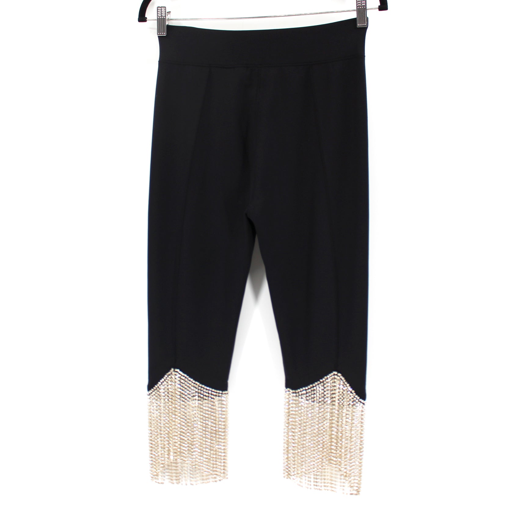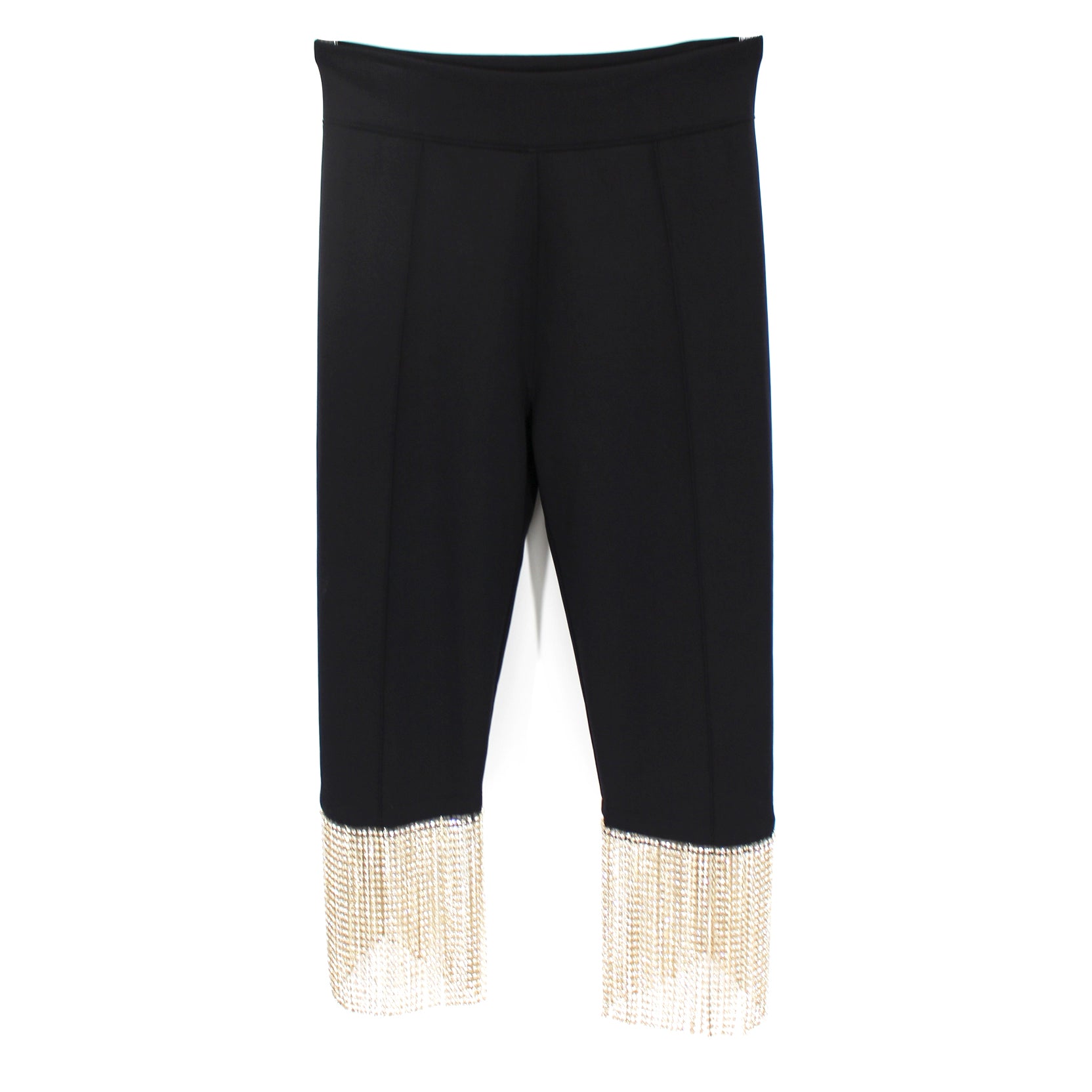 Burberry Charente Crystal Fringe Stretch Jersey Black Cropped Leggings Pants