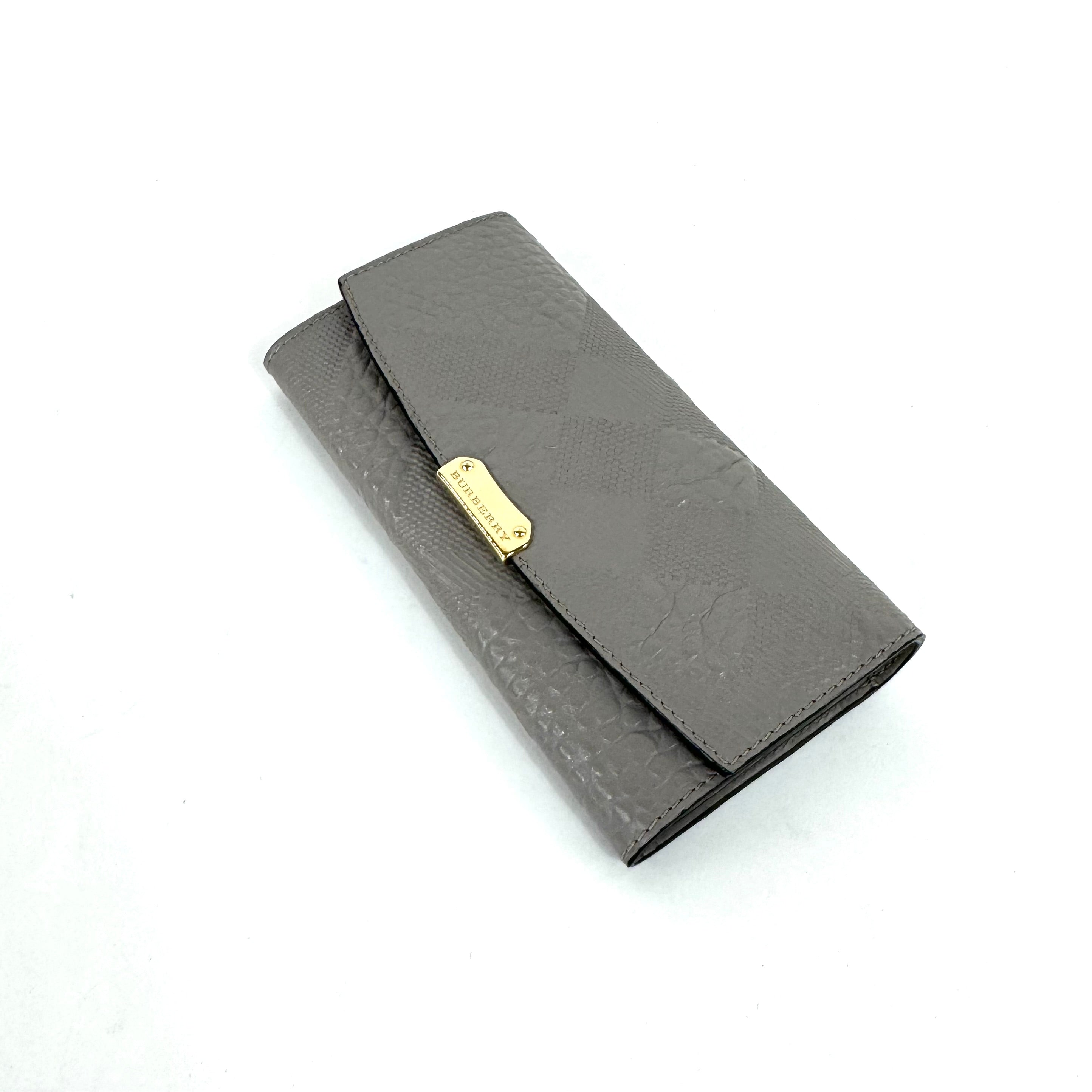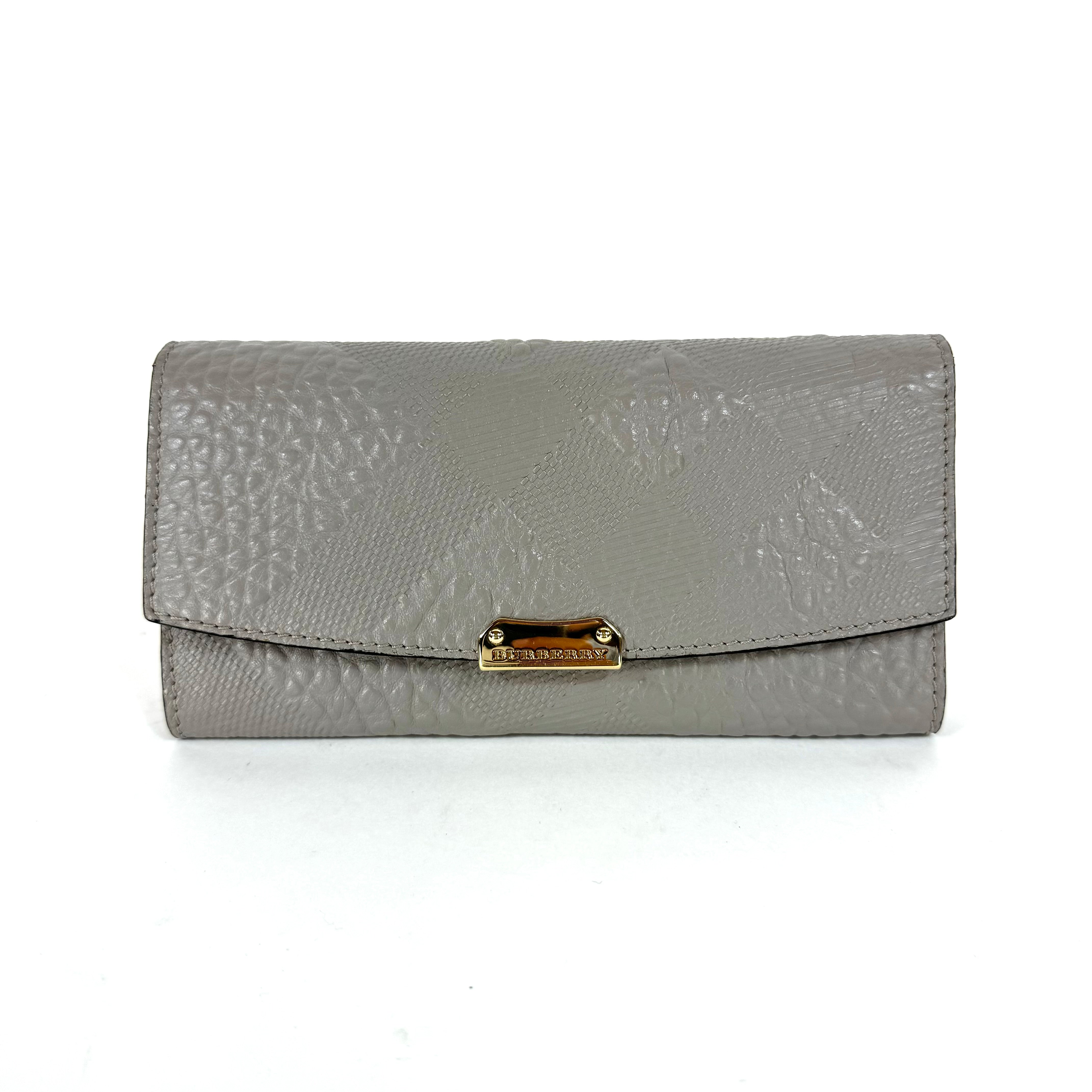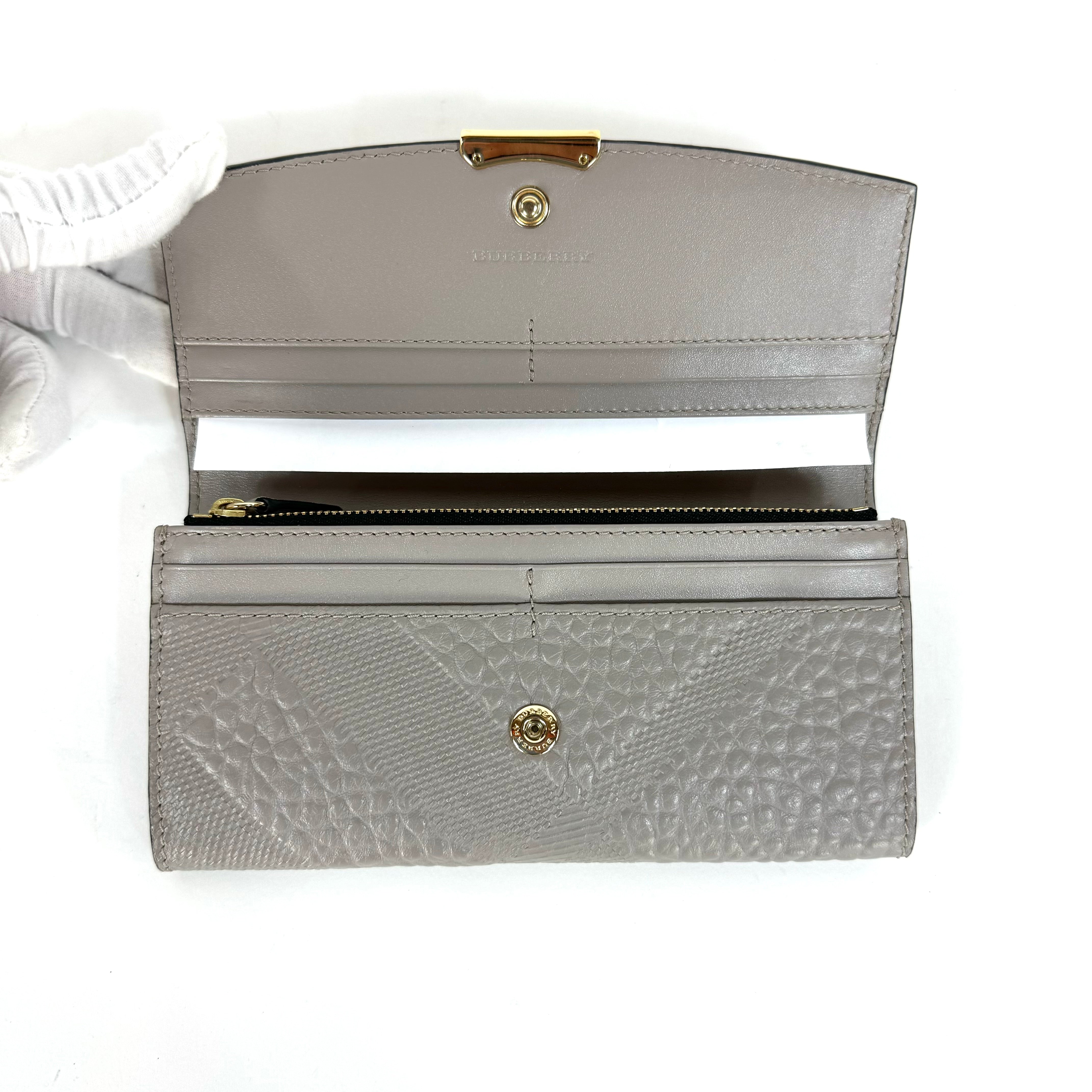 Burberry Embossed Signature Grain Porter Continental Pale Grey Wallet