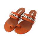 - Leather vamp strap with silver chain detail