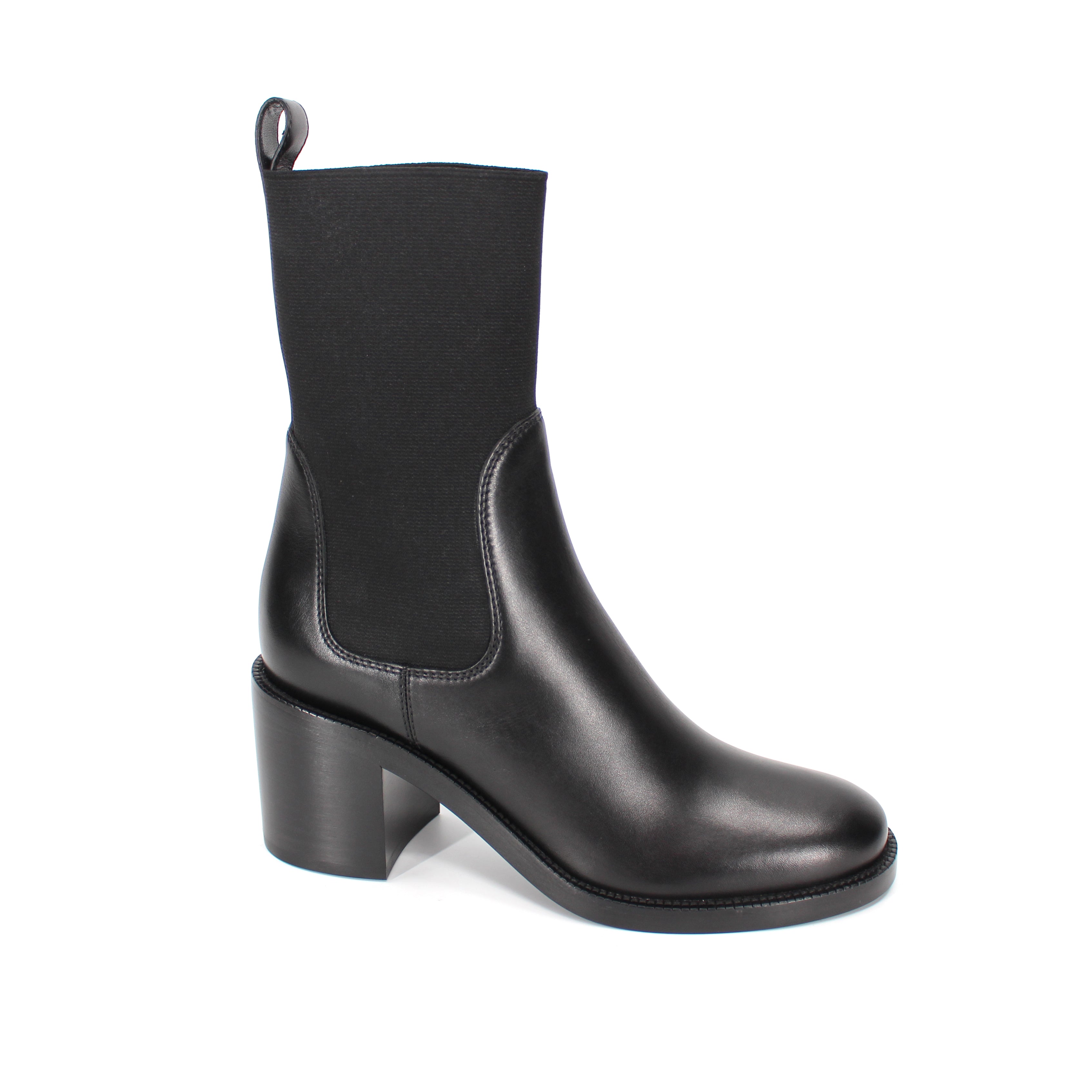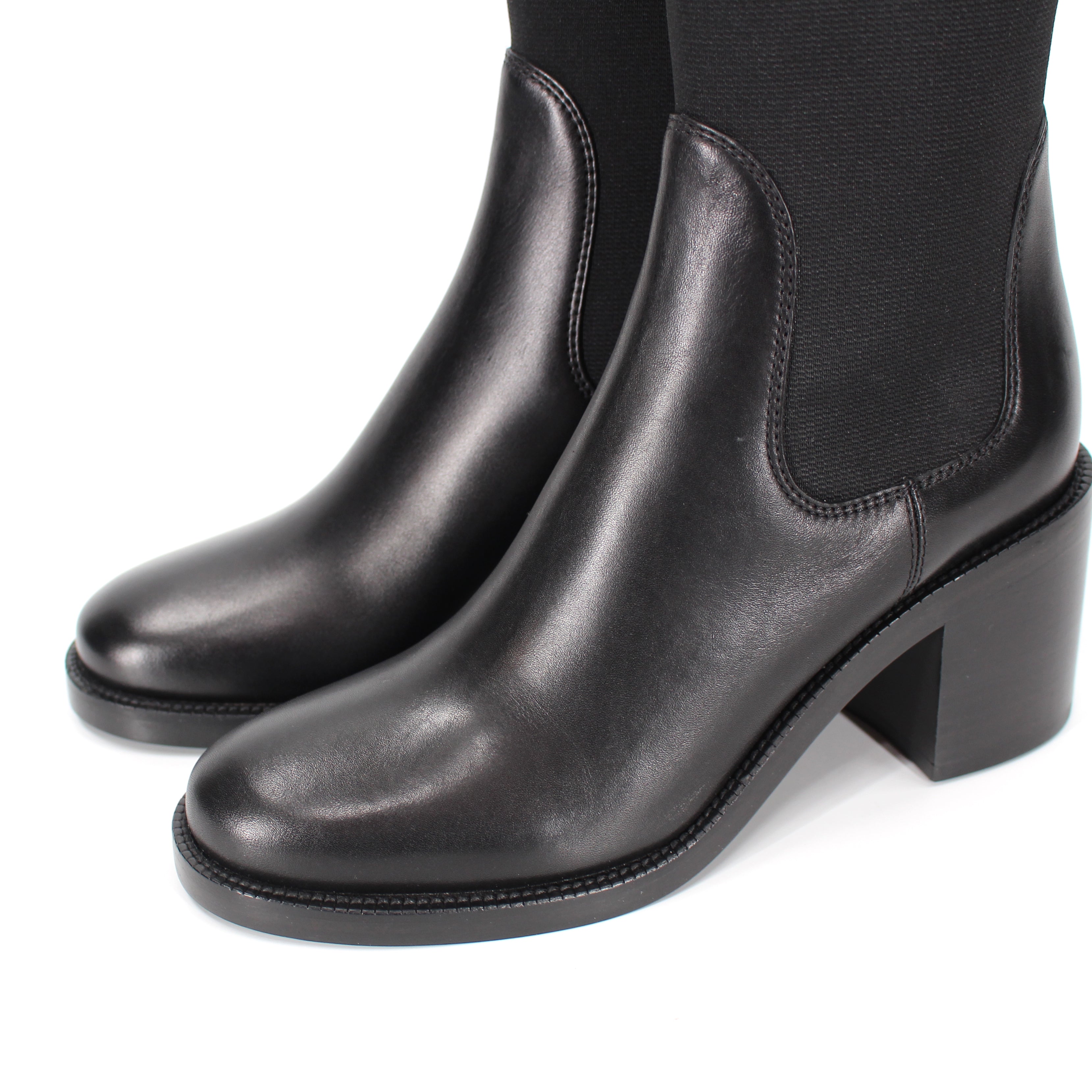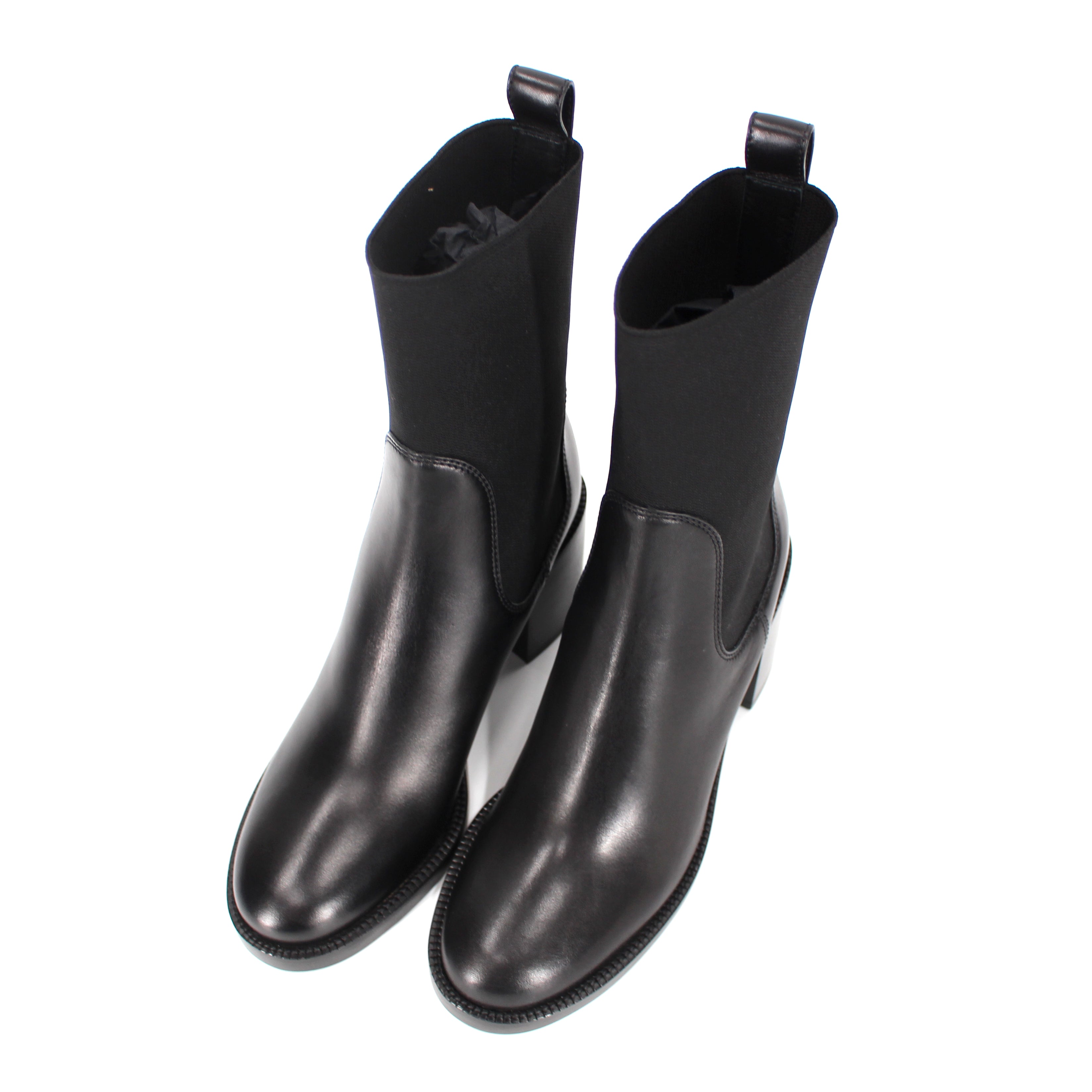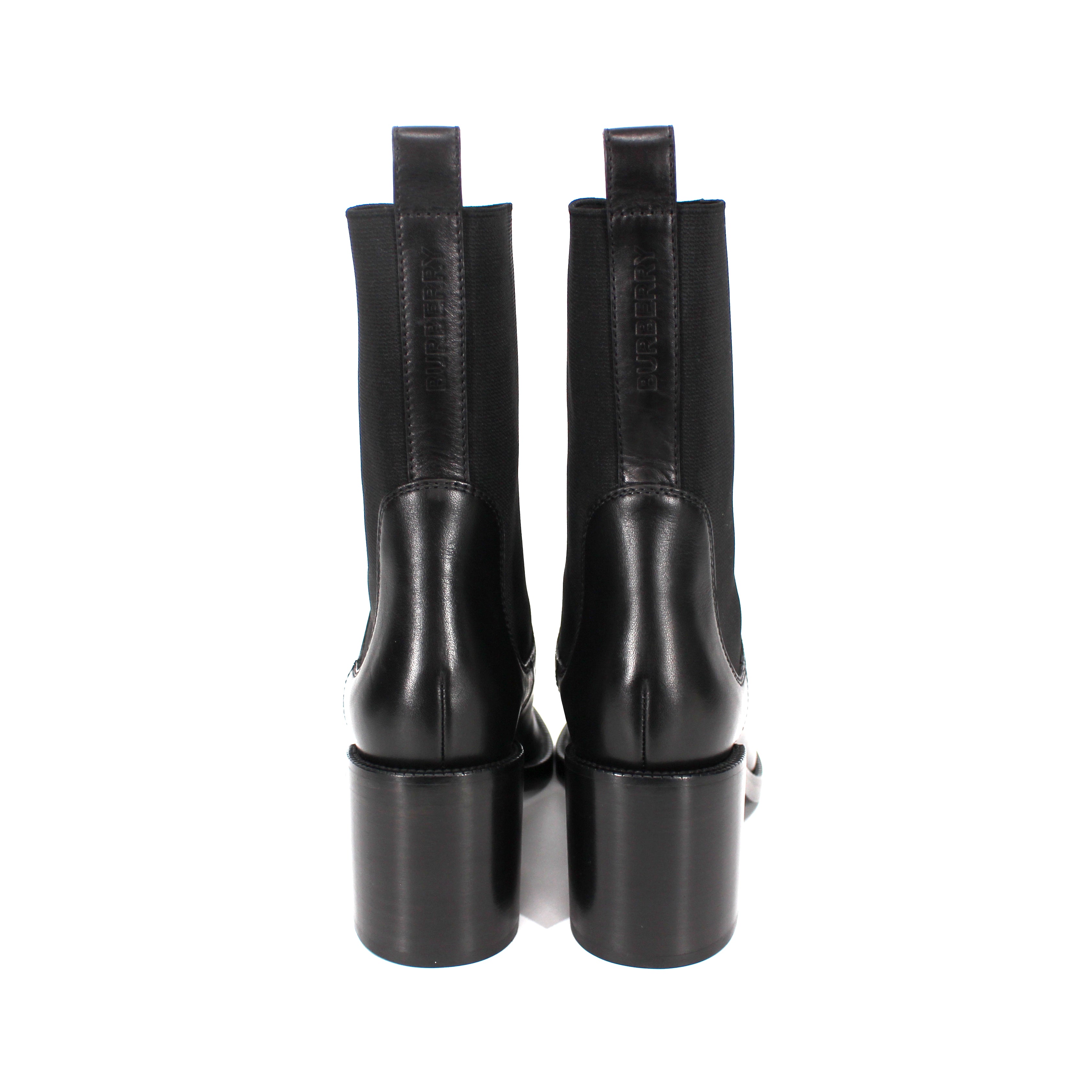 Burberry Lynton Chelsea Black Leather Stretch Fabric Mid Calf Booties