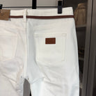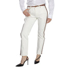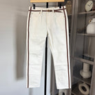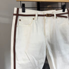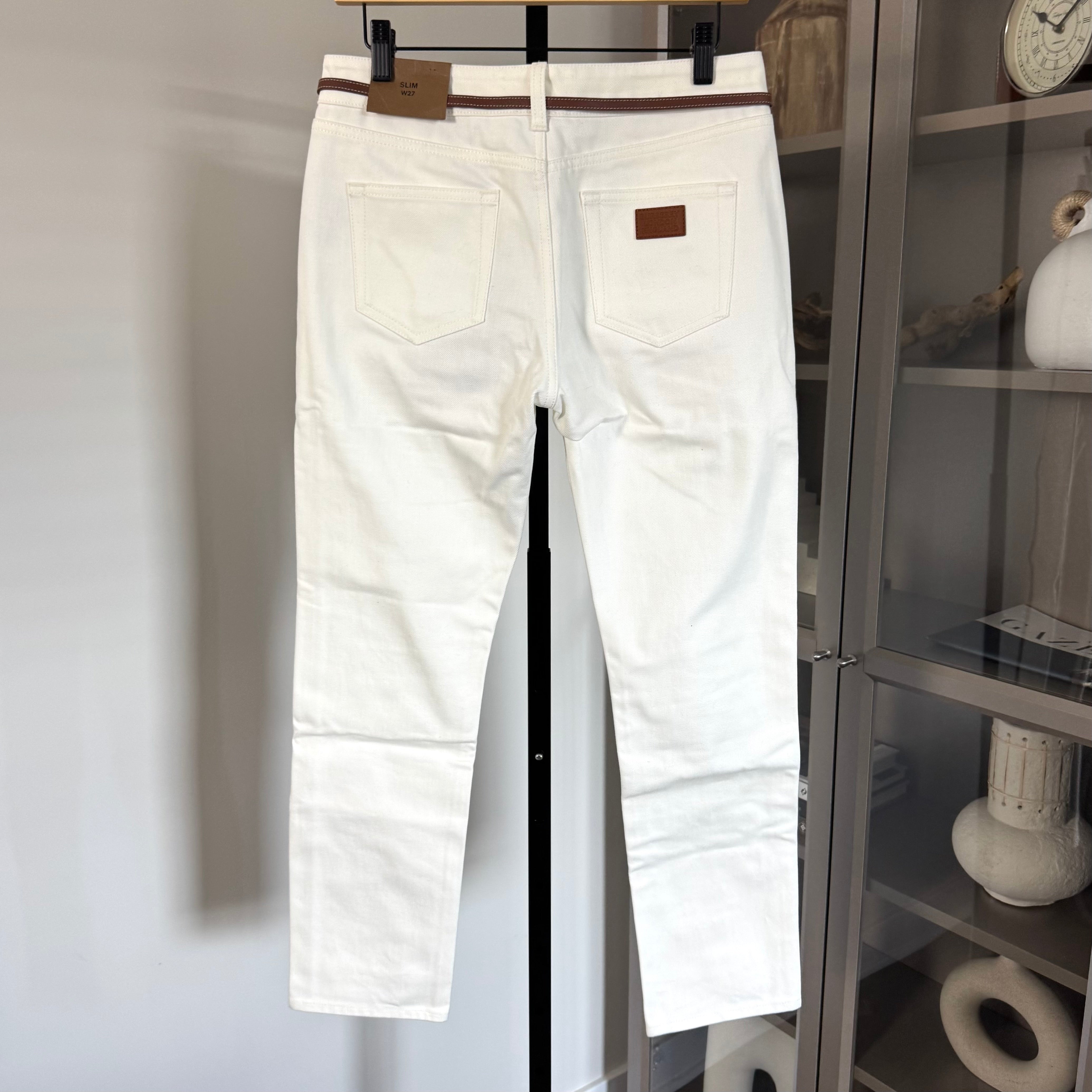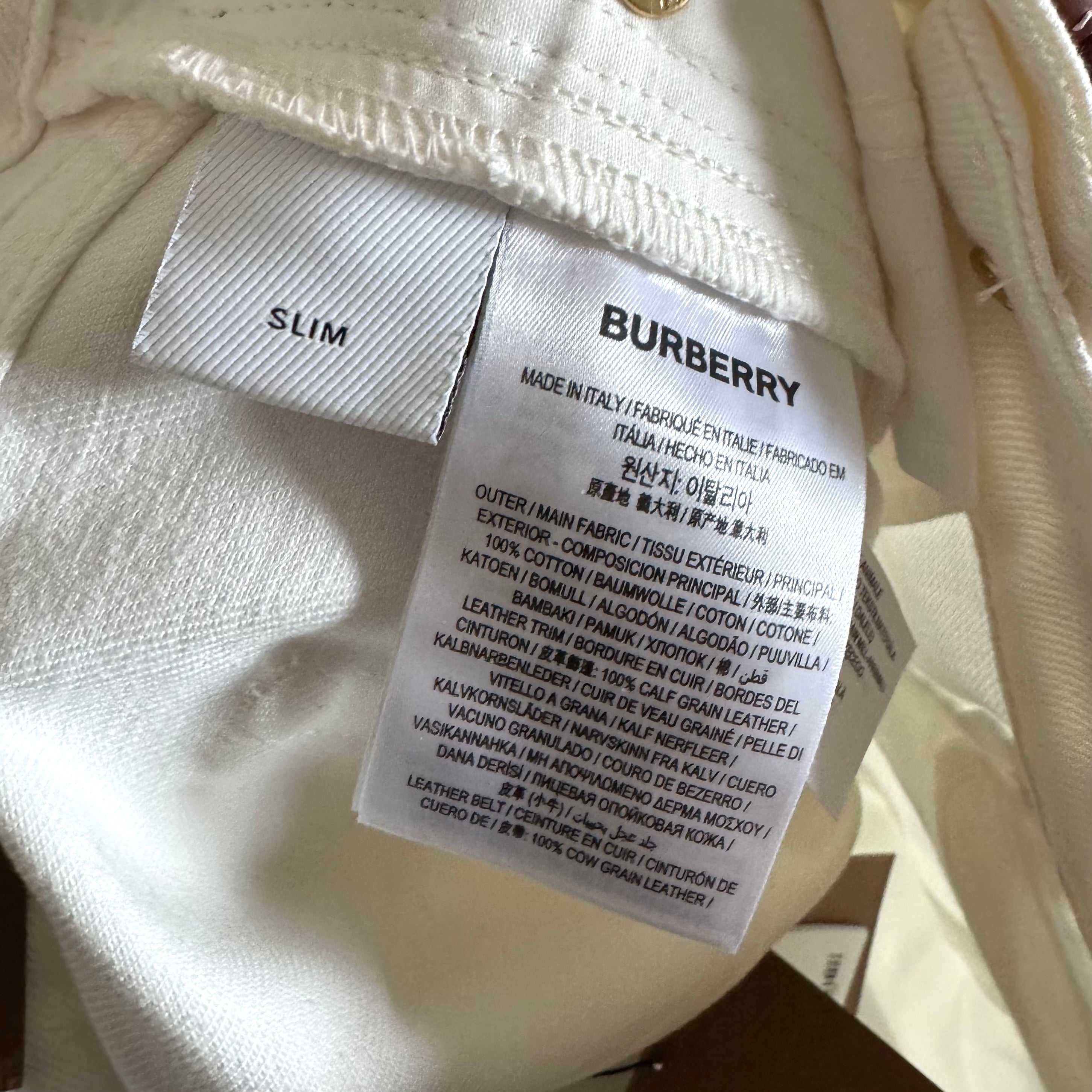 Burberry London Off White Brown Leather Harness Trim Belted Slim Jeans