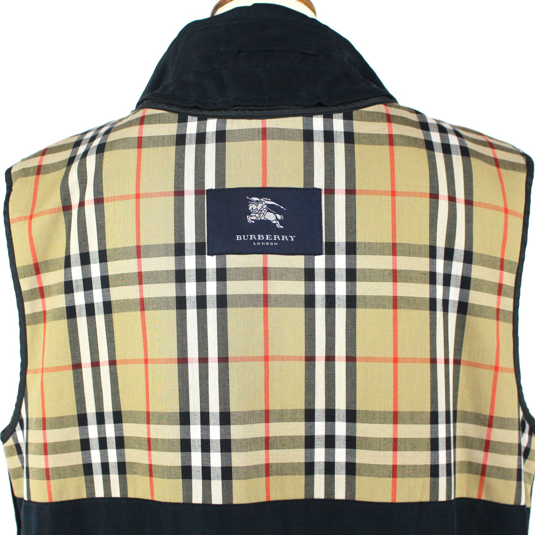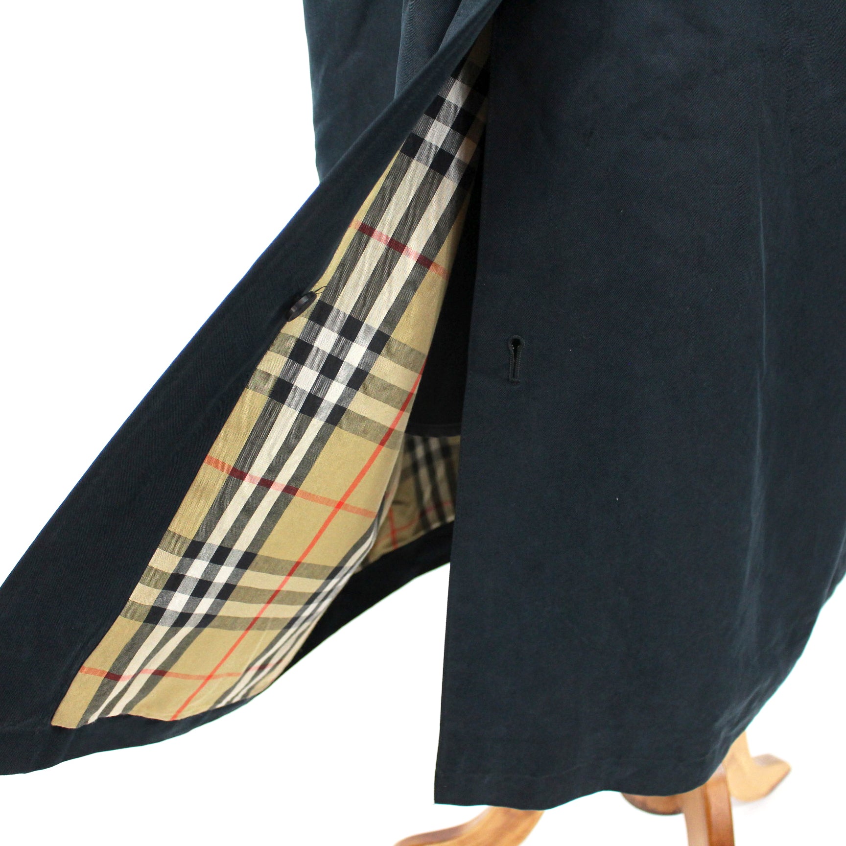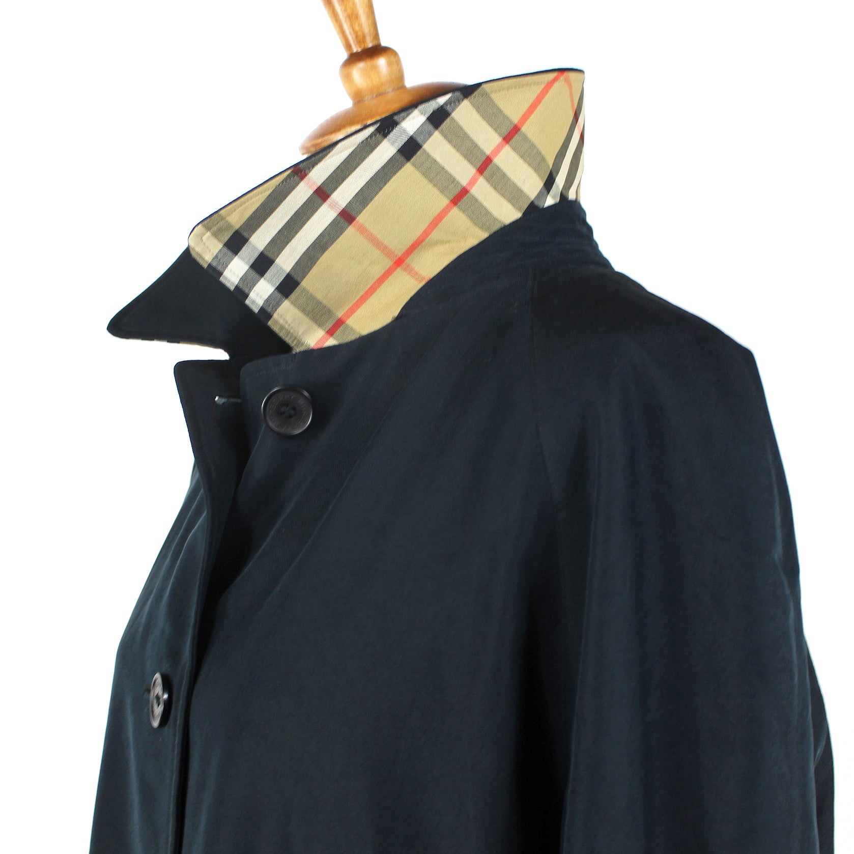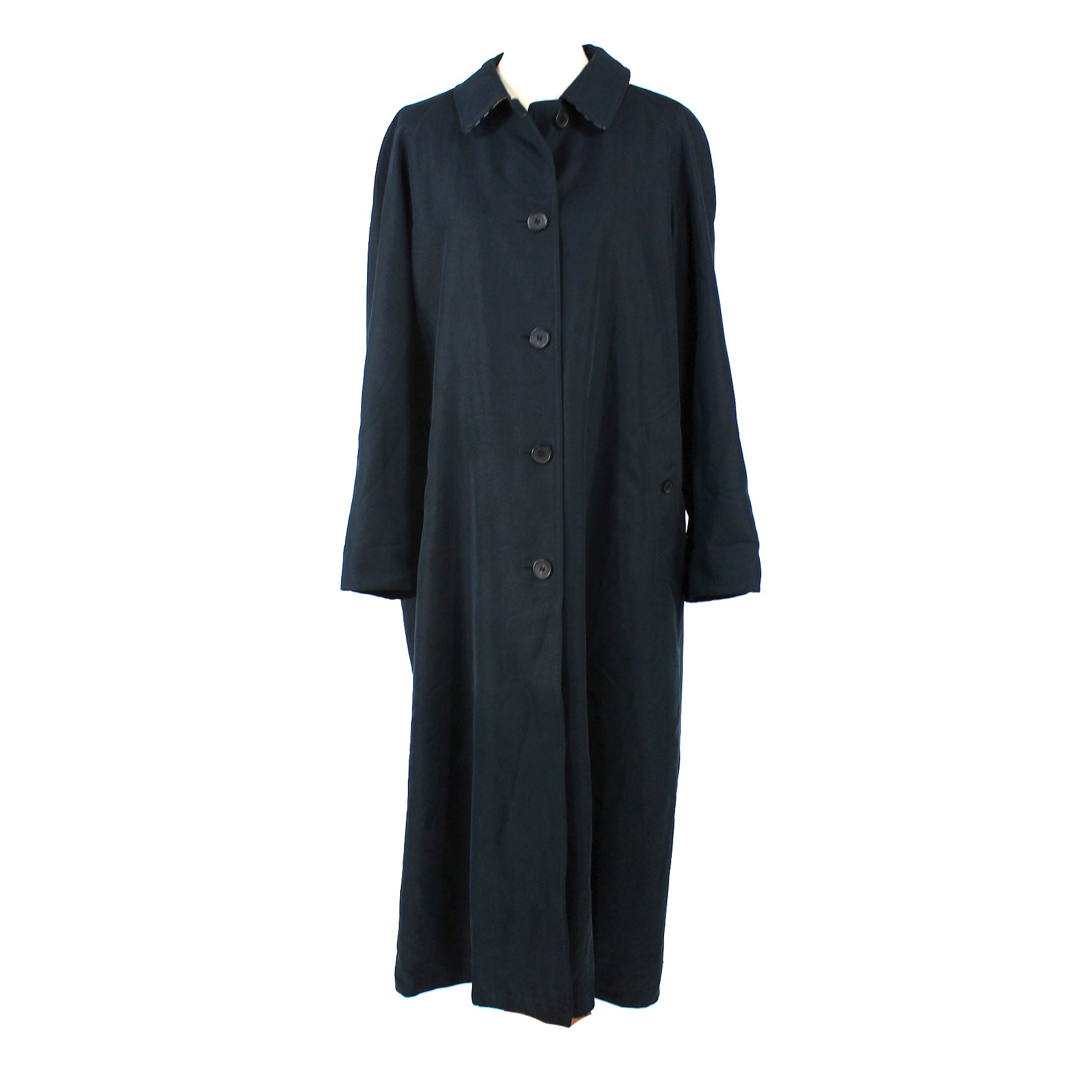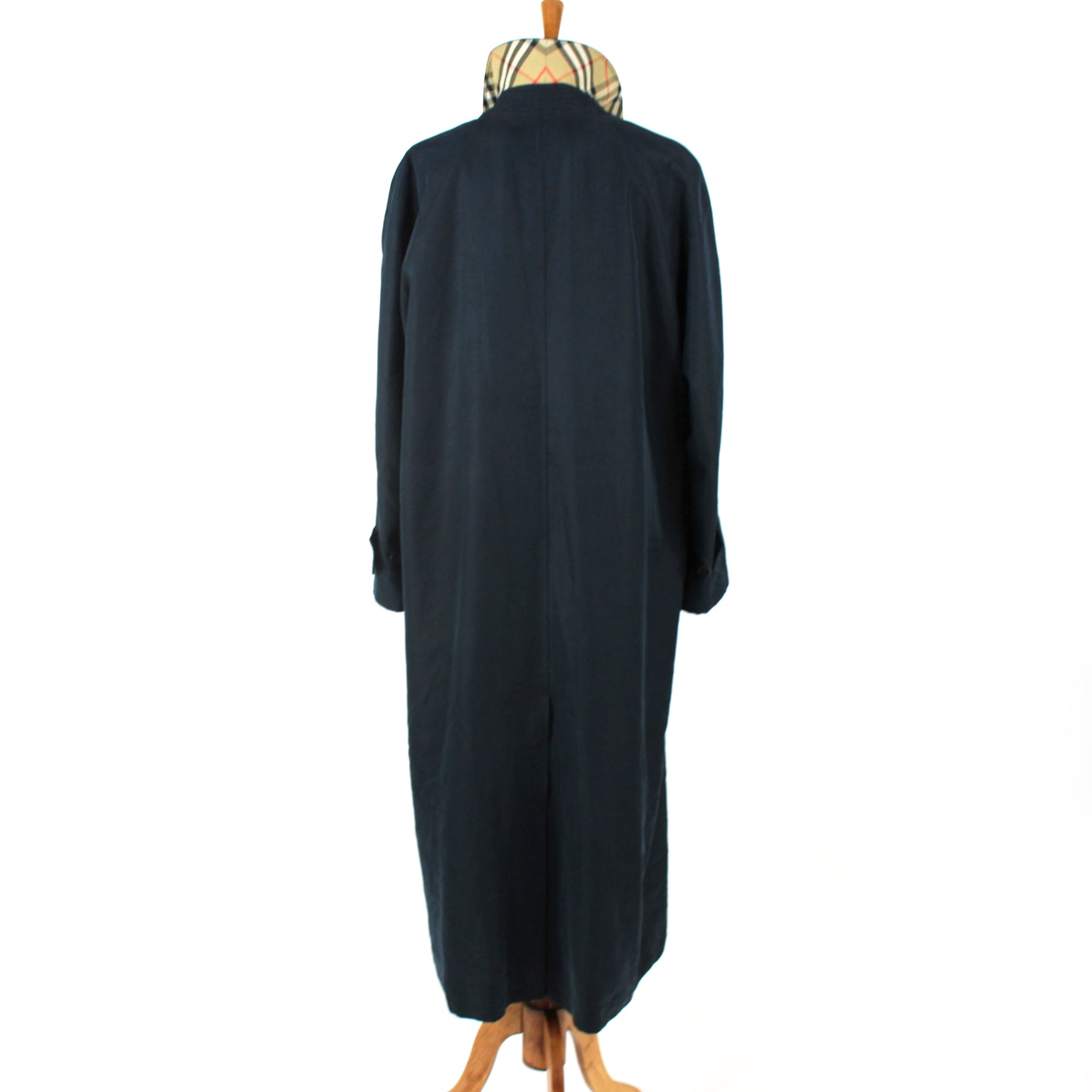 Burberry Navy Button Front Nova Check Wool Lined Maxi Coat