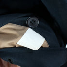 - Back center hemline vent with button closure