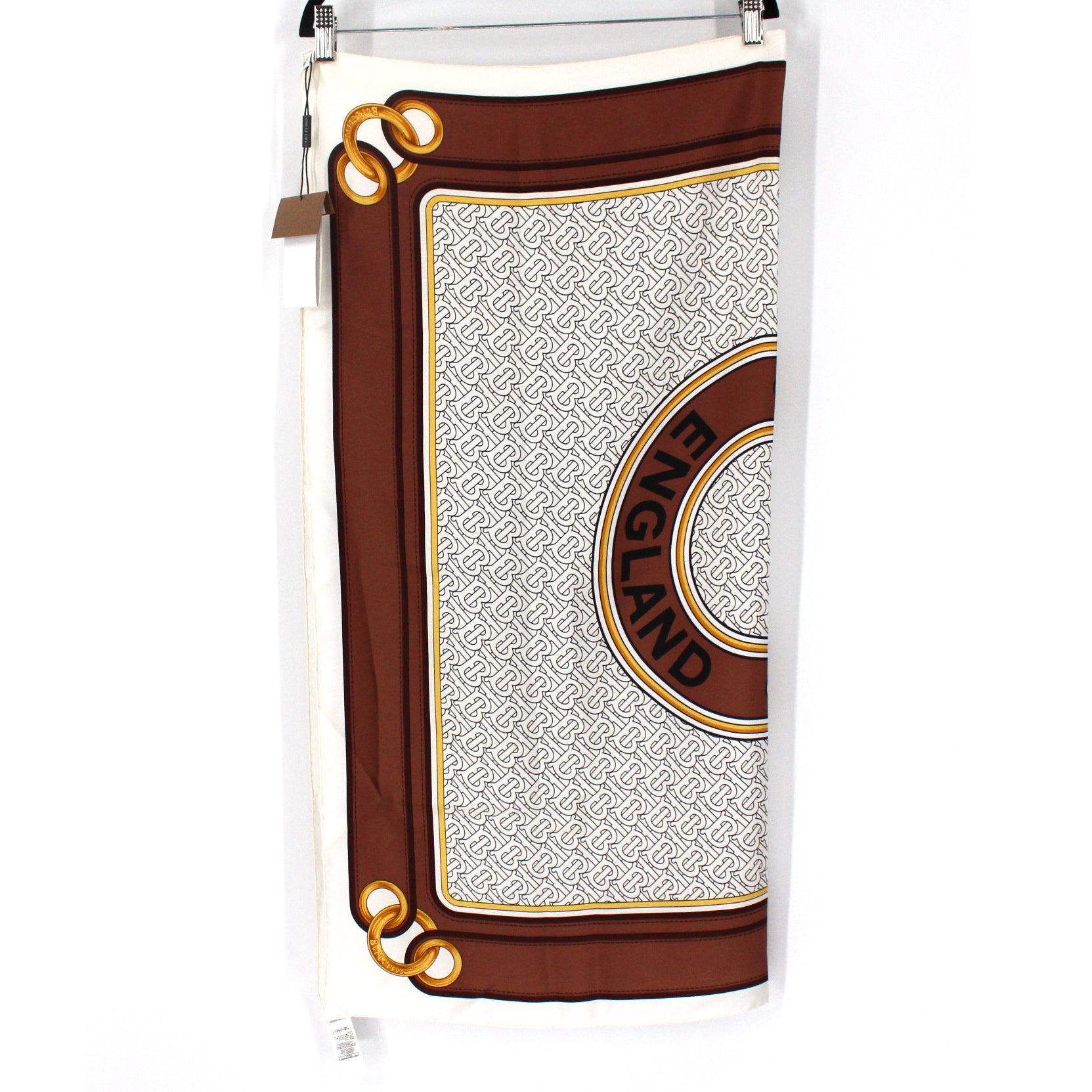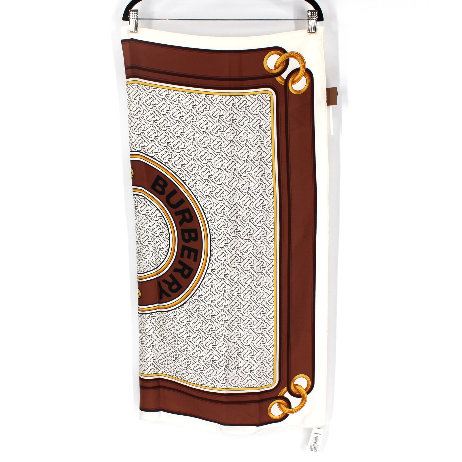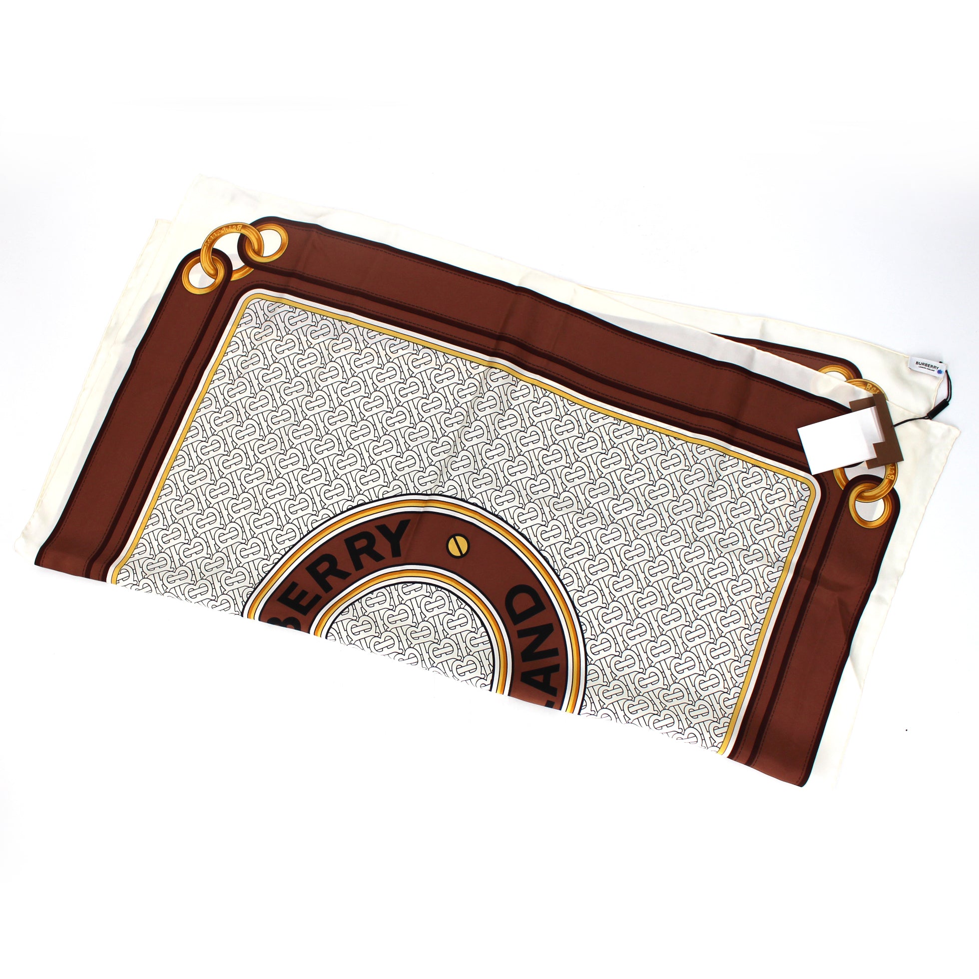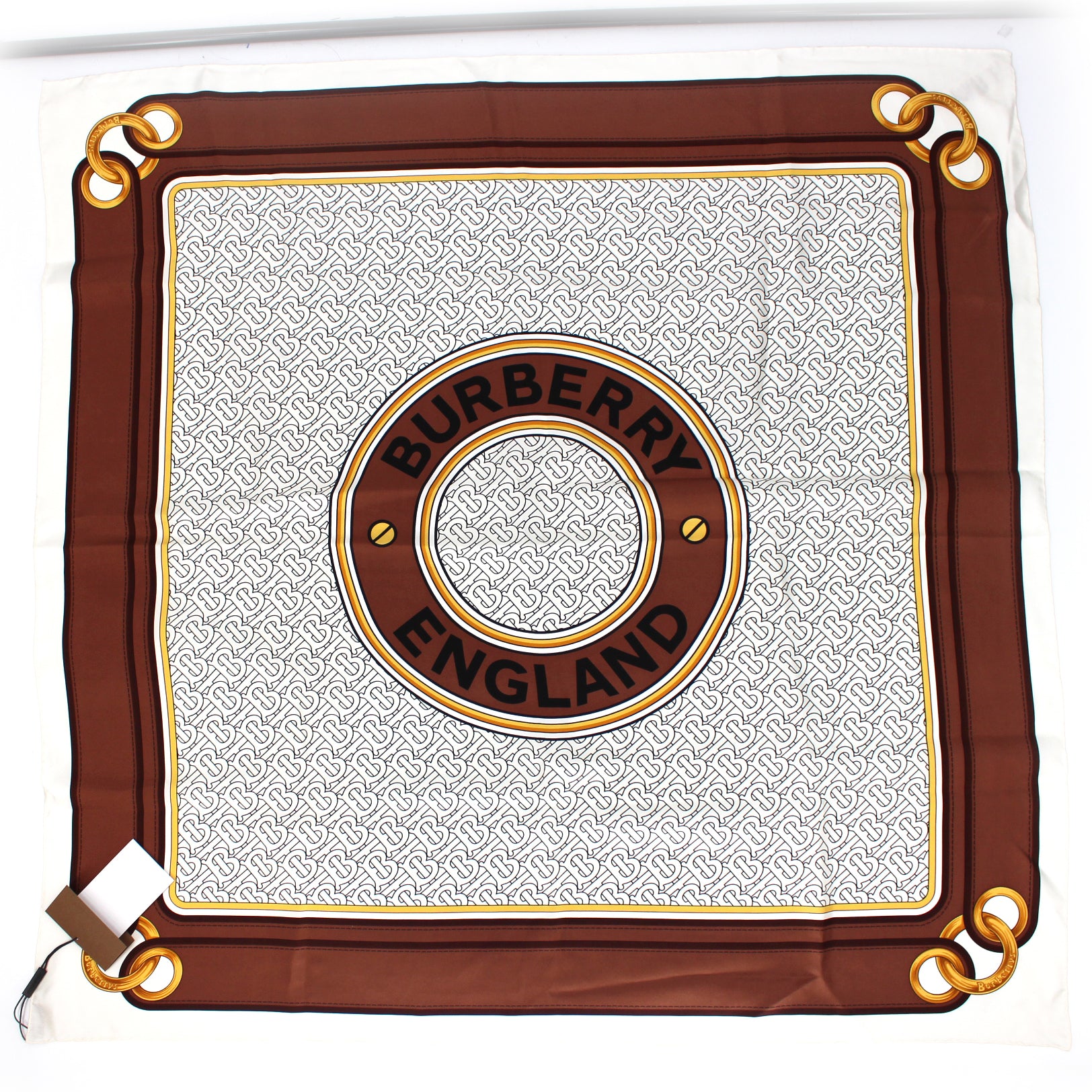Burberry London Silk Brown Black 90 x 90 Cm Monogram Logo Print Scarf