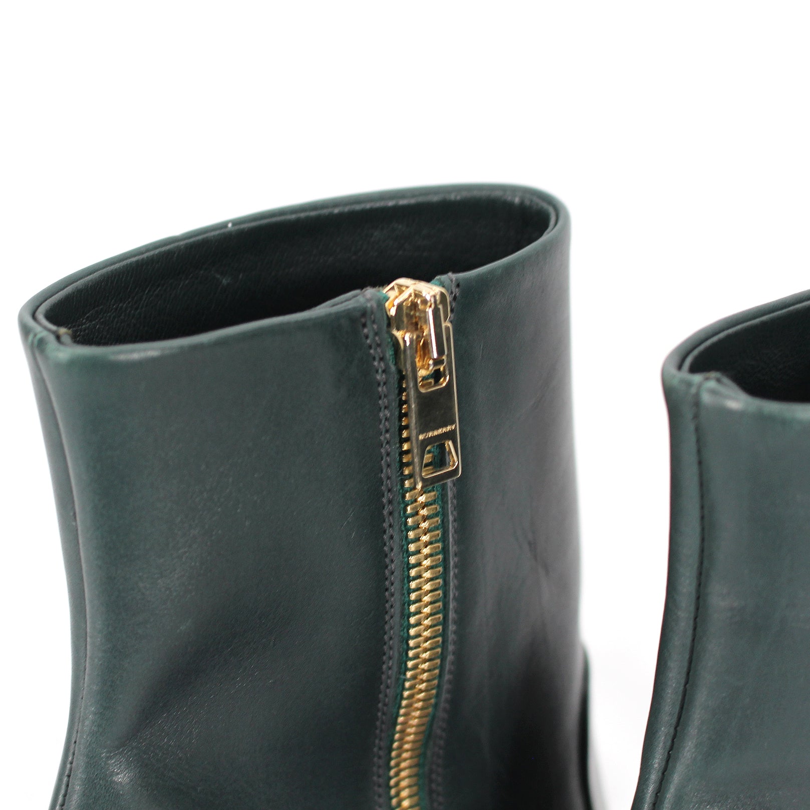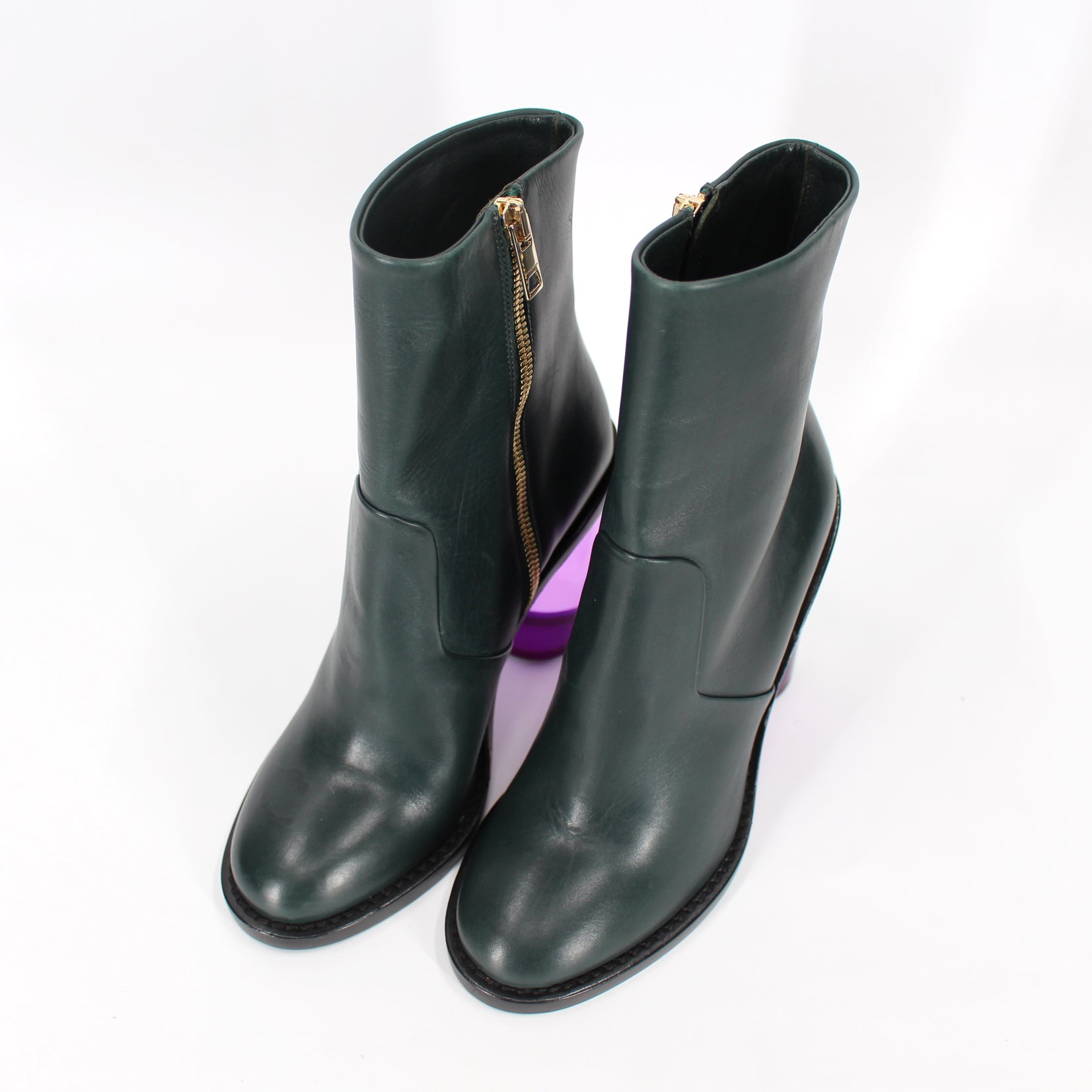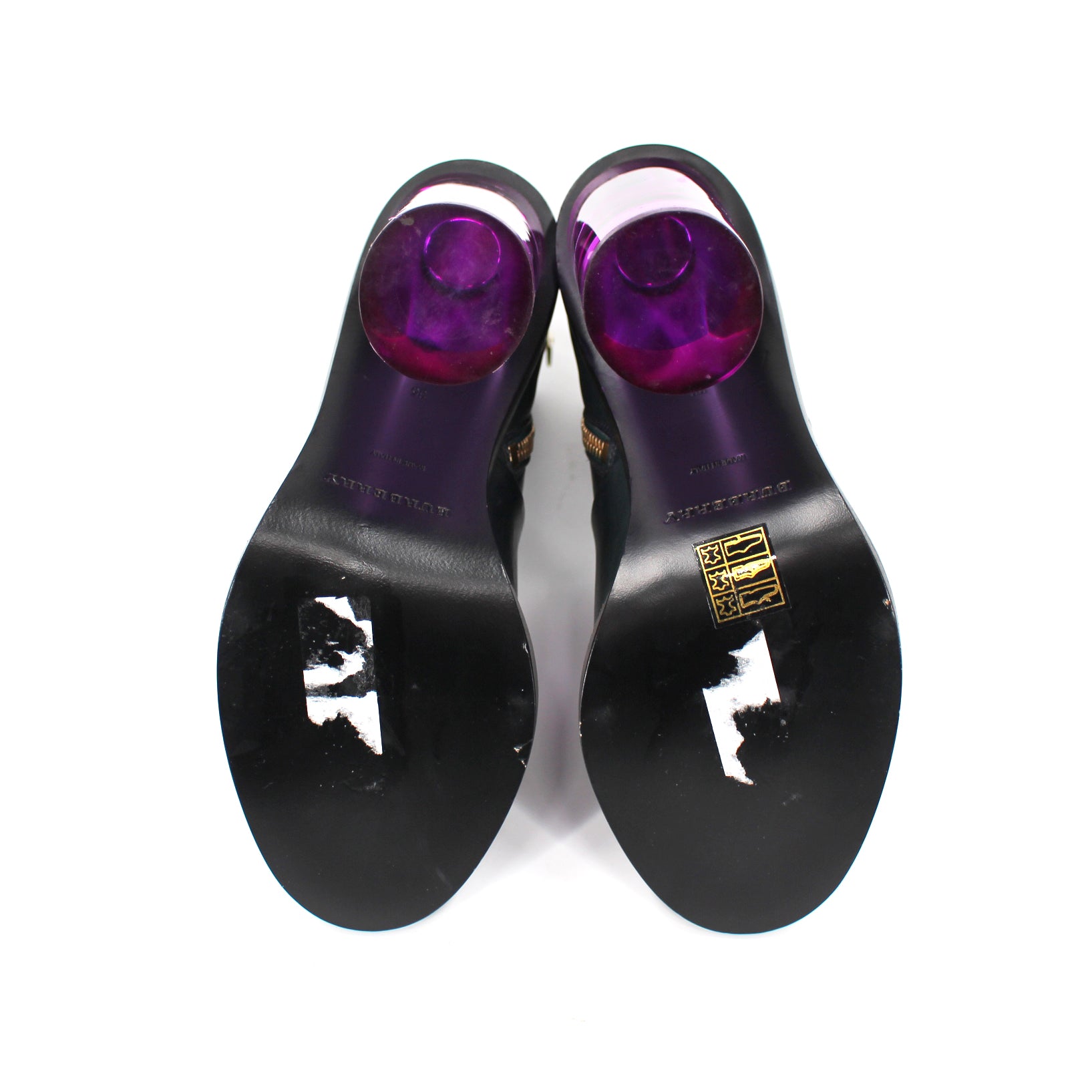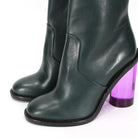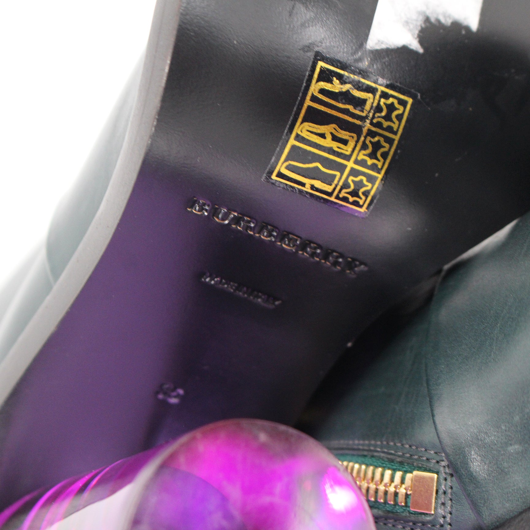 Burberry London Westella Green Leather Purple Acrylic Heel Ankle Boots
