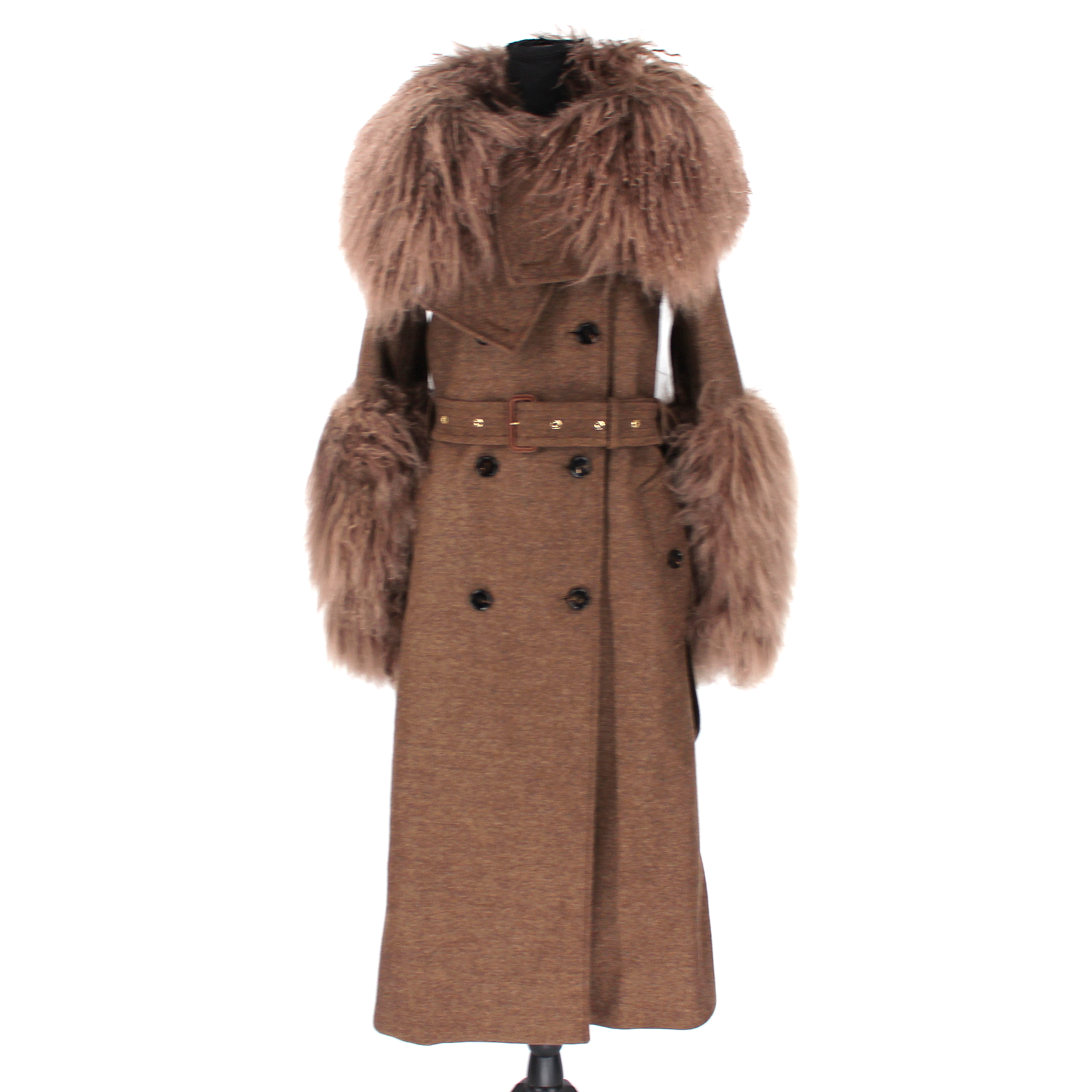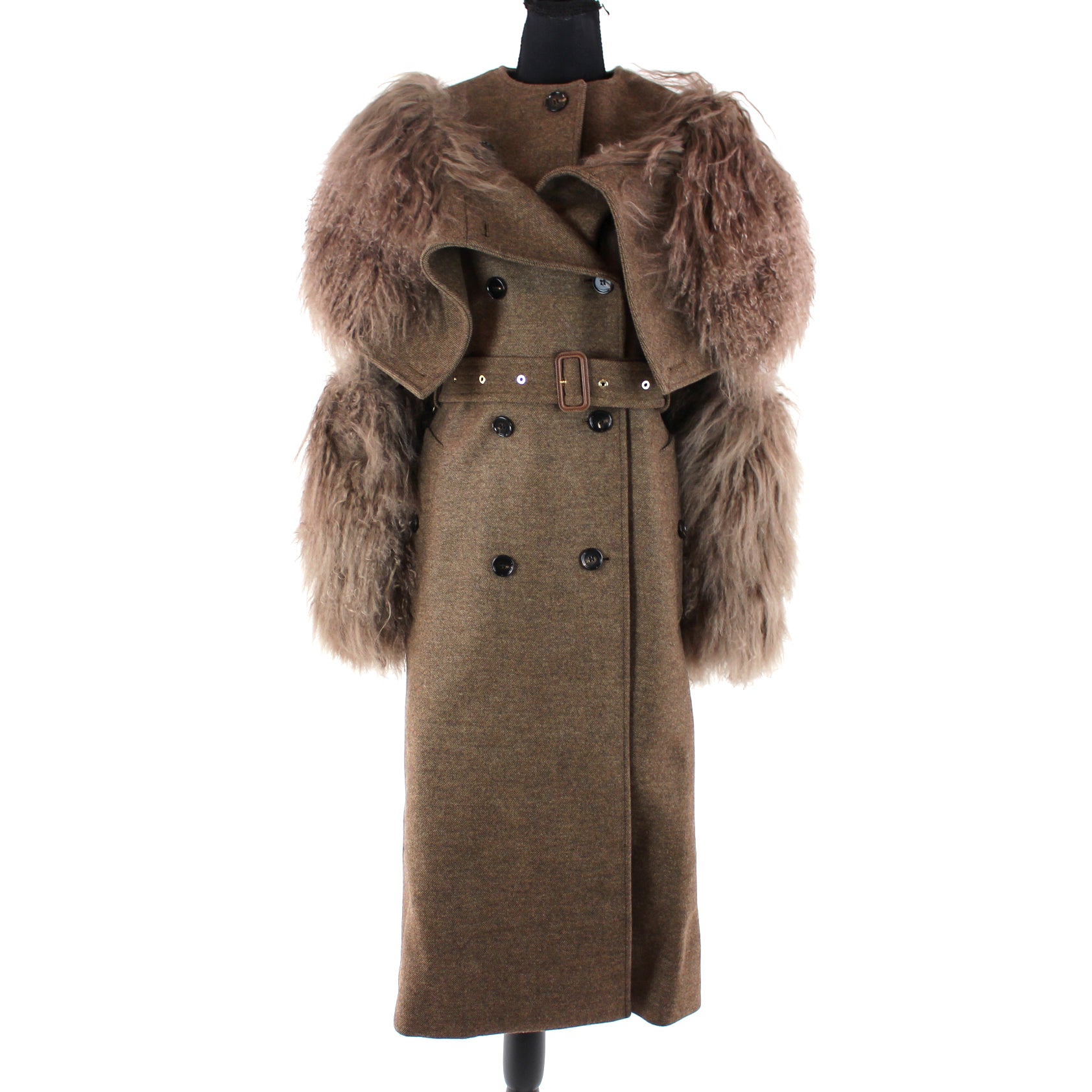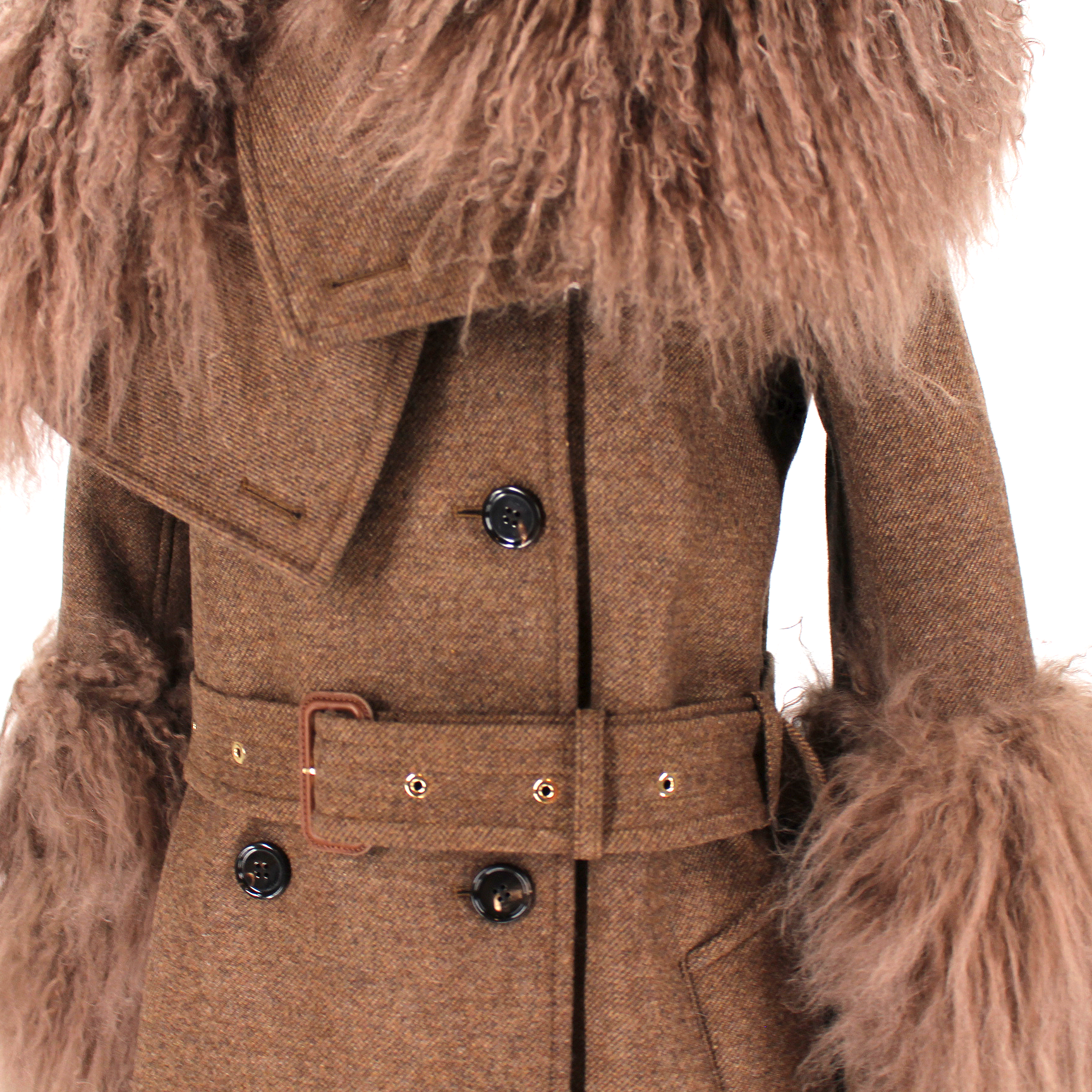 Burberry Shearling Trim Belted Coat