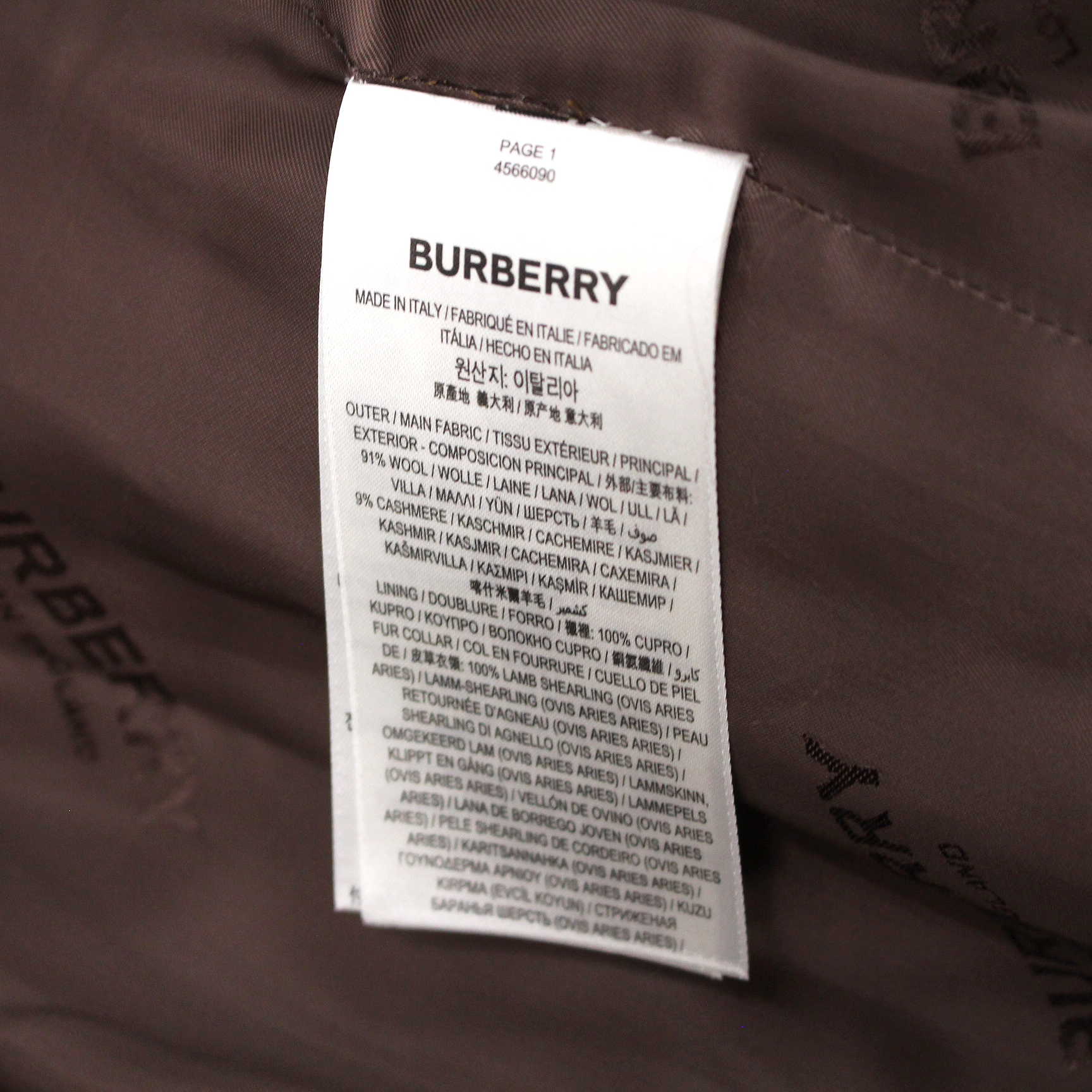 - Outer: 91% wool & 9% cashmere