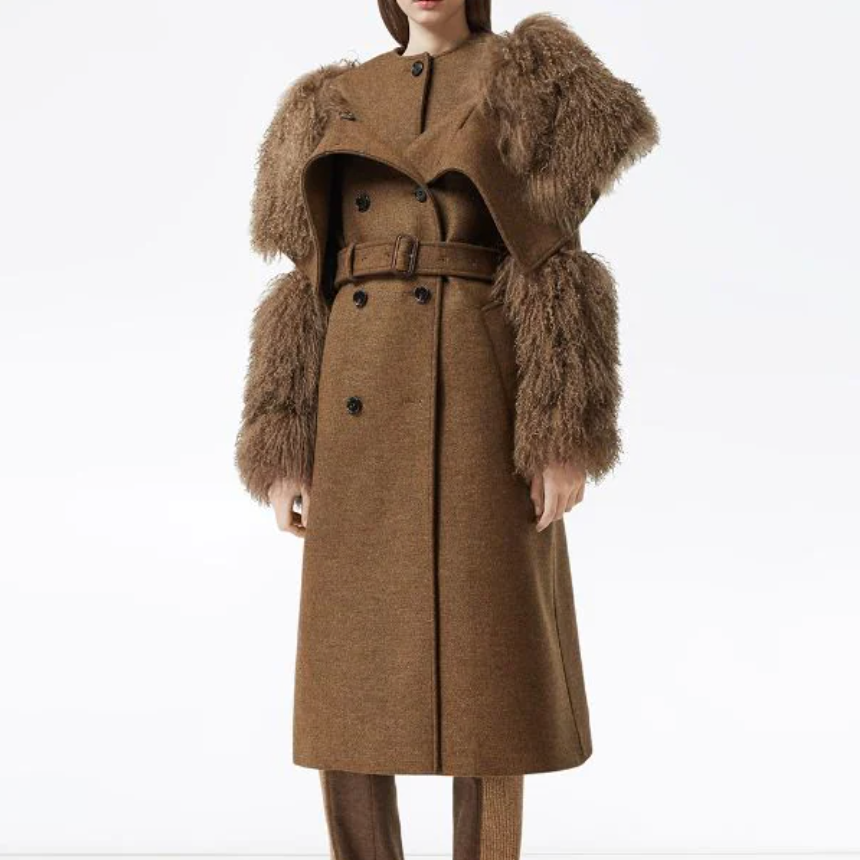 Burberry Wool Cashmere Double Breasted Lamb Shearling Trim Coat