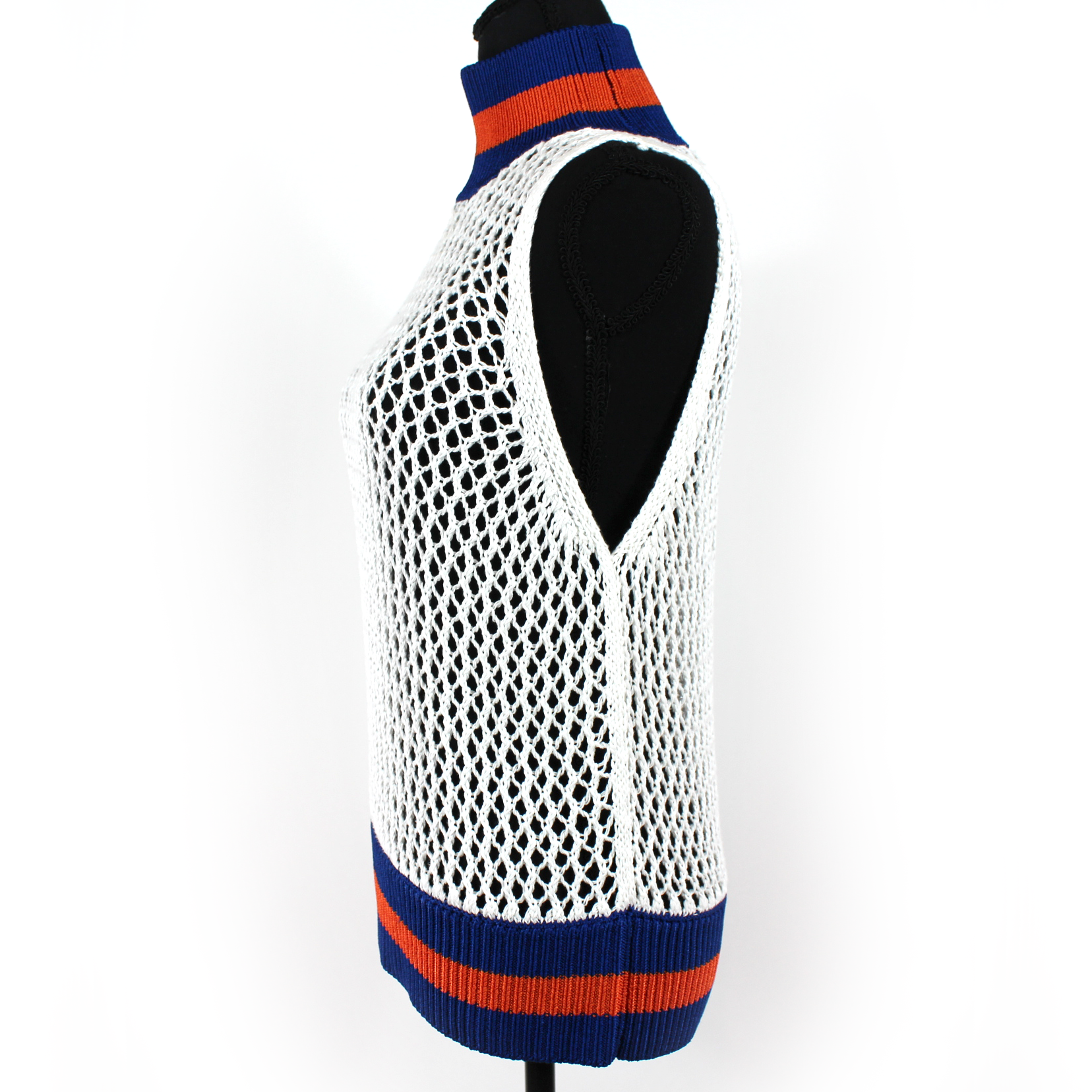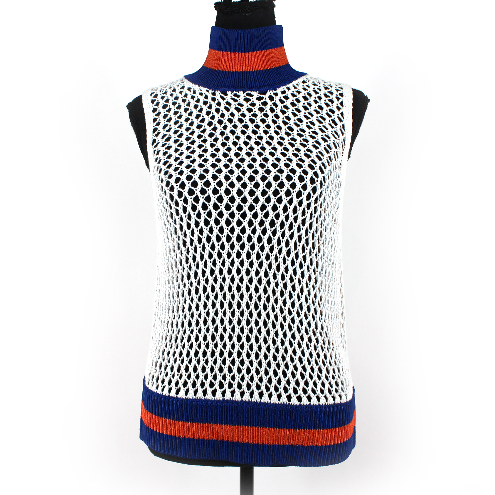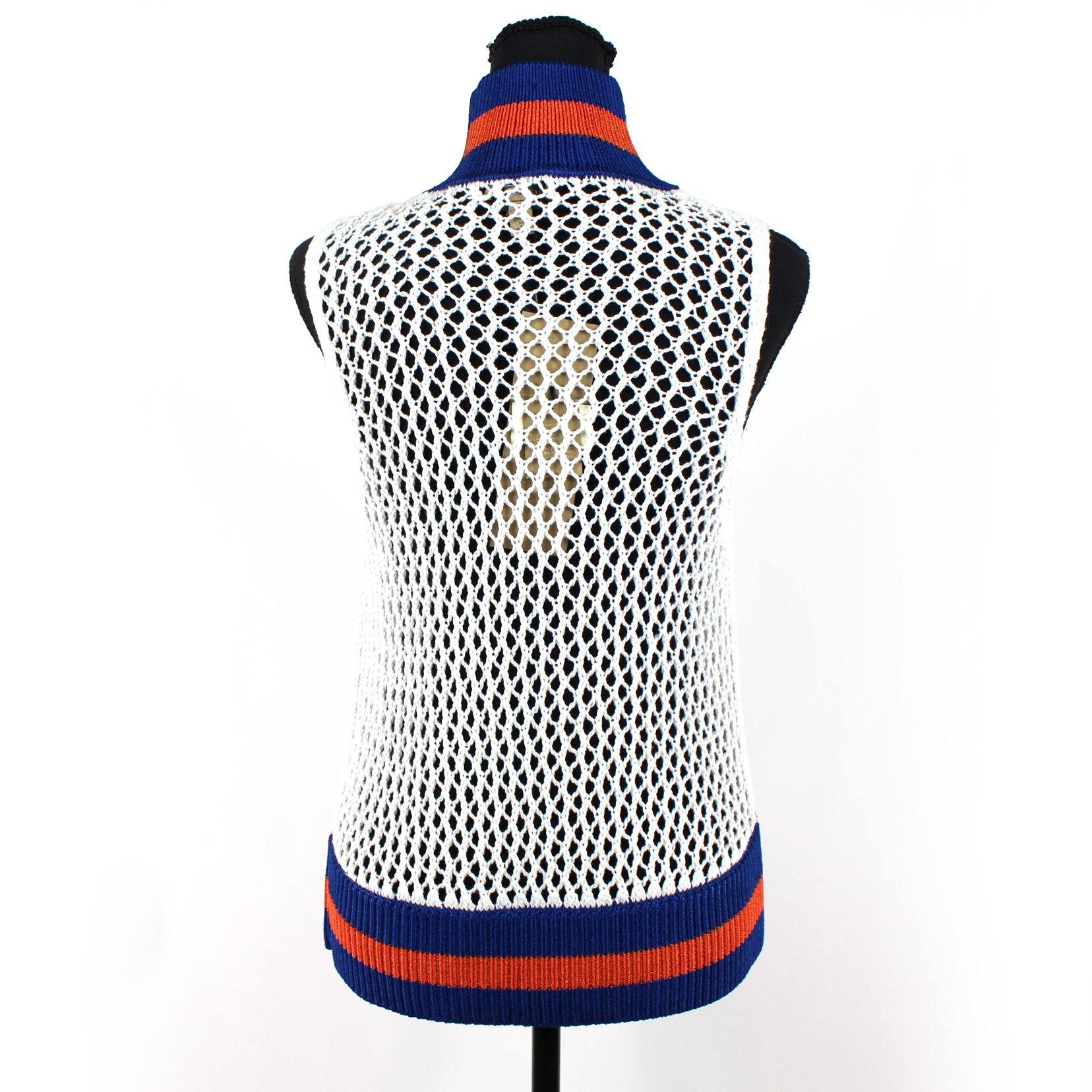 Burberry Meeme Open White Knit Ribbed Contrast Trim Sleeveless Sweater