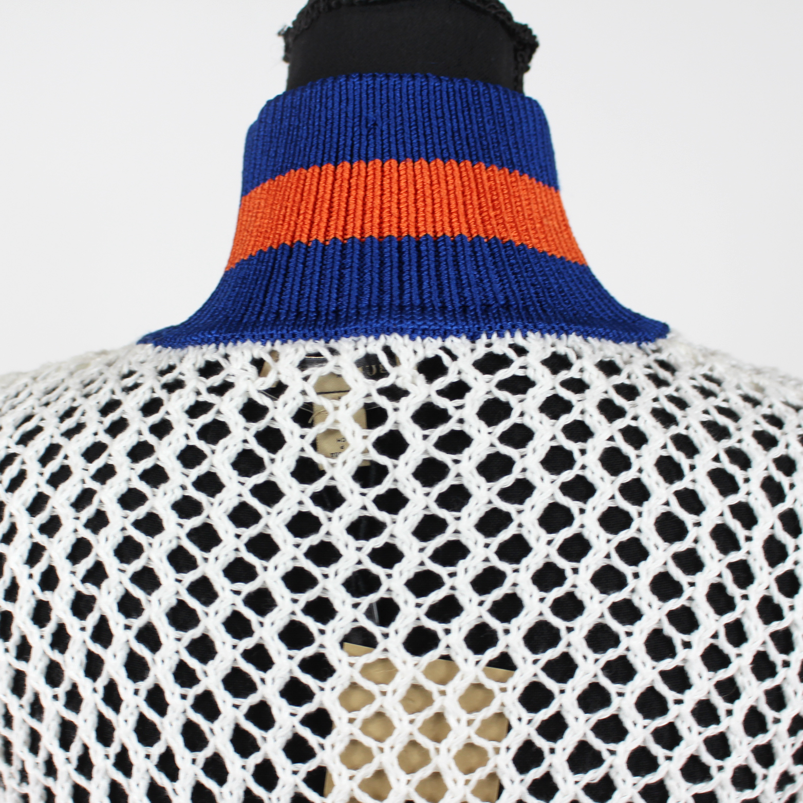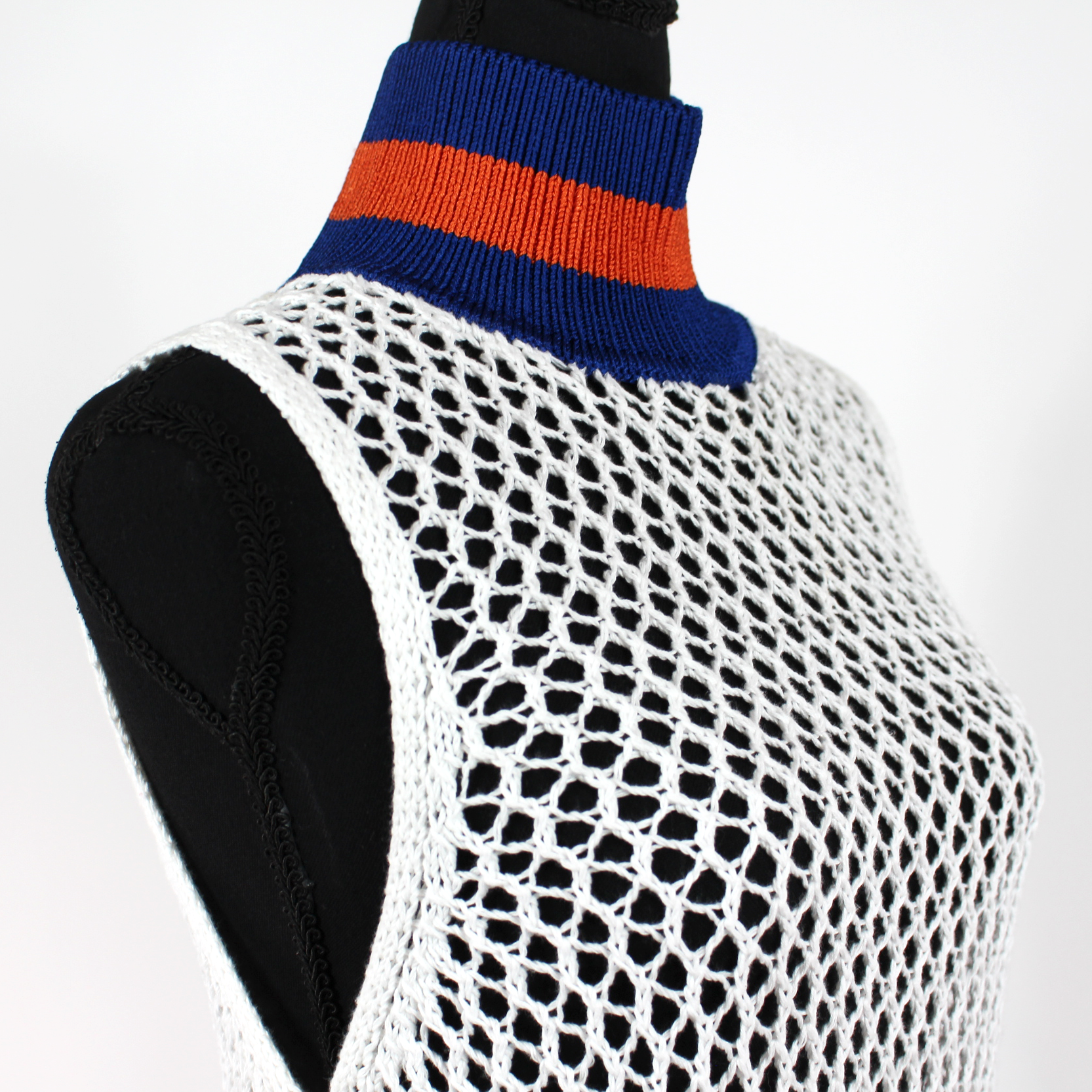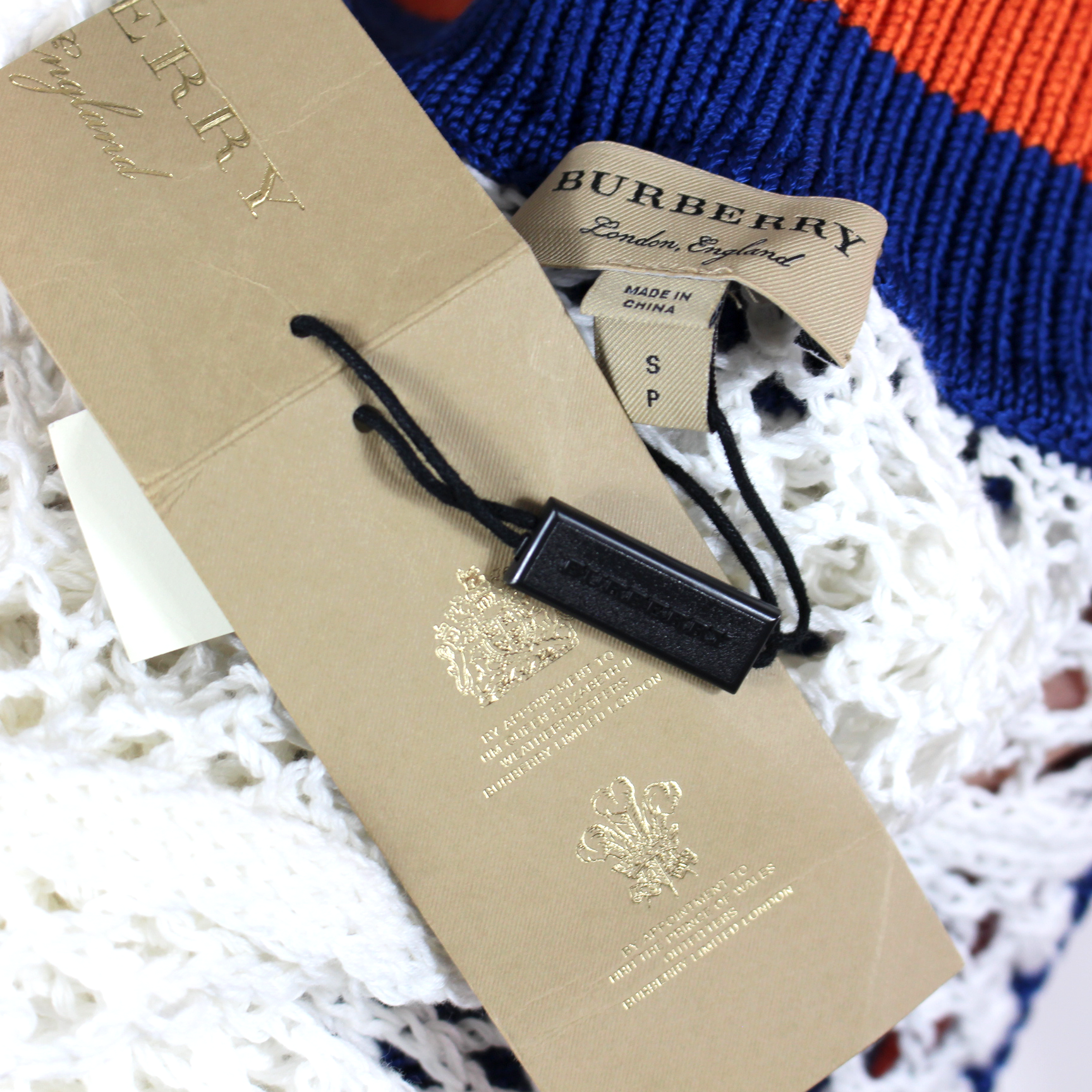 Burberry Meeme Open White Knit Ribbed Contrast Trim Sleeveless Sweater