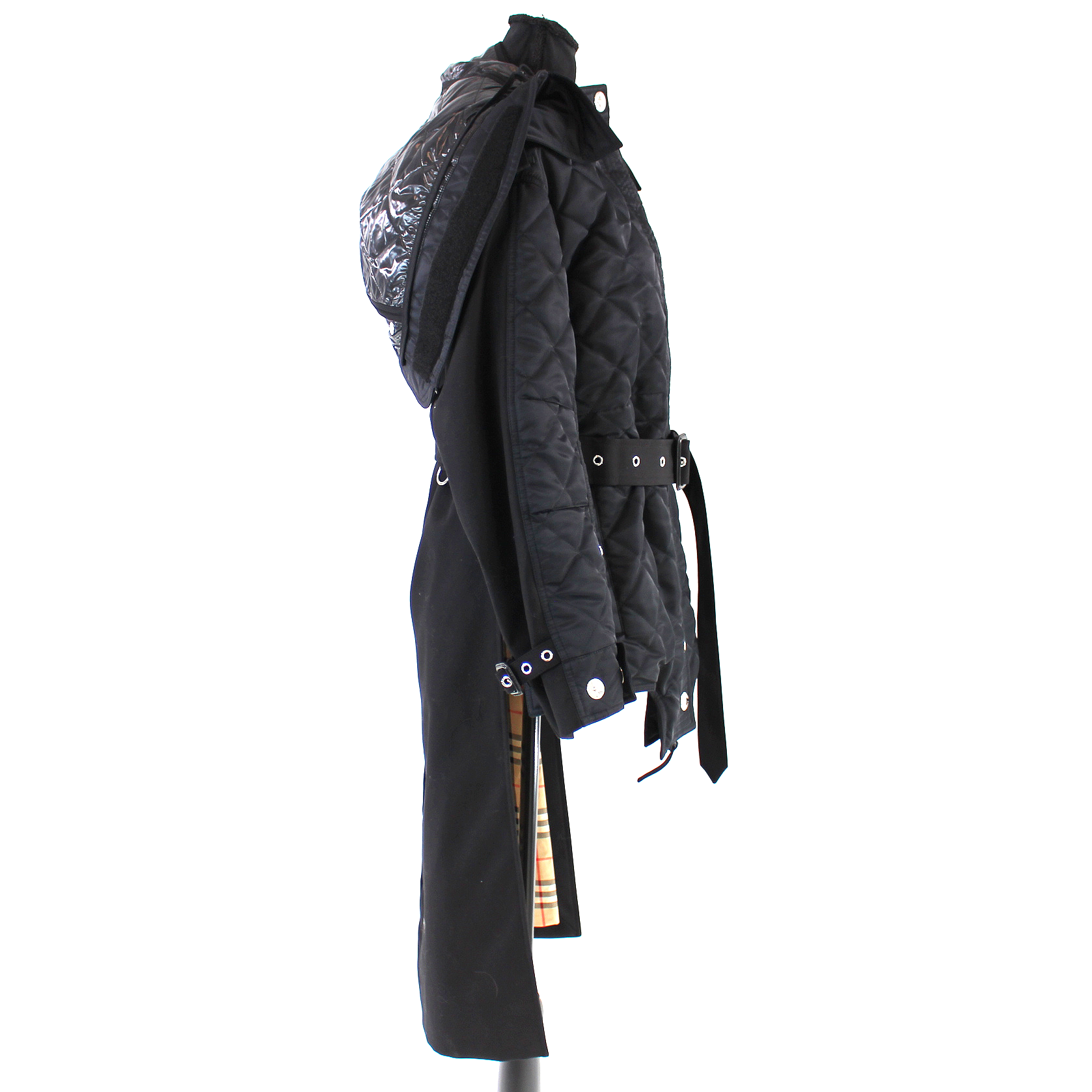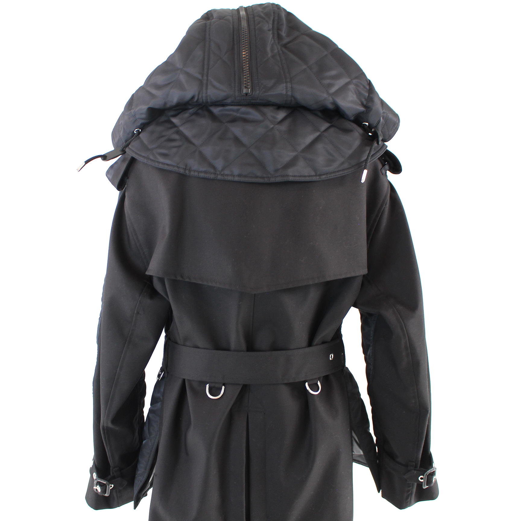 Burberry Black Quilted Nova Check Lined Two Silhouette Hooded Trench Coat