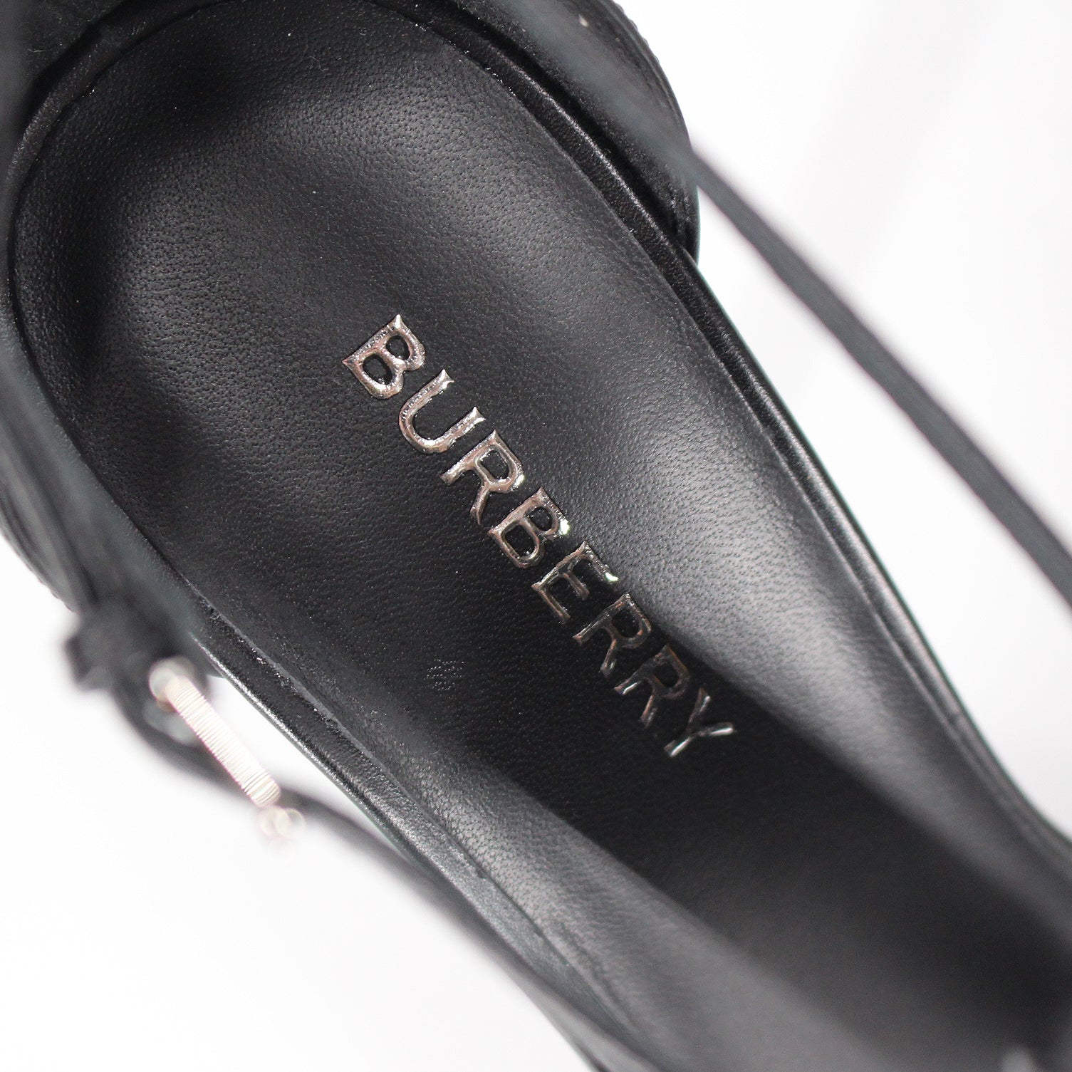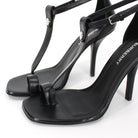 Burberry Stephanie Black T-Strap Calfskin Leather Stilleto Heel Sandal