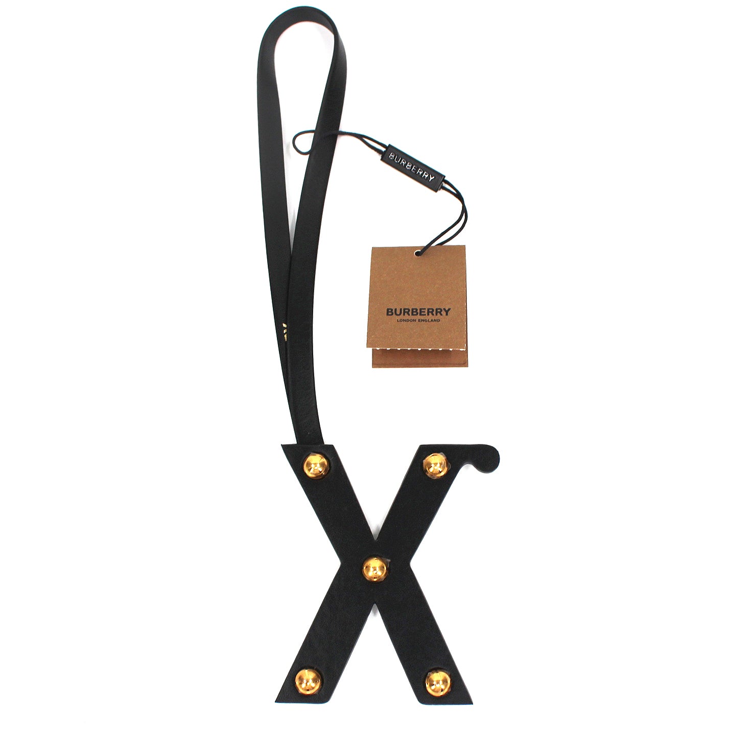 Burberry Black Leather Studded Alphabet "X" Initial Large Keychain