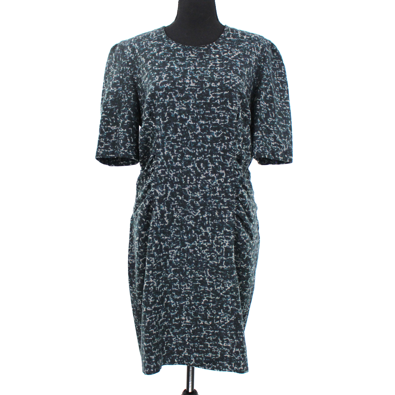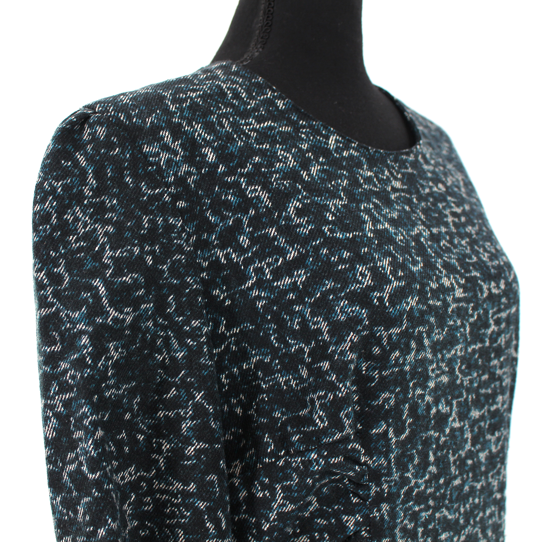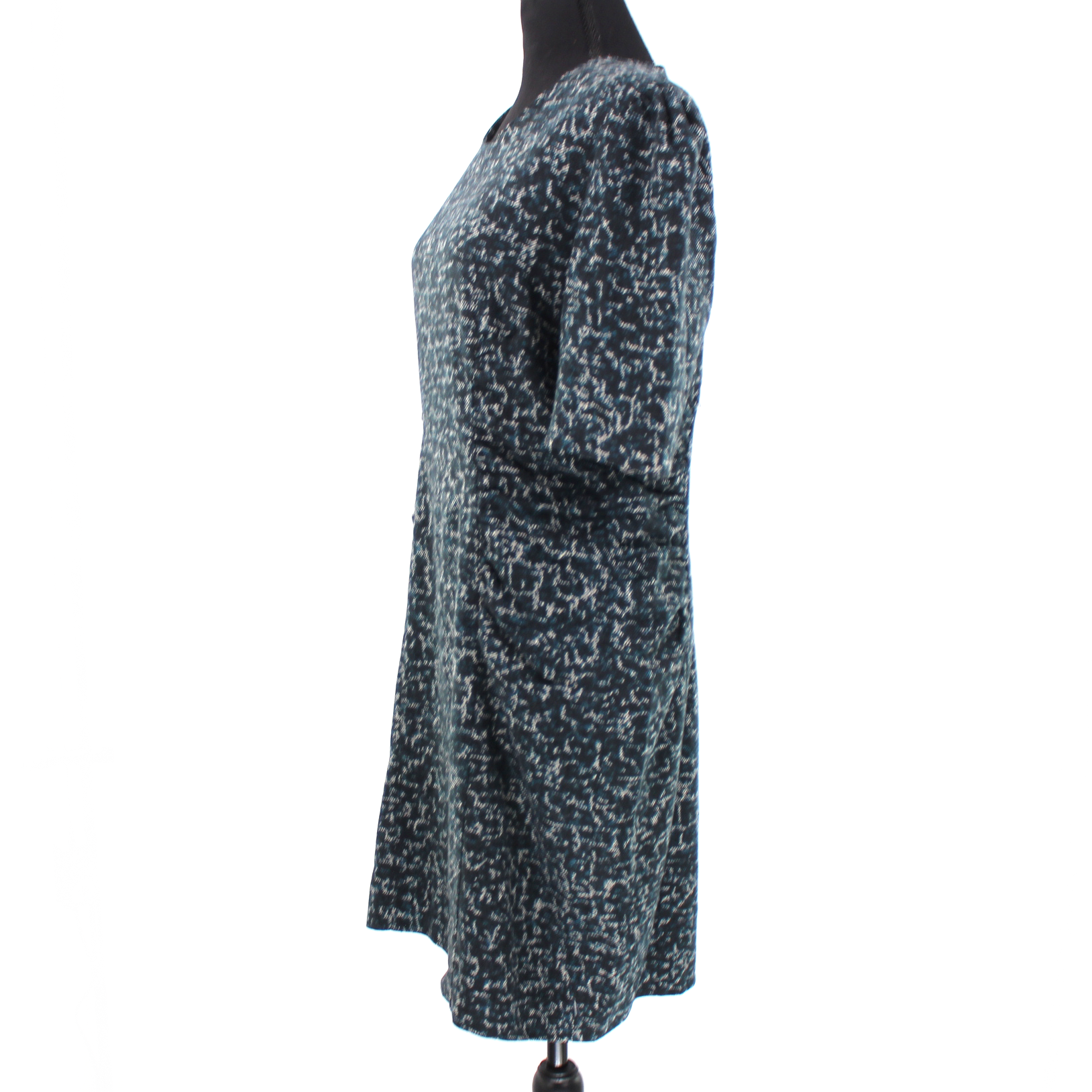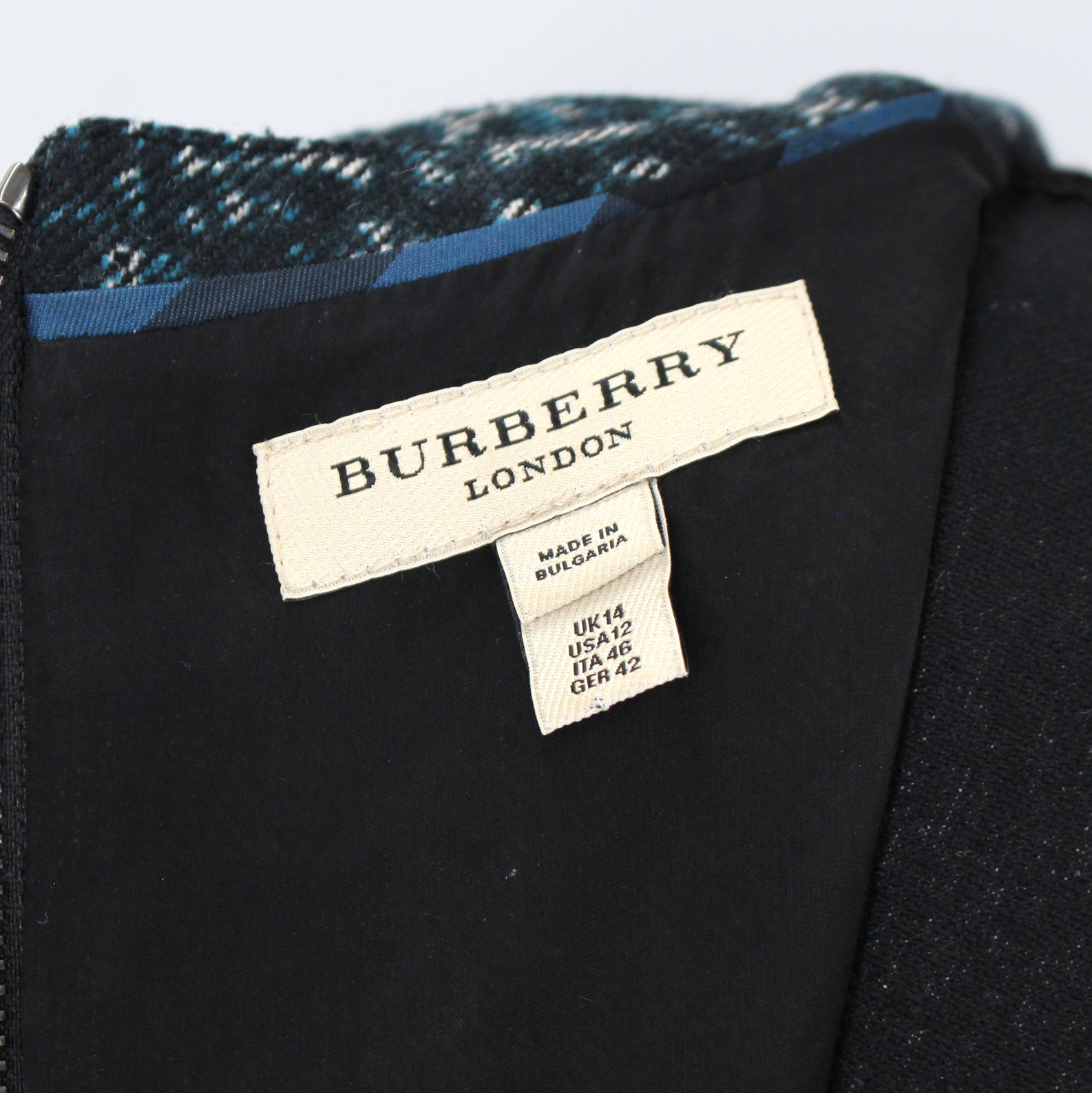 Burberry London Wool Blend Black Blue Geometric Print Shift Mini Dress