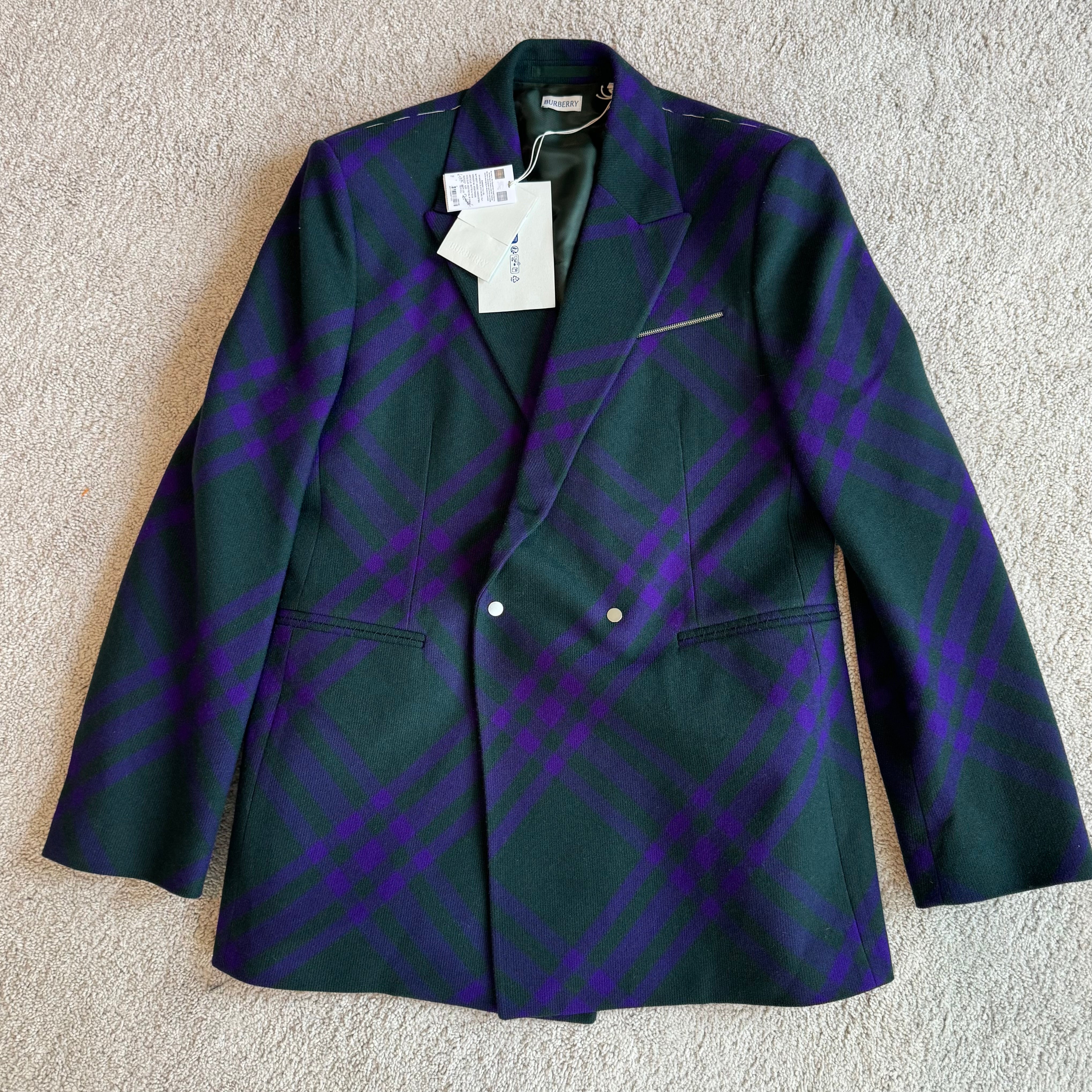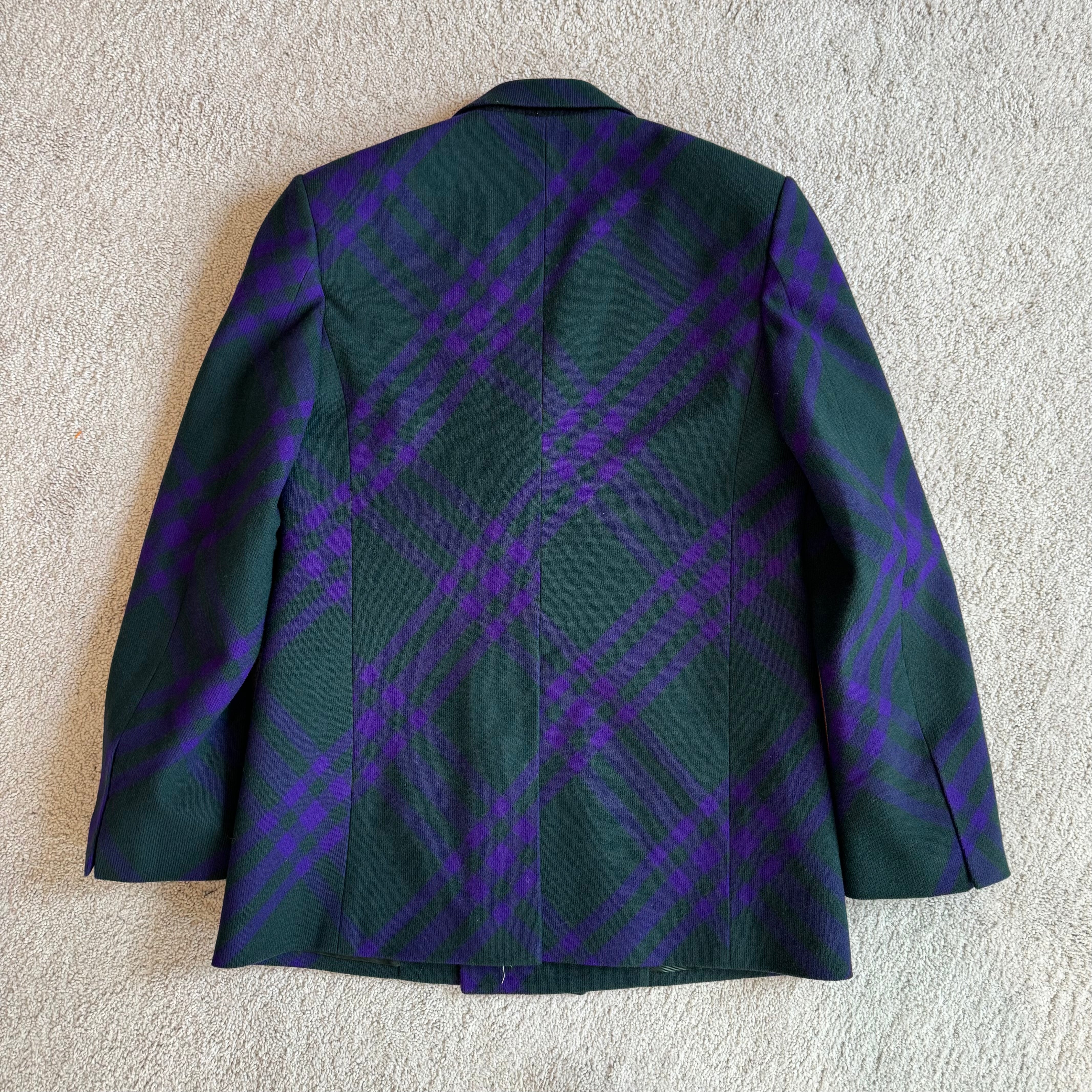 Men's Burberry Wool Deep Royal Nova Check Green Purple Double Breasted Coat
