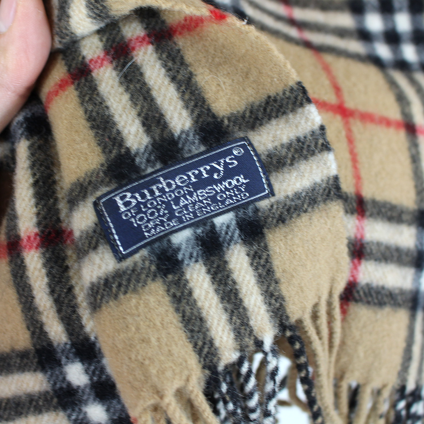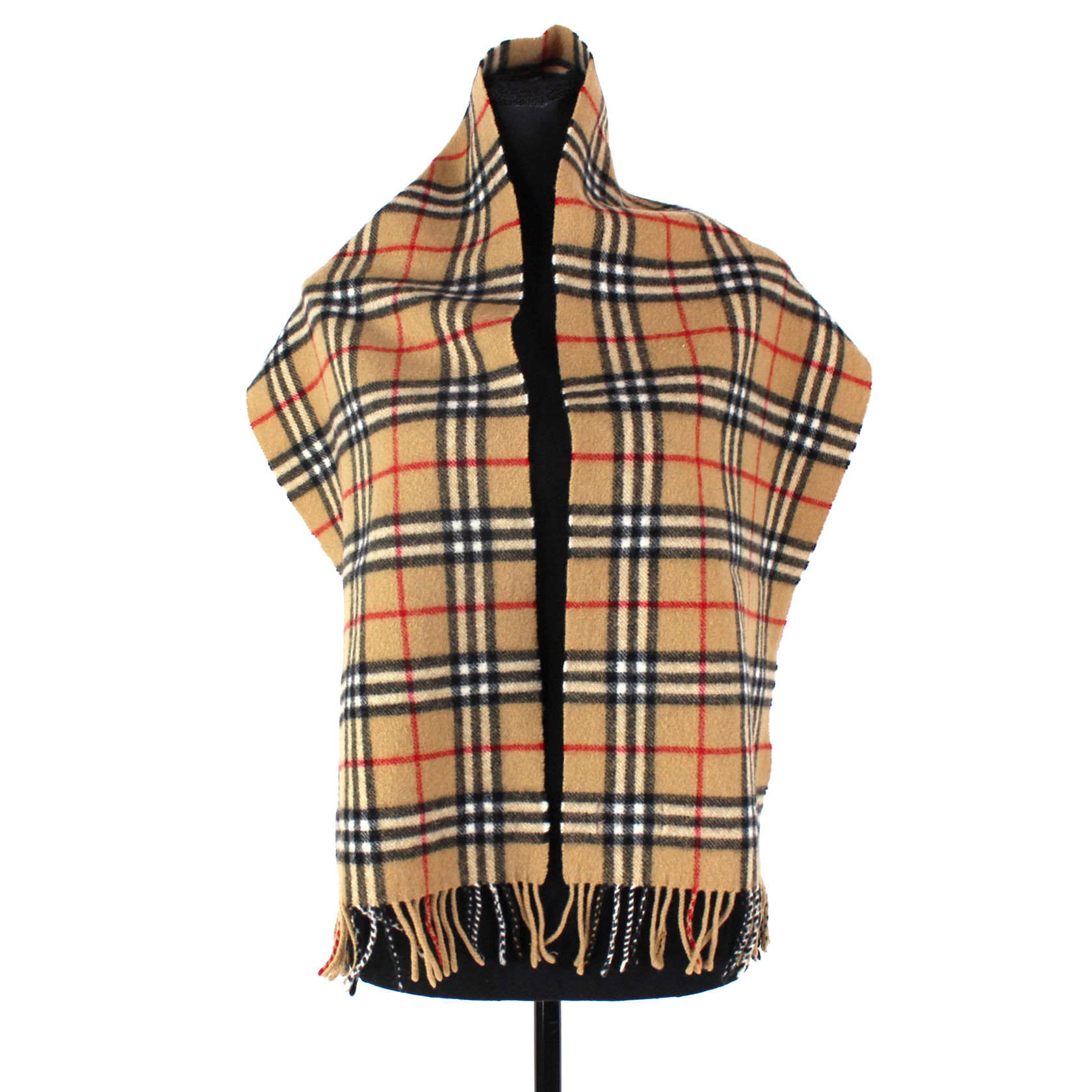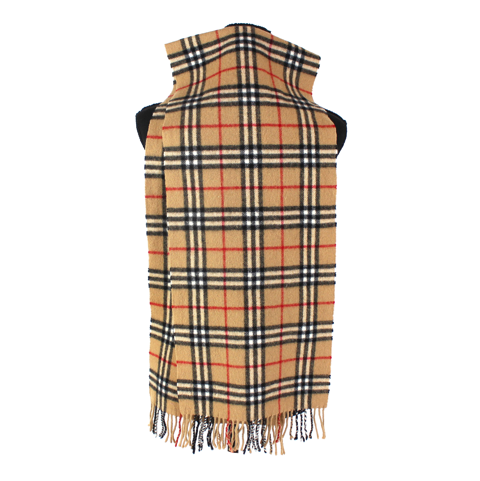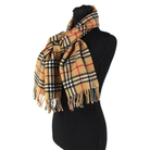 VTG Burberry Tan Nova Check Plaid Lambswool Fringe Trim Neck Scarf