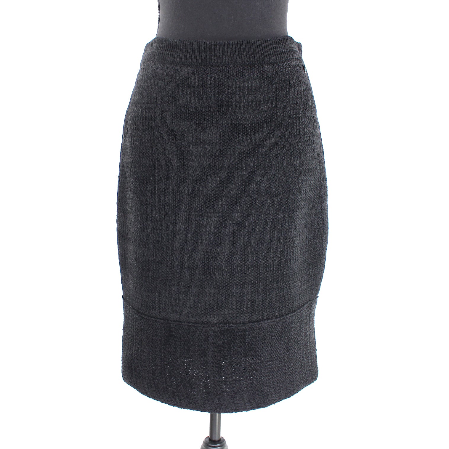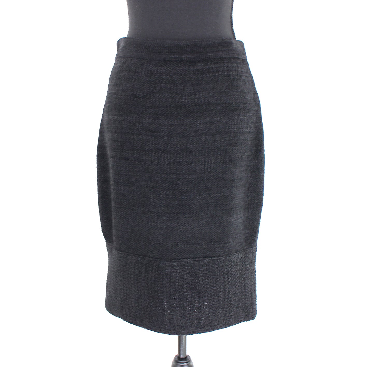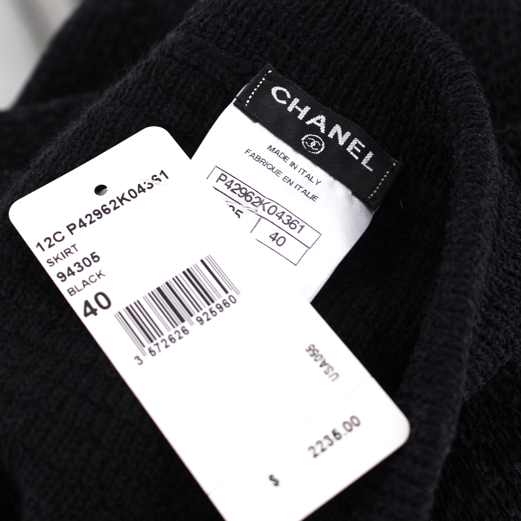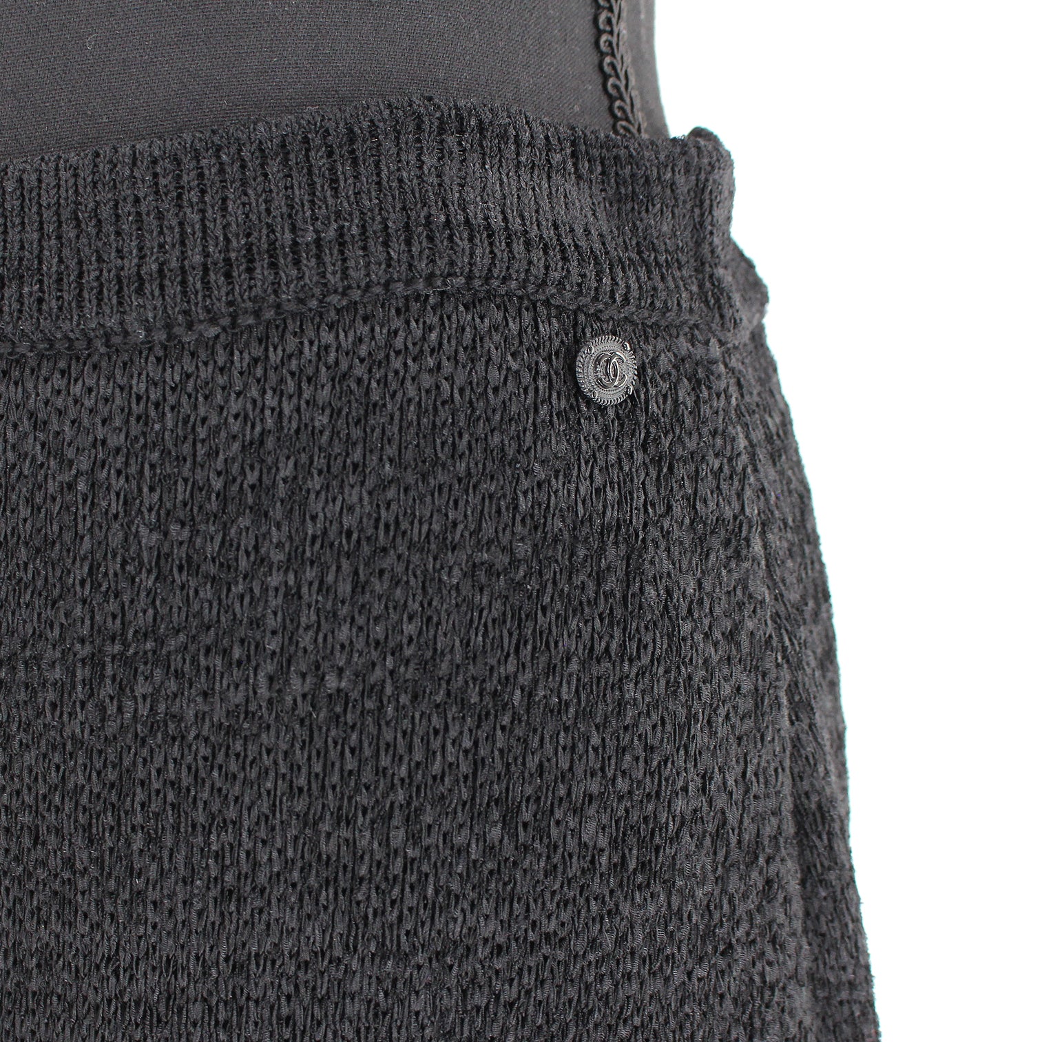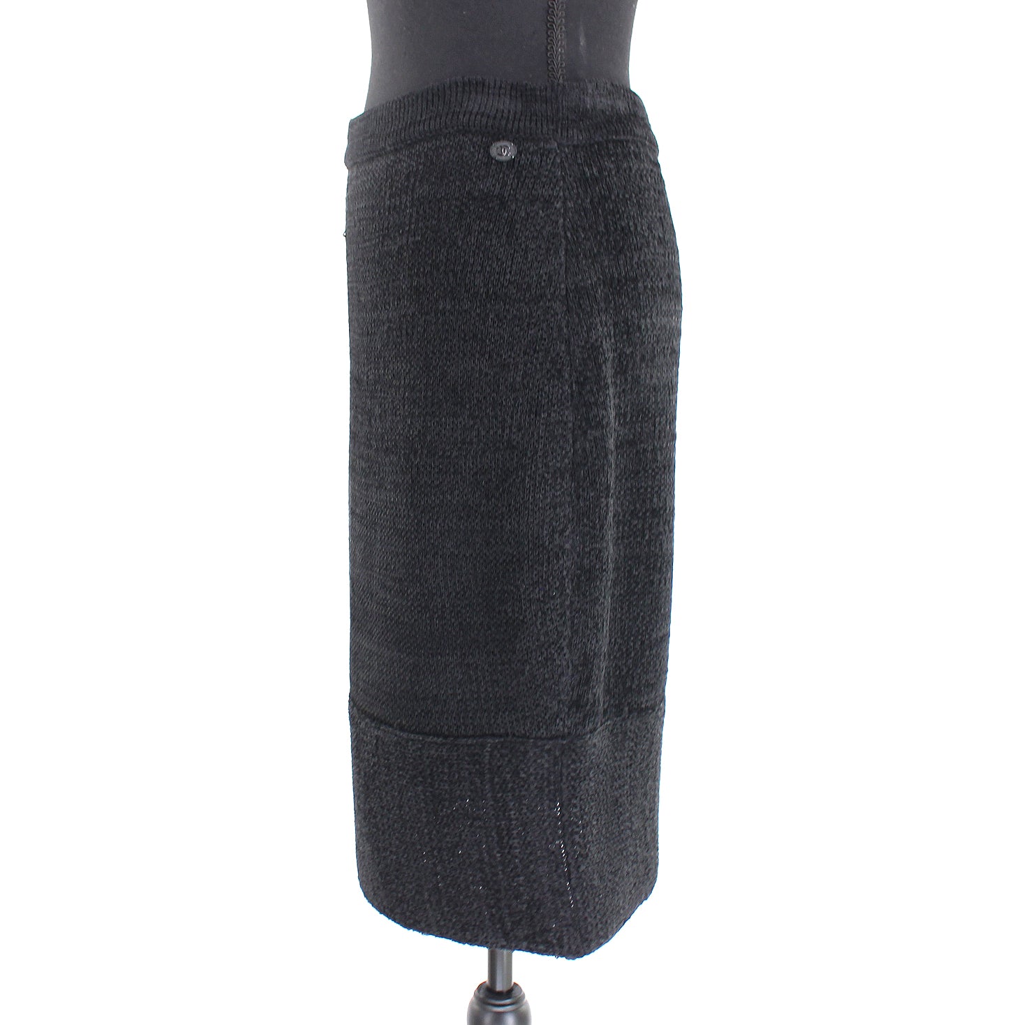CHANEL Black Silk Cashmere Logo Woven Knit Straight Pencil Skirt