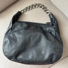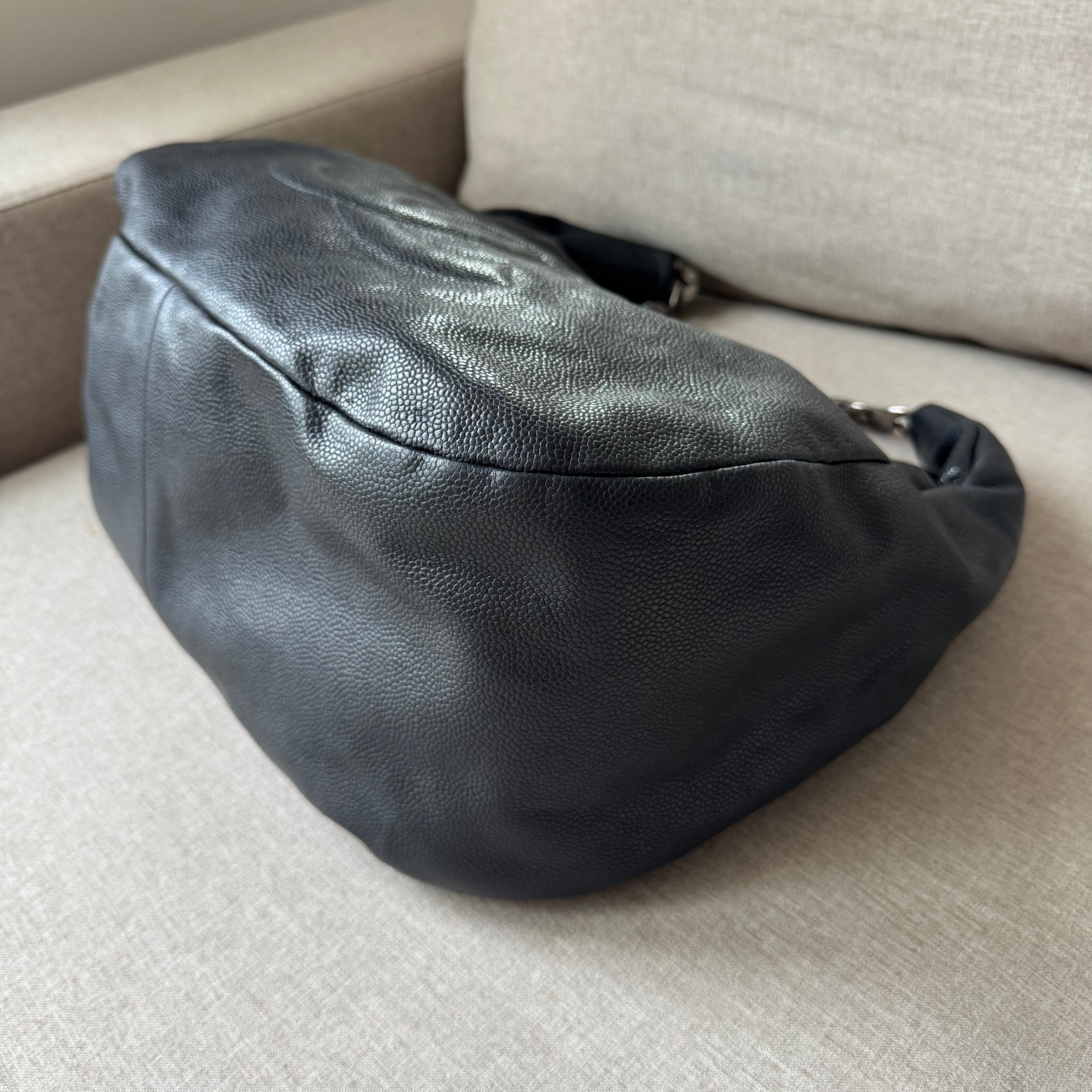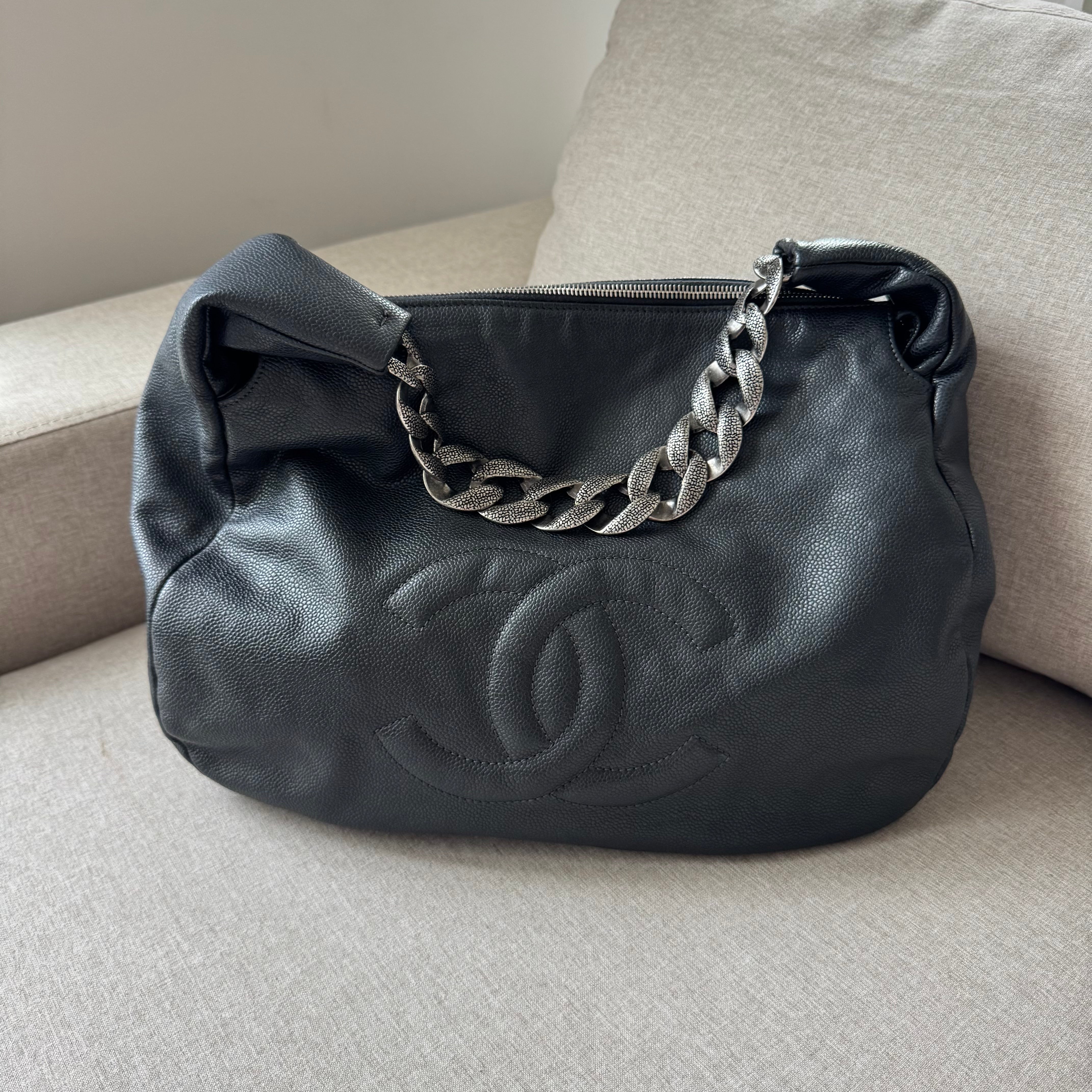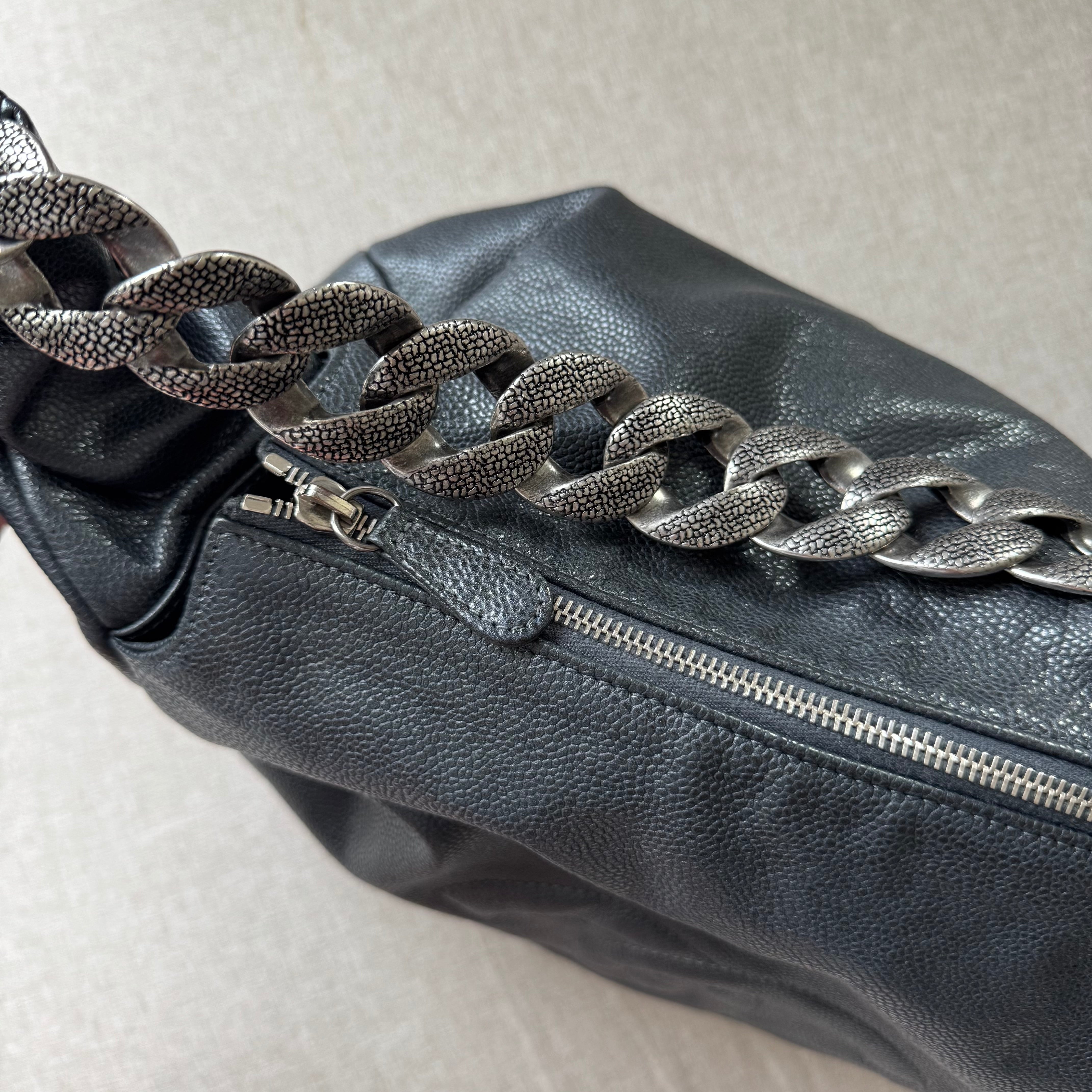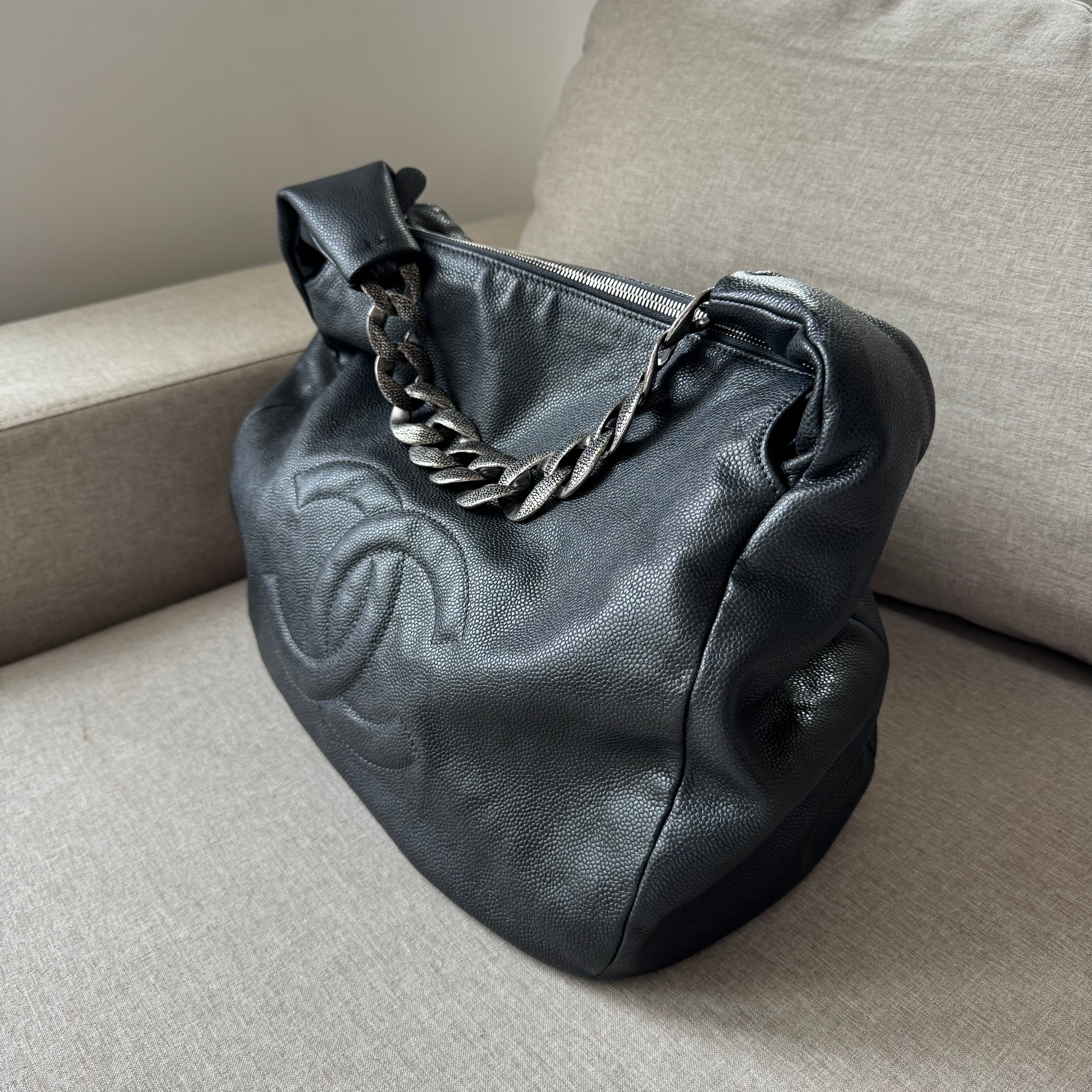 Chanel Black Caviar Leather Chunky Chain Link Handle Hobo Tote Shoulder Bag